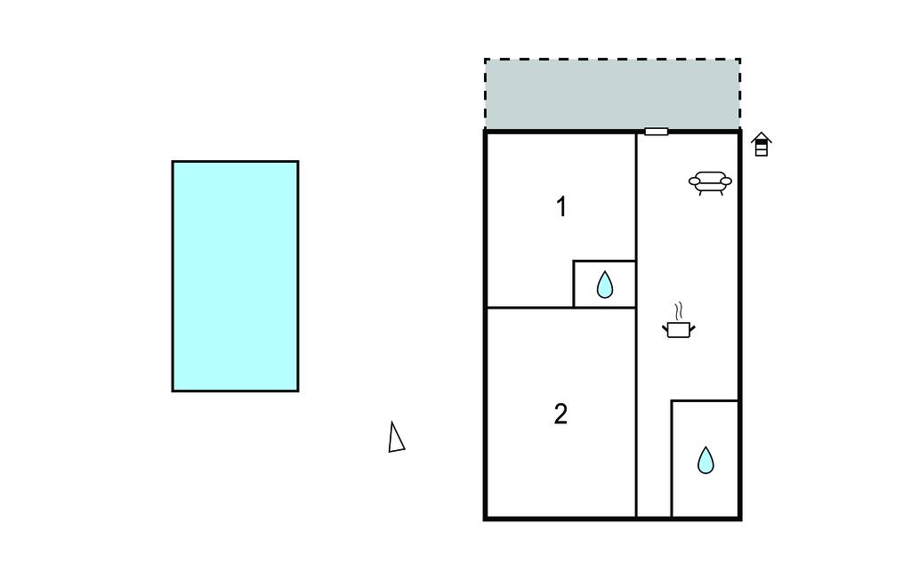 Opholdsstue/køkken 30m2 - 1 Soveplads. (Sofa, madras eller lignende).
