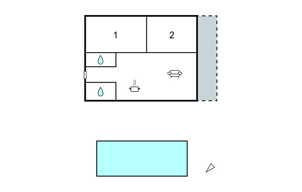 Opholdsstue/køkken 25m2 - 1 Soveplads. (Sofa, madras eller lignende).