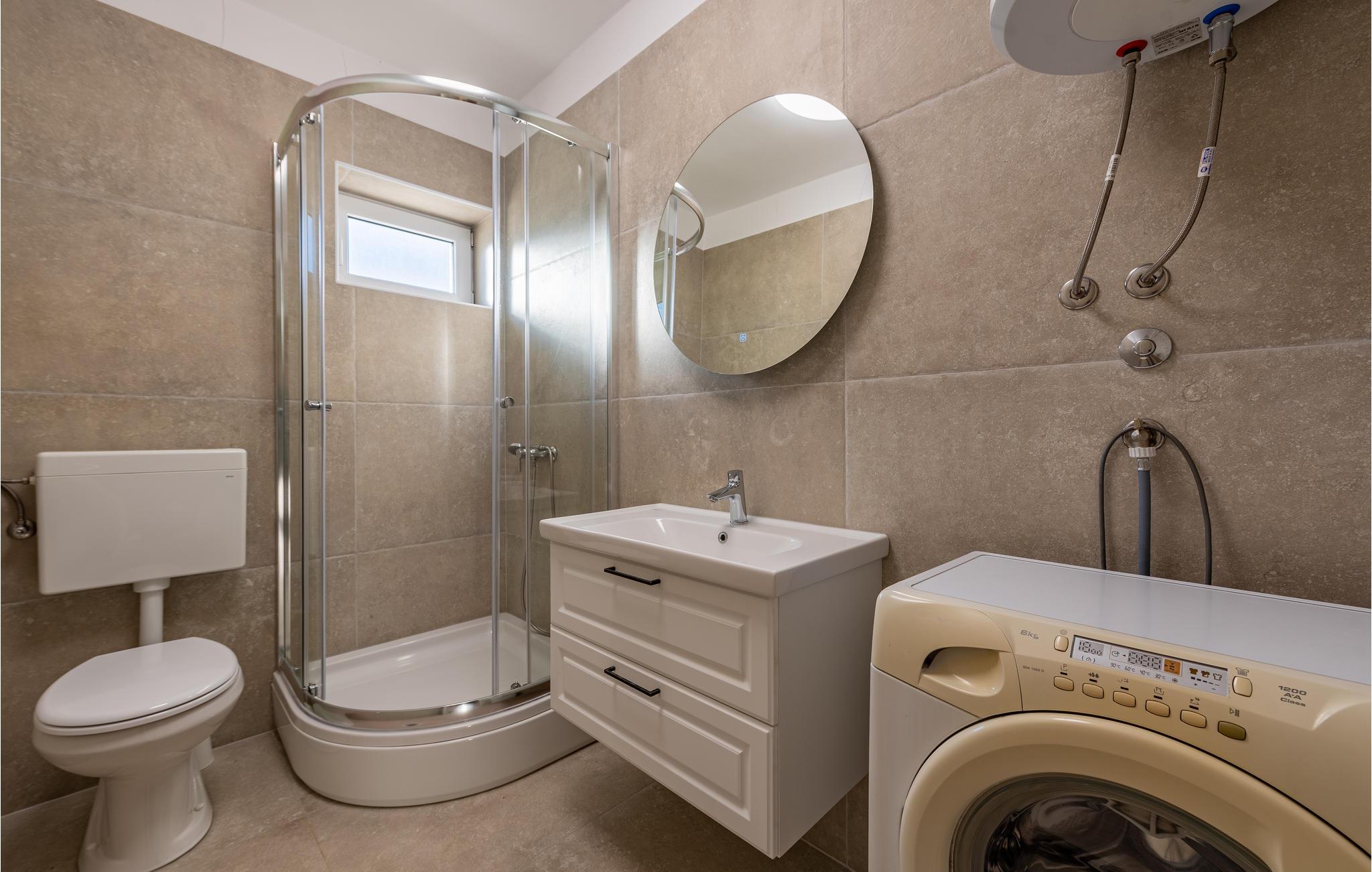 I et flerfamilieshus på øen Pag ligger denne enkelt og praktisk indrettede ferielejlighed.