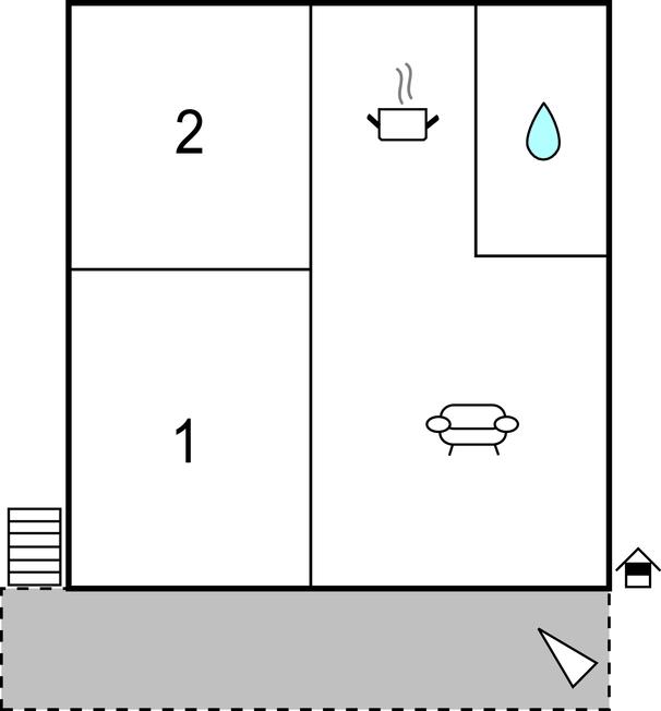 Opholdsstue/køkken 20m2 - 1 Soveplads. (Sofa, madras eller lignende).