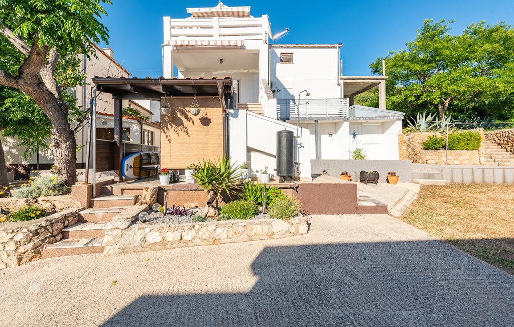 I en smuk bugt i den fredelig eby Stara Novalja ligger huset med denne ferielejlighed med havudsigt. Den er fordelt på en høj stueetage (tilgængelig via en ydertrappe) og første sal, som er forbundet med en indvendig trappe. Lejligheden er komfortabelt og praktisk indrettet. Lejligheden er velegnet til familieferie, da strandene i nærheden er velegnede til børn. Ikke langt fra huset er der en godt belyst sti, der fører langs stranden og byen og er ideel til gåture om aftenen. Øen Pag er kendt for autentisk ost og enestående kniplinger.