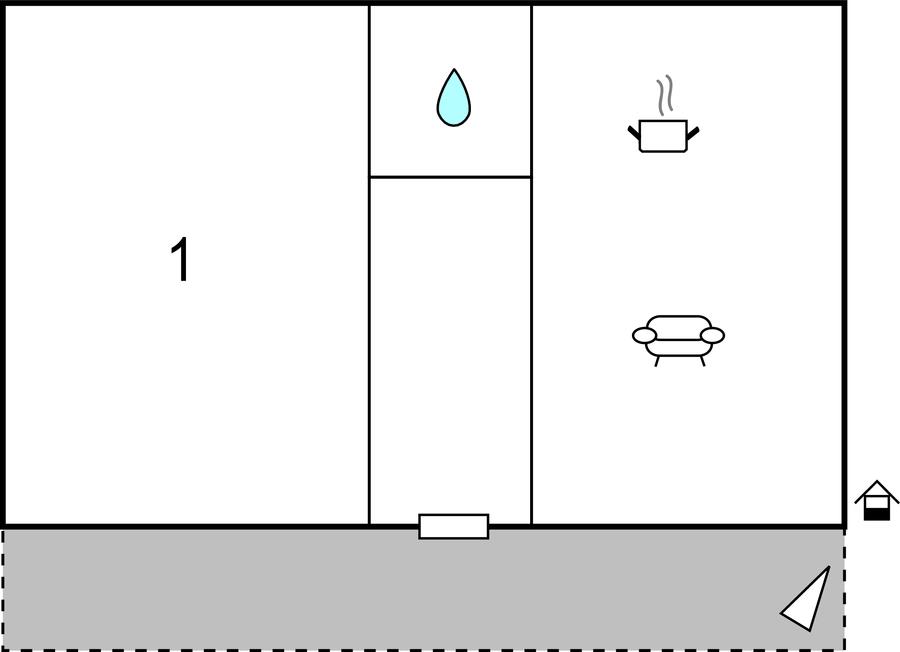 Opholdsstue/køkken 25m2 - 2 Sovepladser. (Sofa, madras eller lignende).