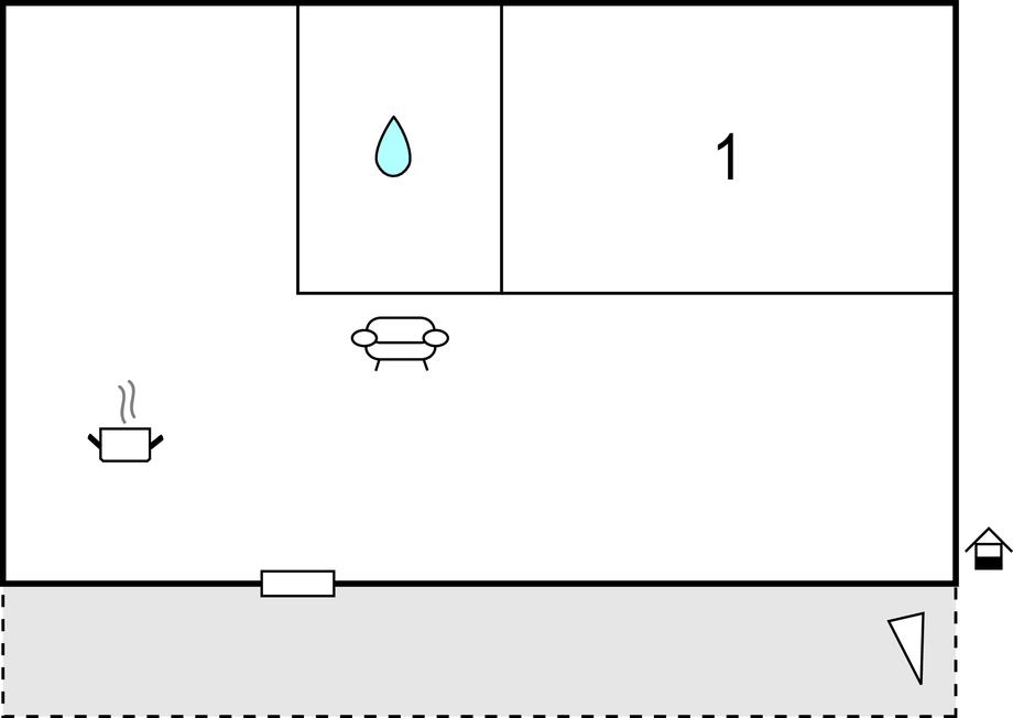 Opholdsstue/køkken 13m2 - 1 Soveplads. (Sofa, madras eller lignende).