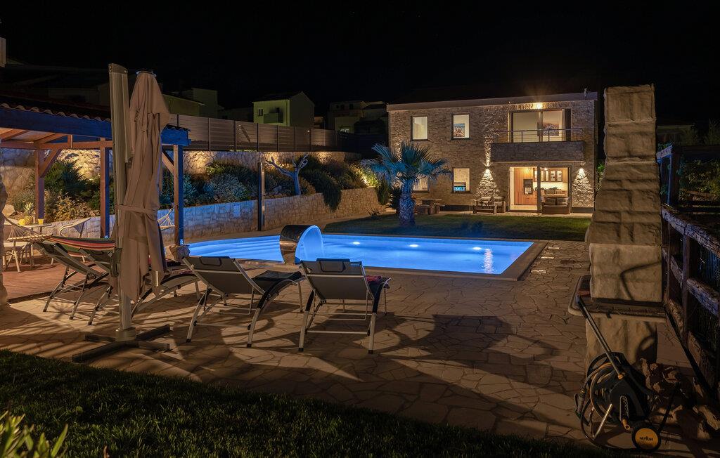 Der venter hele familien en fremragende ferie i dette overflødighedshorn af en bolig, der ligger på den herlige sommer-ø Pag i Kroatien. Huset mixer mange moderne faciliteter af høj kvalitet med mere rustikke og autentiske elementer, der sammen skaber en lækker, hjemlig atmosfære, hvor I får de bedste rammer for at slappe af og være sammen med dem, I holder af. Gør madlavningen til et fornøjeligt fælles projekt og tag maden med ud på terrassen, hvor I kan runde aftenen af med en drink og hyggelige brætspil. Udenfor hersker der en ægte middelhavsstemning med palmerne og den lækre pool, hvor I kan dyppe jer så ofte, I lyster. Tilbered også gerne nogle lækre retter fra grillen på de varme sommerdage.