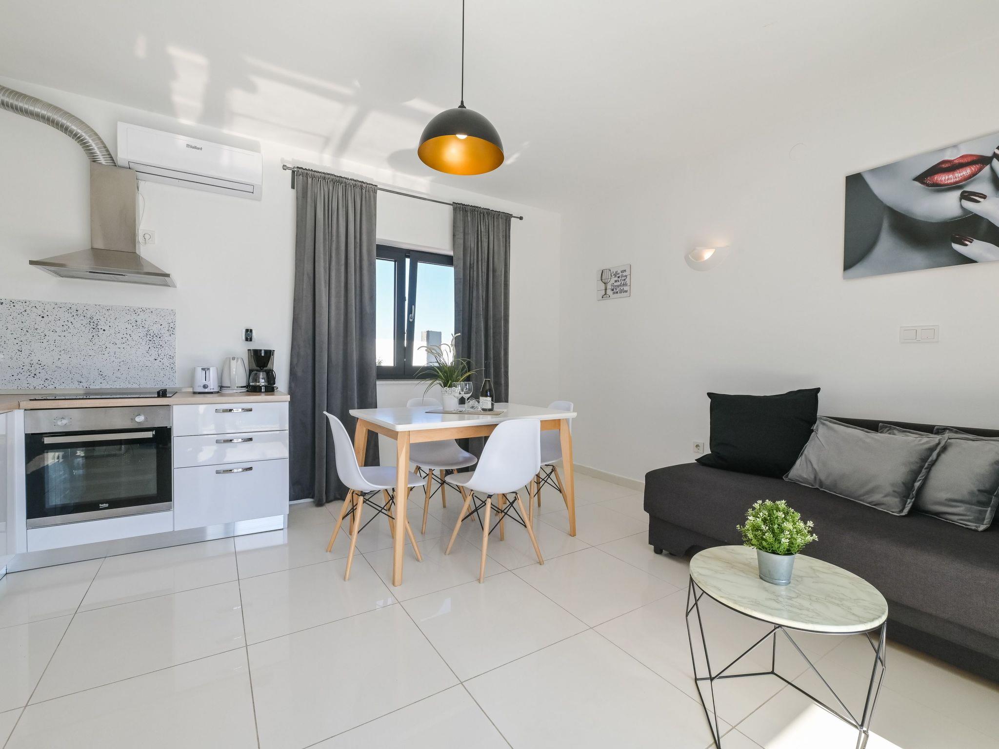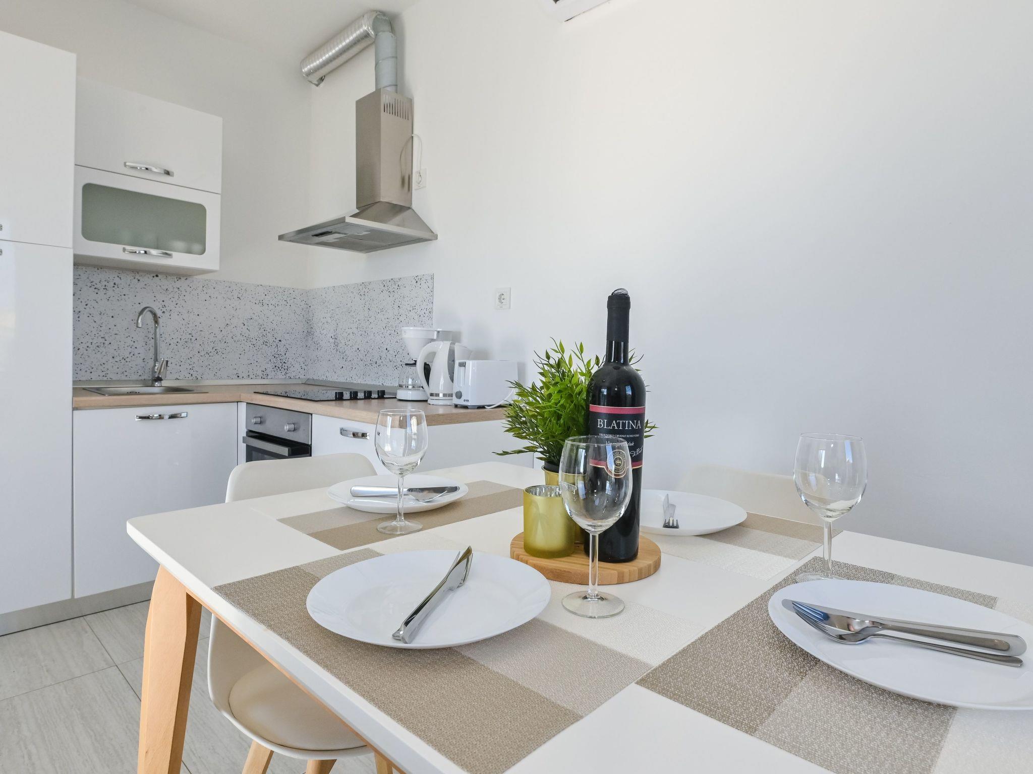 Inside, Pool Villa Vistamar reveals a harmonious layout comprising four one-bedroom apartments, each equipped with its own bathroom, offering privacy and convenience. The partial air conditioning ensures a pleasant atmosphere throughout your stay, providing relief from the warm Dalmatian sun. The presence of an electric kettle in each apartment adds a touch of home, allowing guests to enjoy their favorite hot beverages at their leisure.