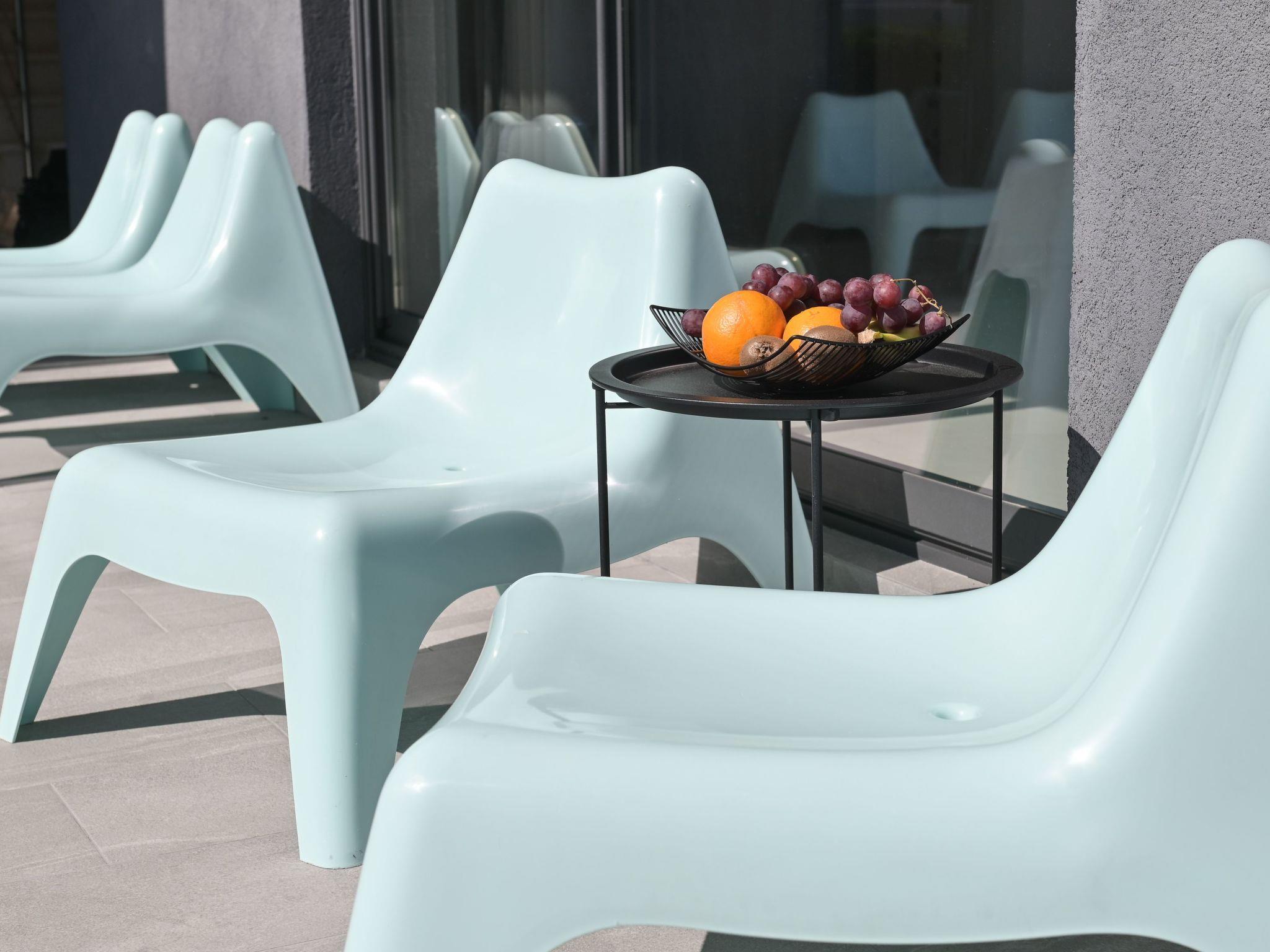 The allure of Pool Villa Vistamar extends to its exterior, where a private pool invites guests to bask in the sun or take a refreshing dip. The sun terrace, adorned with sun loungers, serves as the perfect spot for soaking up the sun or enjoying leisurely afternoons with a book. The meticulously maintained garden envelops the villa in greenery, creating a secluded paradise. It's worth noting that outdoor video surveillance is implemented, ensuring privacy and security throughout your stay.