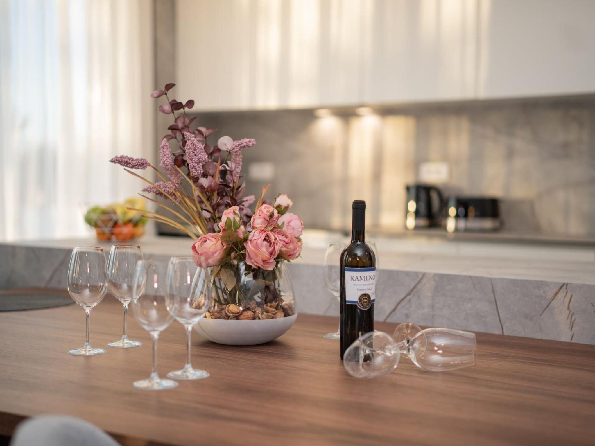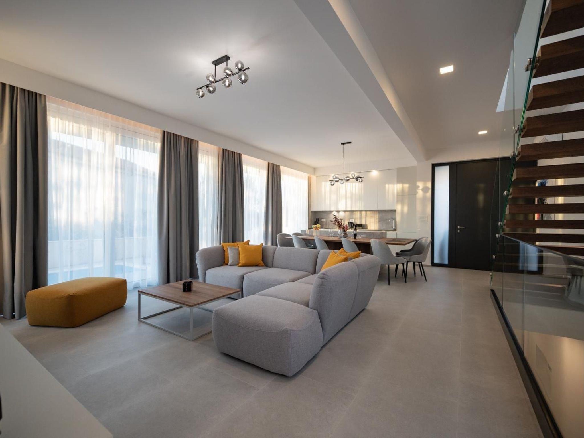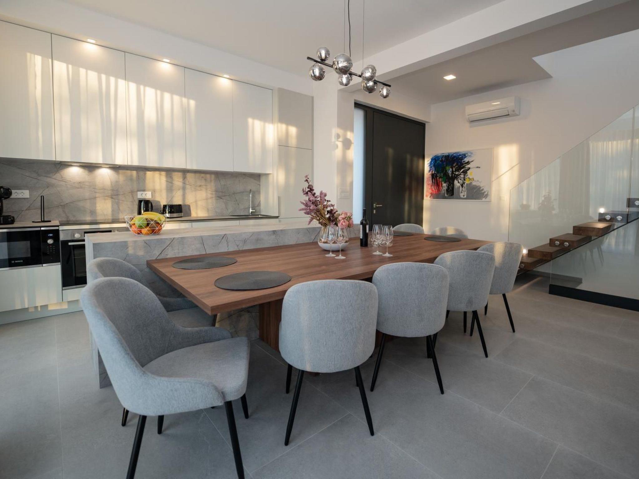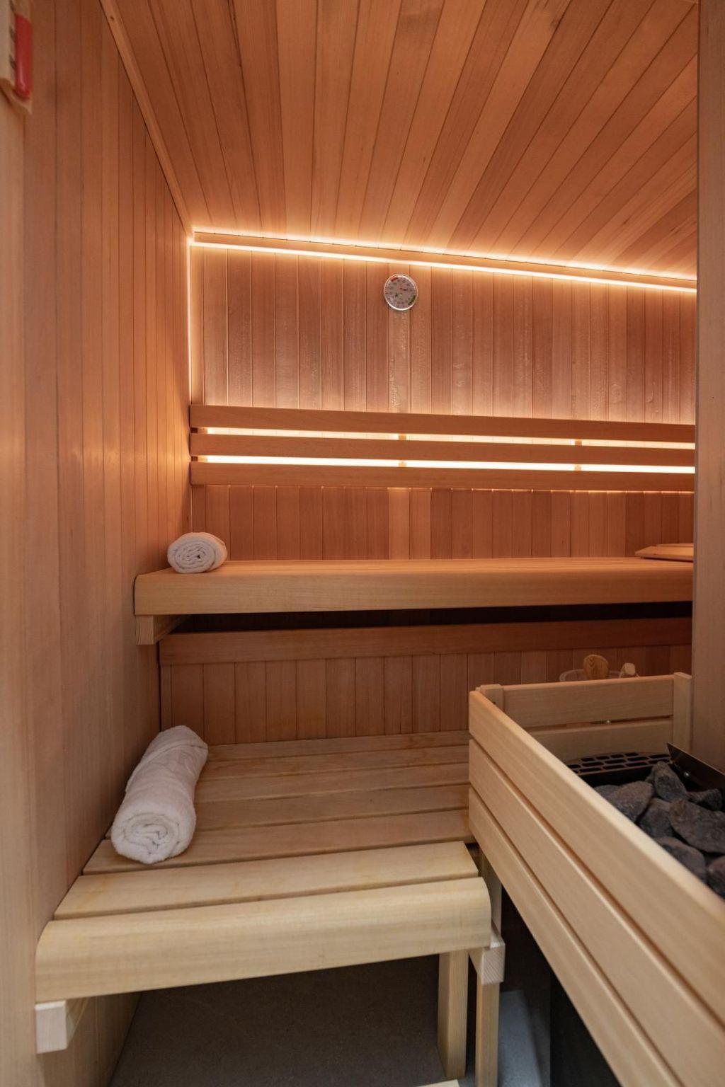 The spacious living area opens to a large terrace, offering breathtaking views of the surrounding landscape, making it the perfect spot to relax or entertain. The private heated pool is an inviting oasis, providing year-round enjoyment, while the adjacent sauna promises a serene escape for ultimate relaxation. For those who enjoy staying active, the villa also includes a well-equipped mini-gym with modern fitness equipment.