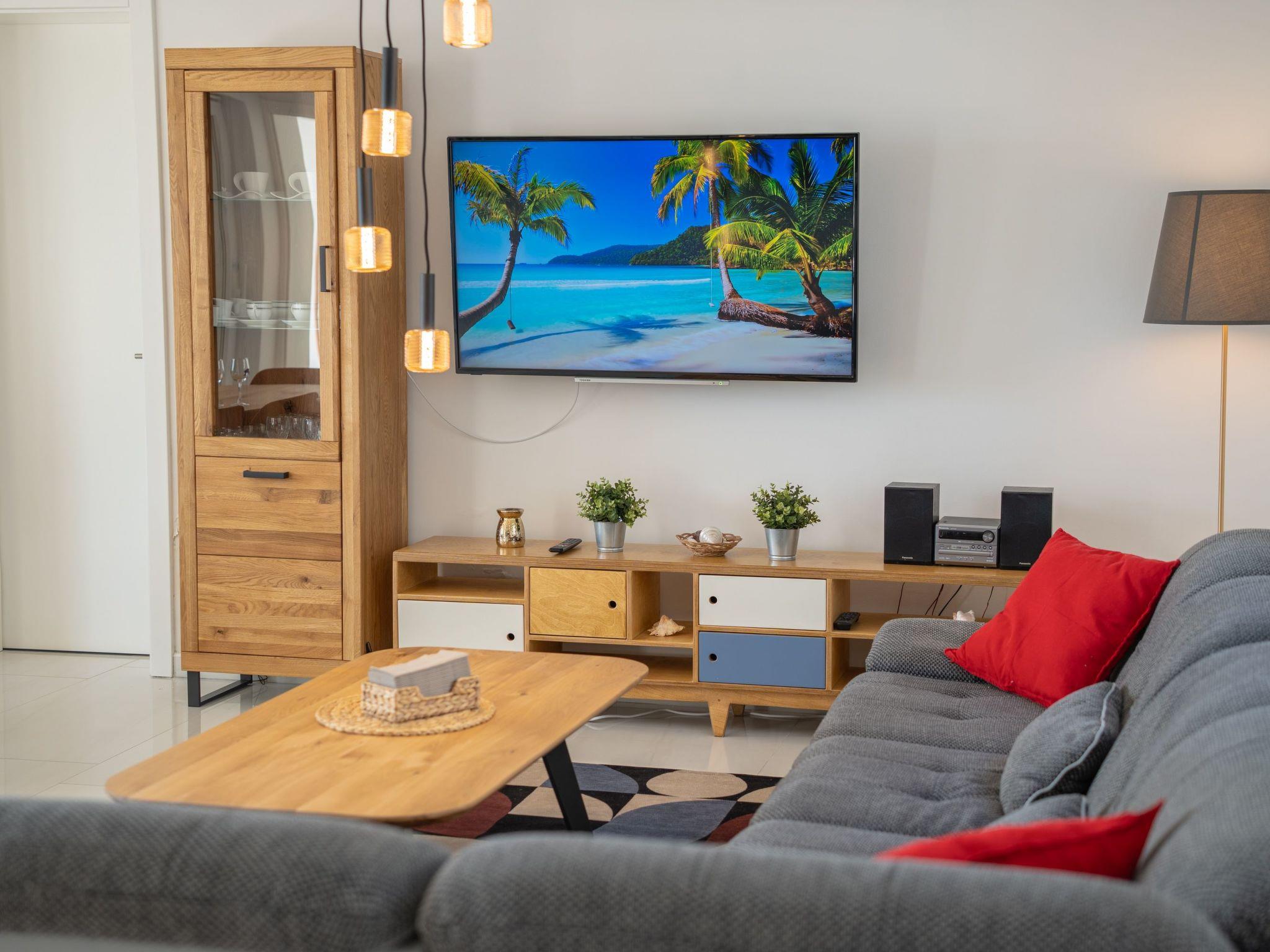 The terrace is adorned with an outdoor BBQ-equipped dining area where you can relax with a glass of fine wine or sunbathe far away from prying eyes. The 600m² plot is partially fenced with a stone wall and a metal fence which will provide you with privacy, so you can enjoy your vacation without interruption.Please note there is a outdoor video surveillance at the property.