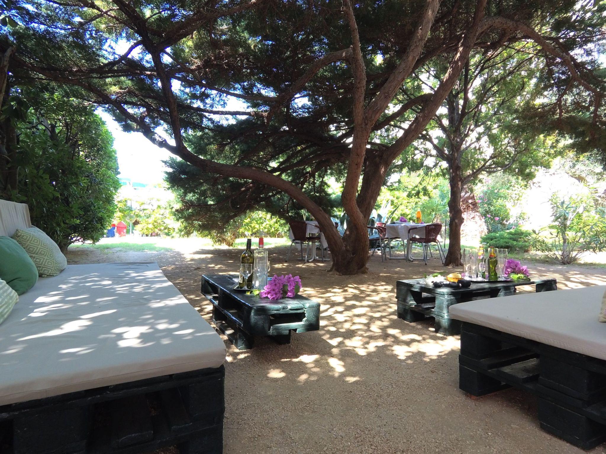 The parents’ bedroom opens directly onto the private terrace with a table, chairs, a parasol and an awning. The 600m² fenced garden with its lush greenery is shared with the owner. A grill invites you to spend leisurely evenings outdoors under a starry sky. There are secure parking spaces right in front of the house on the enclosed site.