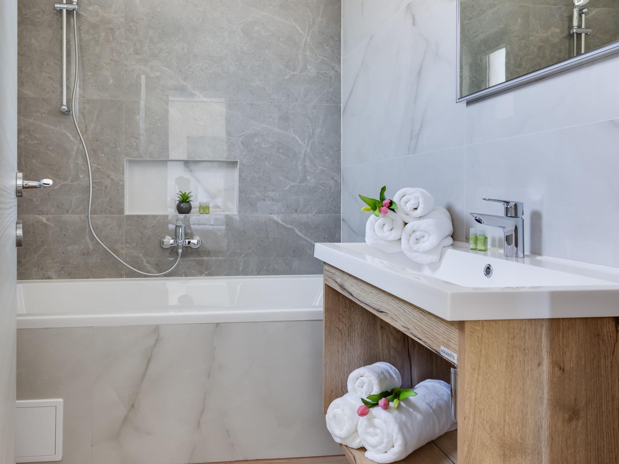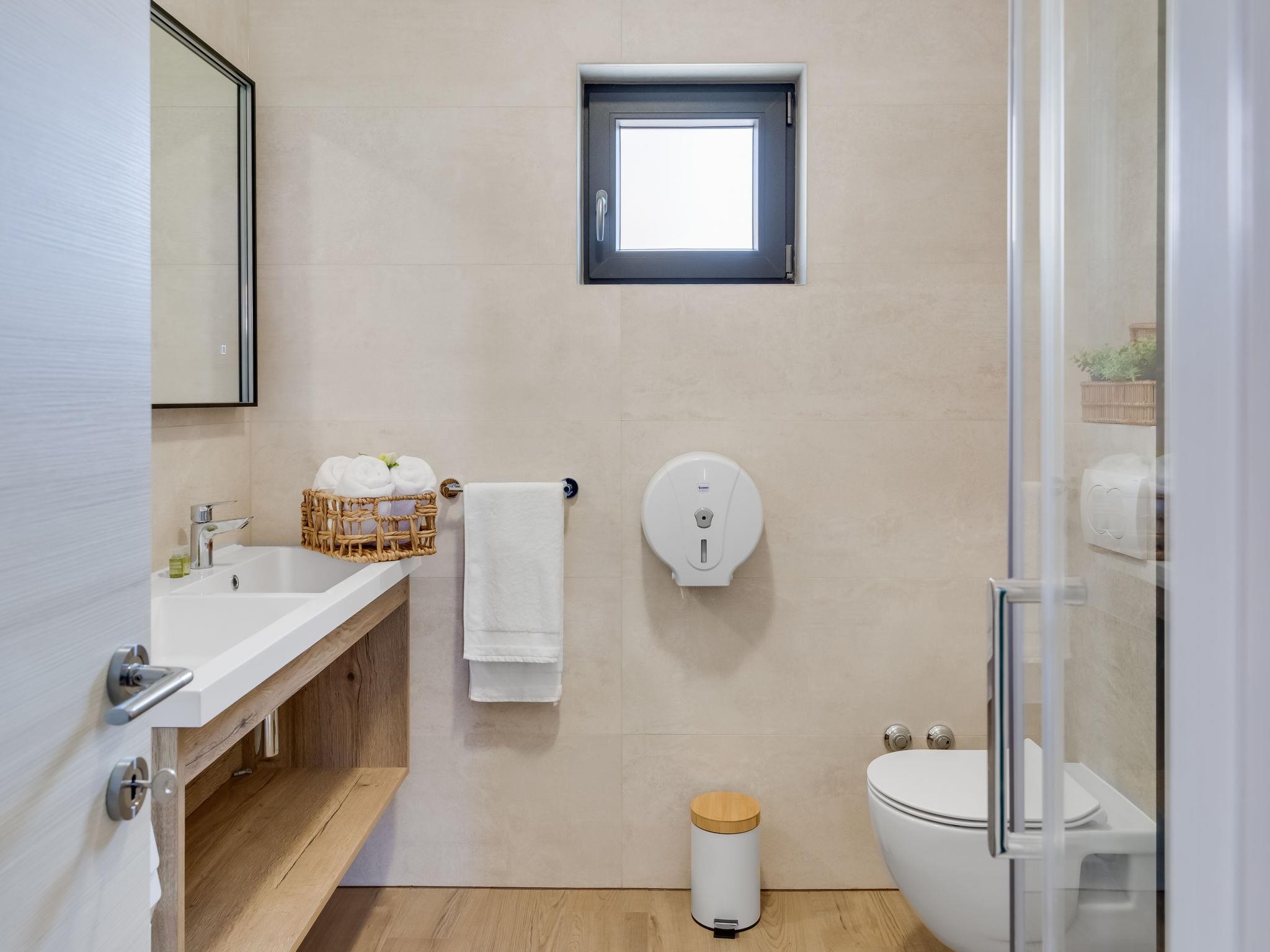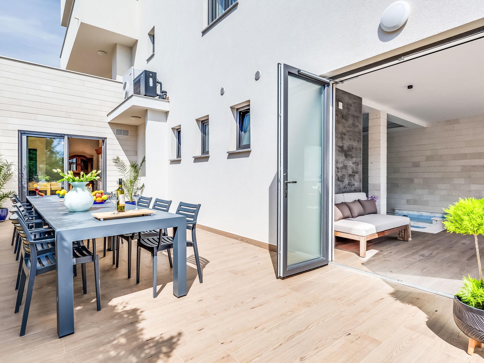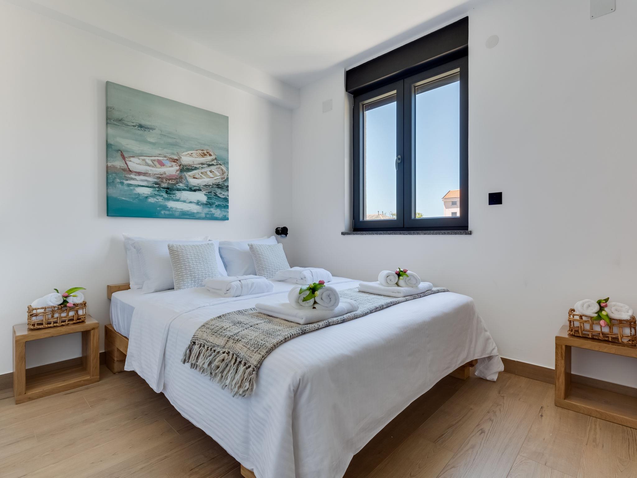 Apartment house "Luxury Villa Terra Maiorum", built in 2024. 100 m from the centre of Povljana, 13 km from the centre of Pag, in a sunny position, 1 km from the sea, 1 km from the beach. For shared use: property 380 m2, indoor pool heated (17 m2, depth 140 cm, seasonal availability: 01.Jan. - 31.Dec.) with internal staircase. WC in the pool area, children's pool, garden furniture, barbecue house. In the house: internet access. Motor access to the house. Parking (for 5 cars). Shop 80 m, restaurant 500 m, bakery 170 m, bus stop 14.5 km, sandy beach 1 km pebble beach 1.2 km. Please note: airfield 60 km from the property.