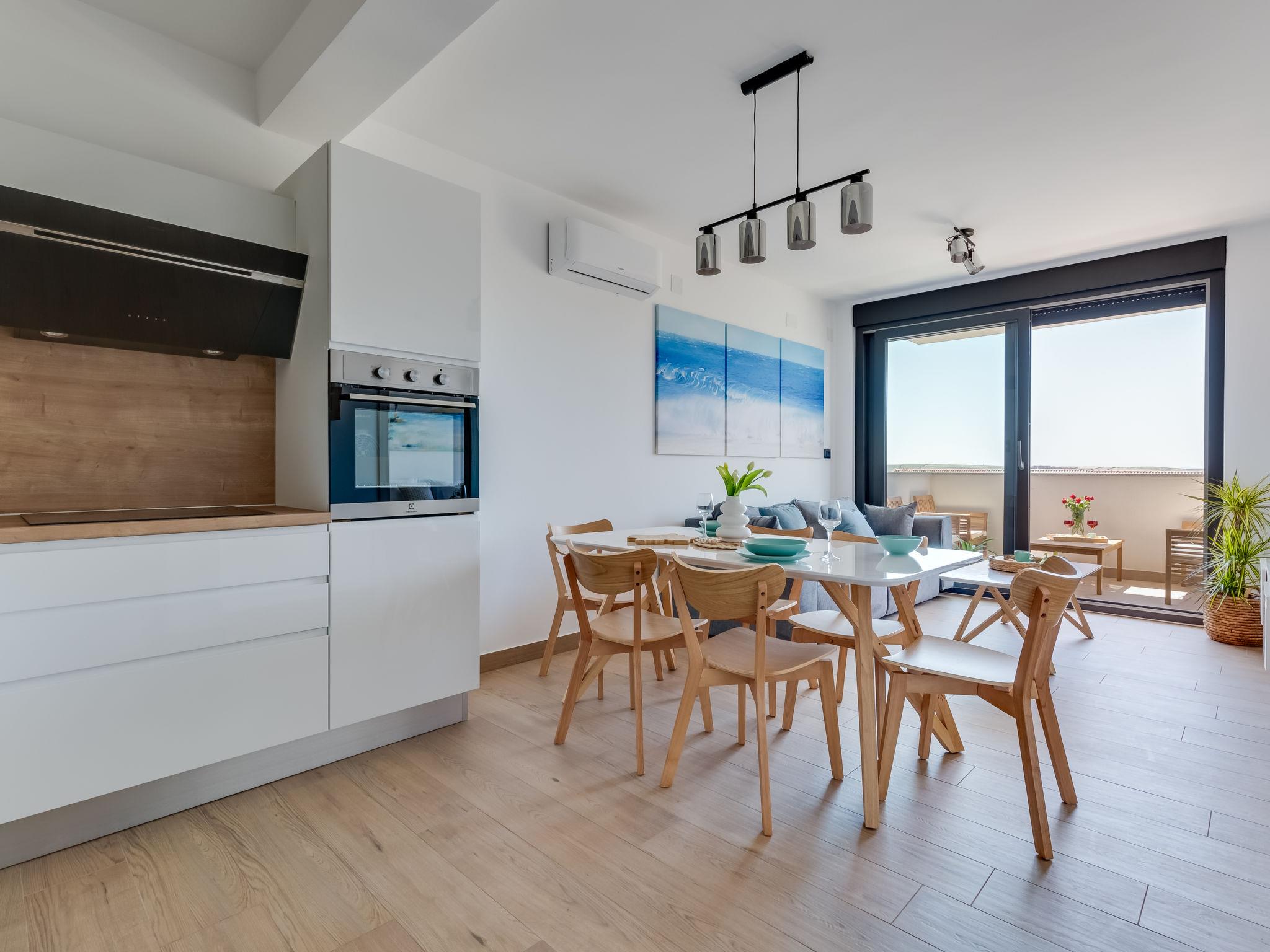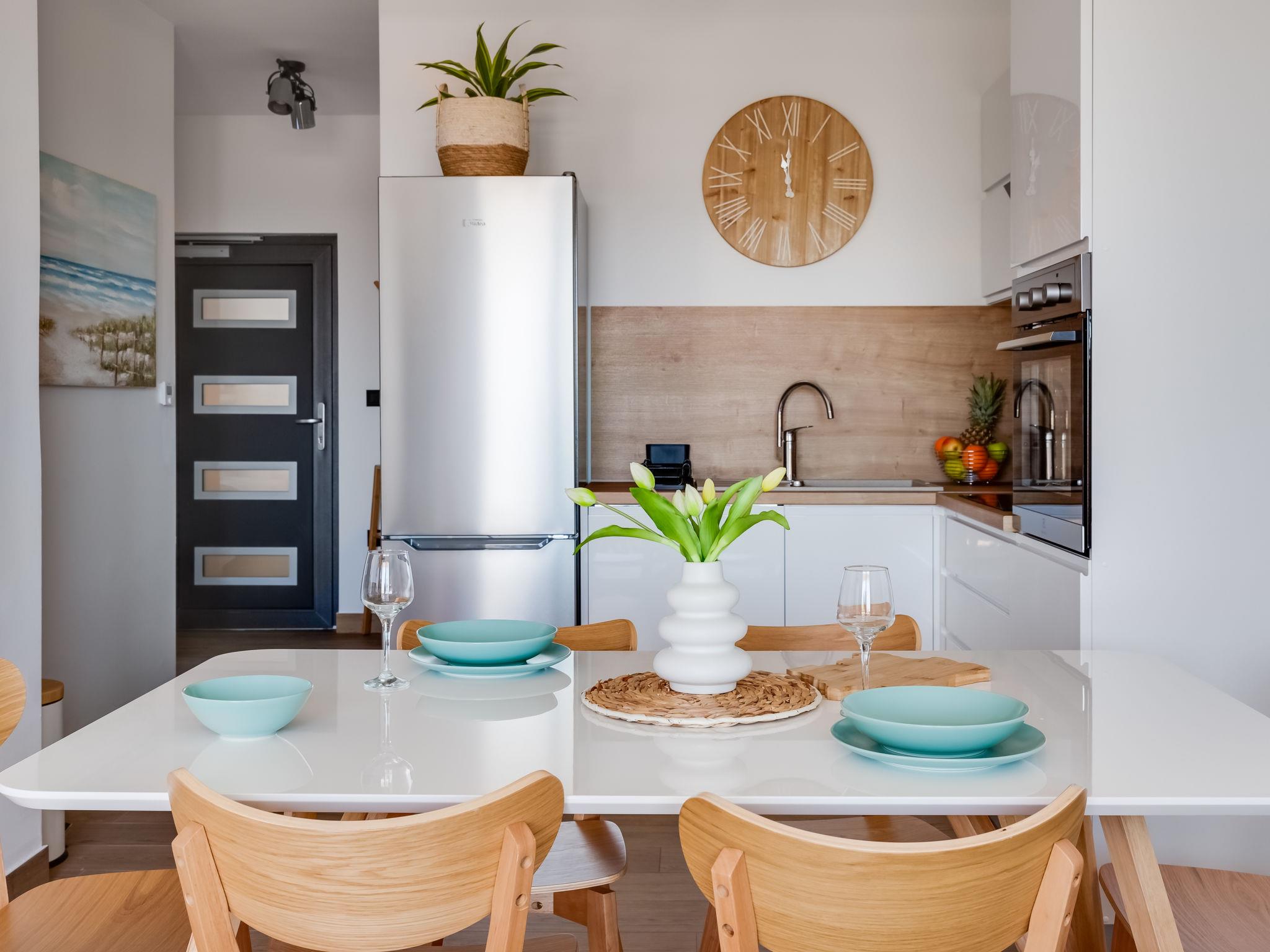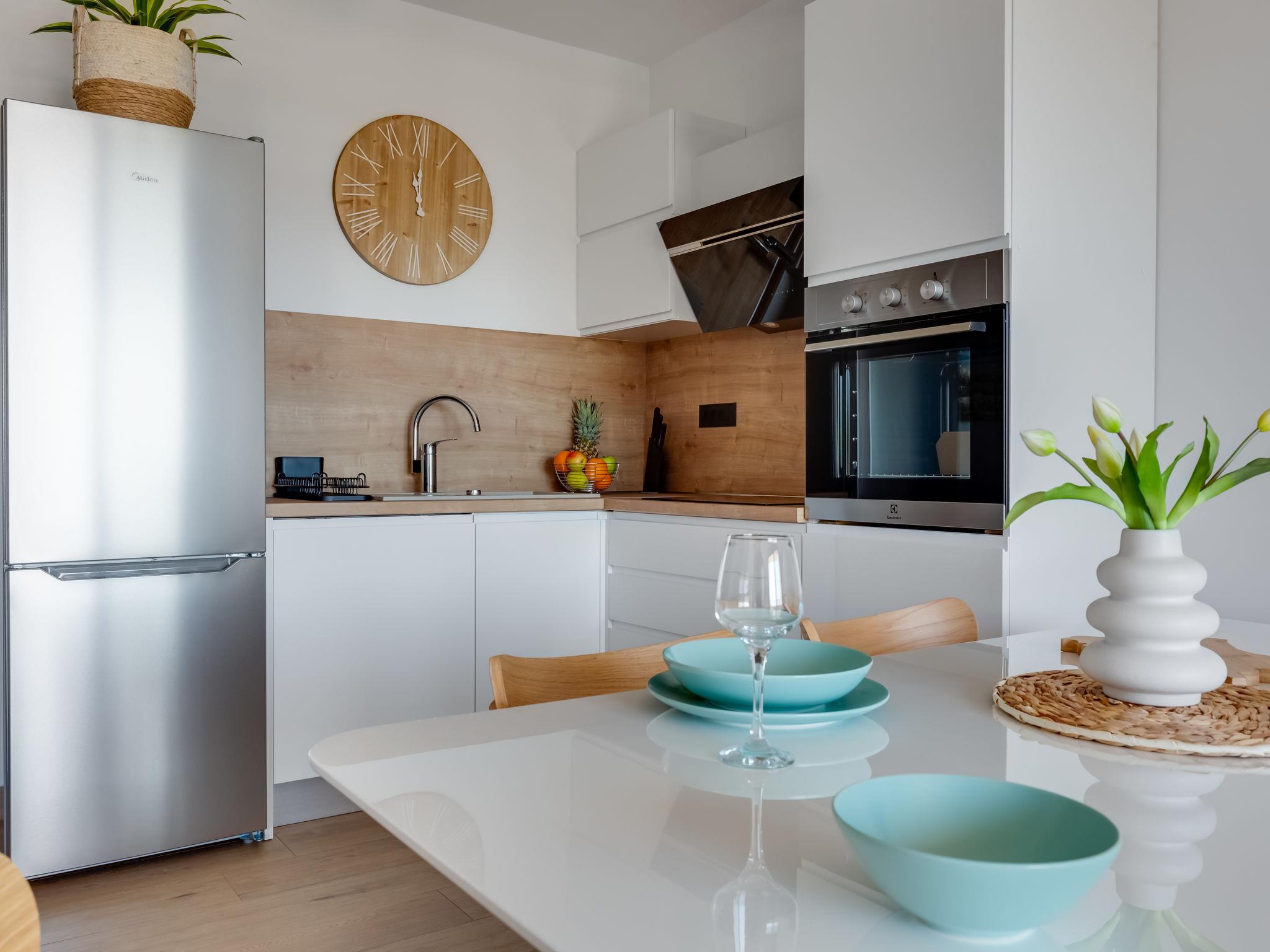 3-room apartment 65 m2 on 1st floor, south-west facing position. Living/dining room 35 m2 with cable TV and international TV channels (flat screen), air conditioning. Exit to the terrace. 1 room with 1 french bed (160 cm, length 200 cm), bath/WC and air conditioning. 1 room with 1 french bed (180 cm, length 200 cm). Open kitchen (oven, dishwasher, 4 induction hot plates, freezer, electric coffee machine). Shower/WC. Floor heating. Terrace 12 m2, roofed. Terrace furniture. Panoramic view of the sea. Facilities: washing machine, safe, hair dryer. Internet (WiFi, free). Maximum 1 pet/ dog allowed.