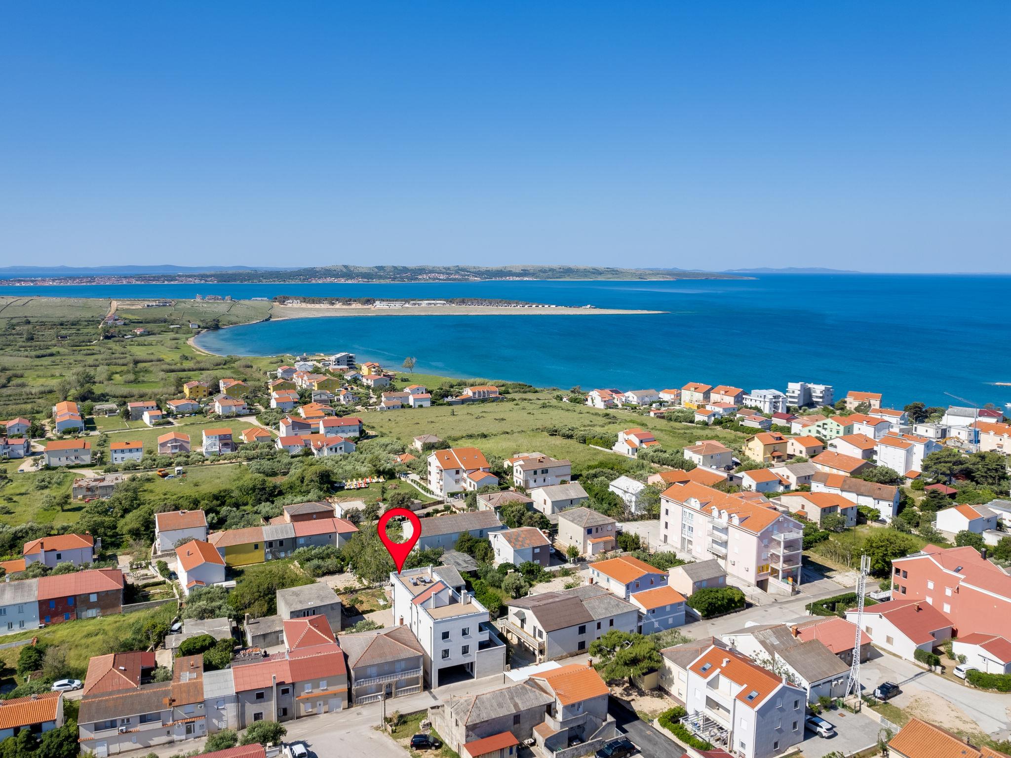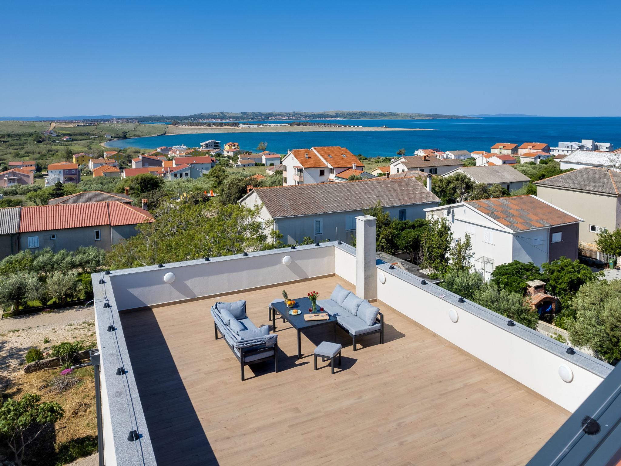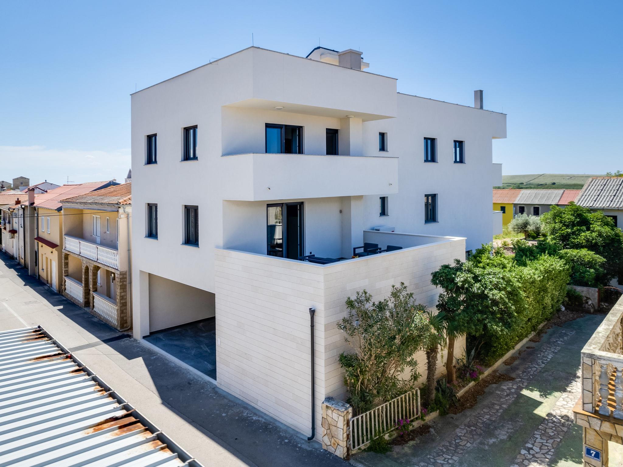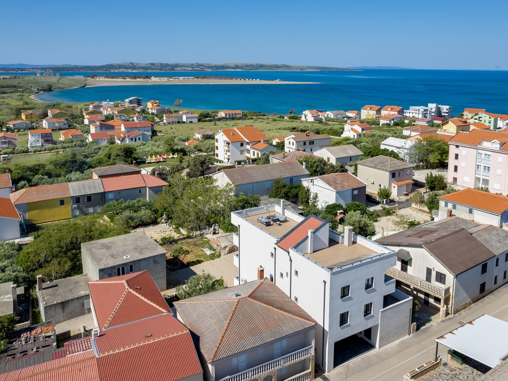 Single-family house "Luxury Villa Terra Maiorum", built in 2024. 100 m from the centre of Povljana, 13 km from the centre of Pag, in a sunny position, 1 km from the sea, 1 km from the beach. Private: property 500 m2, indoor pool heated (17 m2, depth 140 cm, seasonal availability: 01.Jan. - 31.Dec.) with internal staircase. WC in the pool area, paddling pool, garden furniture, barbecue house. In the house: internet access, washing machine. Parking (for 5 cars). Shop 80 m, restaurant 500 m, bakery 170 m, bus stop 14.5 km, sandy beach 1 km pebble beach 1.2 km. Please note: airfield 60 km from the property. The house consists of 3 apartments rented as one unit. Two apartments on the first floor and one apartment on the second floor.
