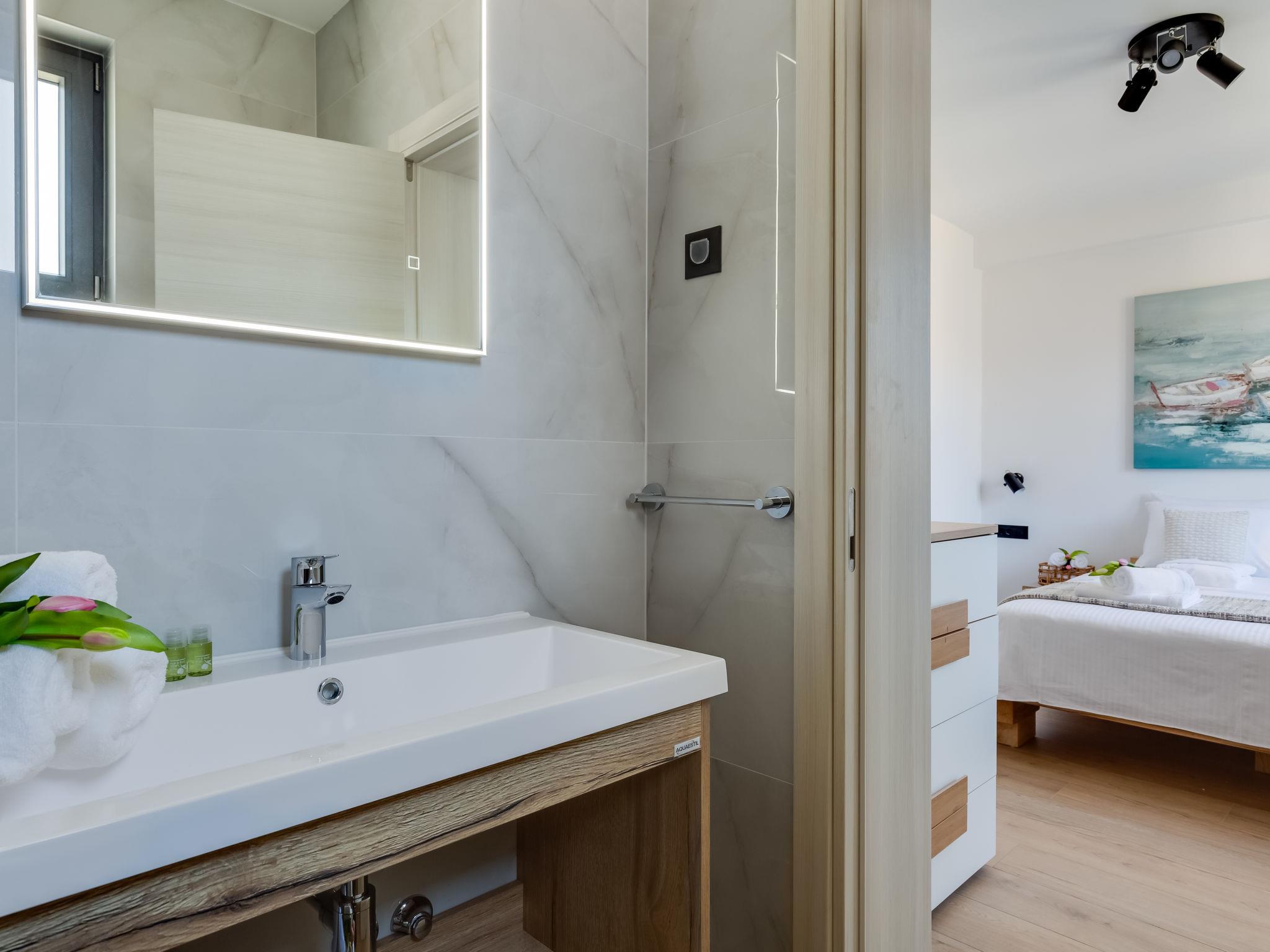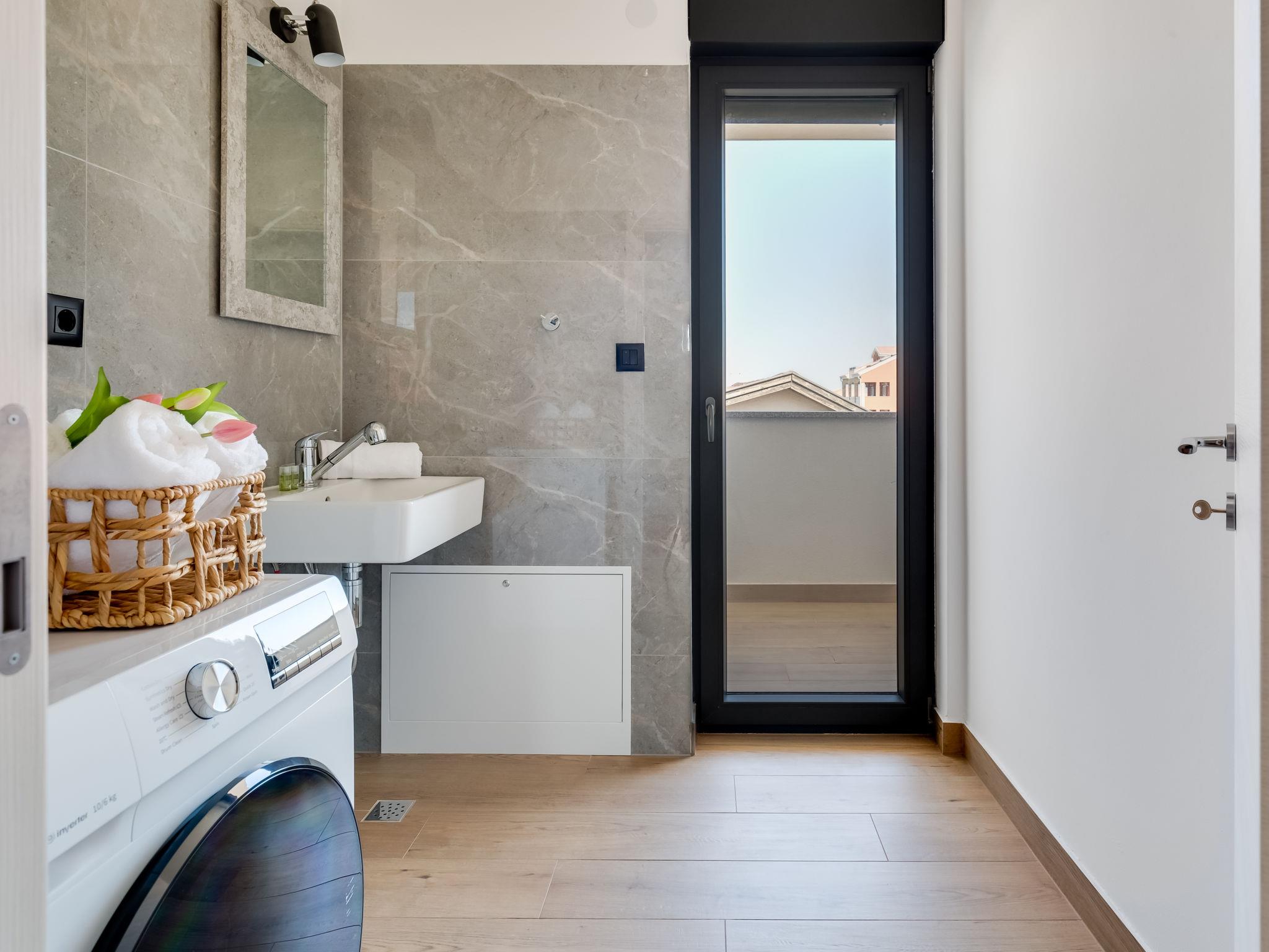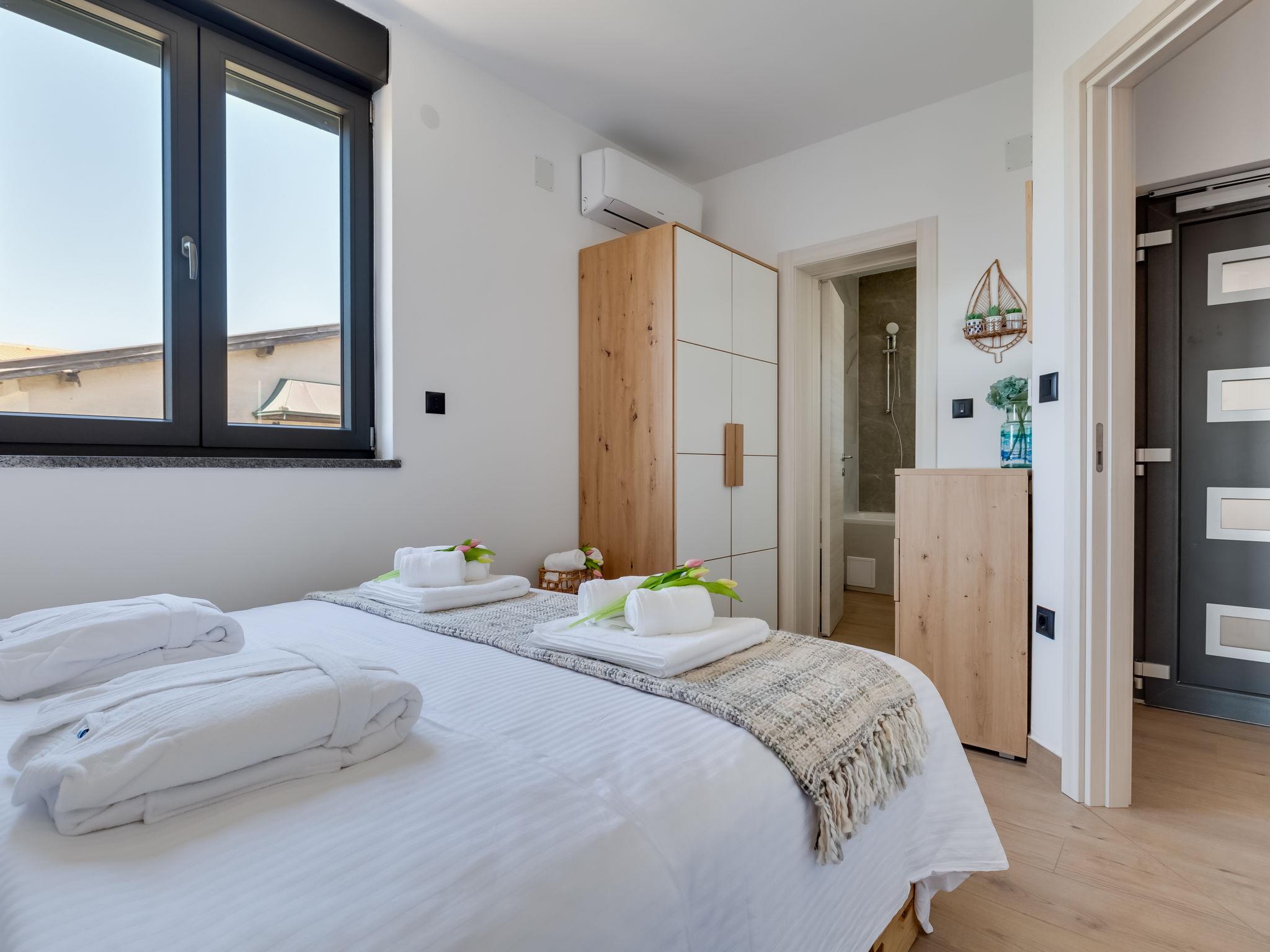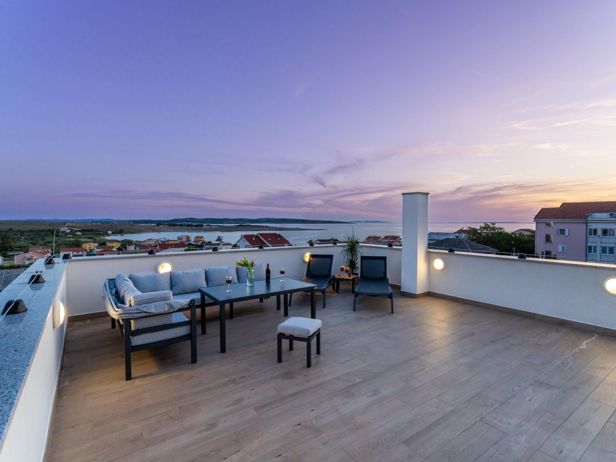 Single-family house "Luxury Villa Terra Maiorum", built in 2024. 100 m from the centre of Povljana, 13 km from the centre of Pag, in a sunny position, 1 km from the sea, 1 km from the beach. Private: property 500 m2, indoor pool heated (17 m2, depth 140 cm, seasonal availability: 01.Jan. - 31.Dec.) with internal staircase. WC in the pool area, paddling pool, garden furniture, barbecue house. In the house: internet access, washing machine. Parking (for 5 cars). Shop 80 m, restaurant 500 m, bakery 170 m, bus stop 14.5 km, sandy beach 1 km pebble beach 1.2 km. Please note: airfield 60 km from the property. The house consists of 3 apartments rented as one unit. Two apartments on the first floor and one apartment on the second floor.