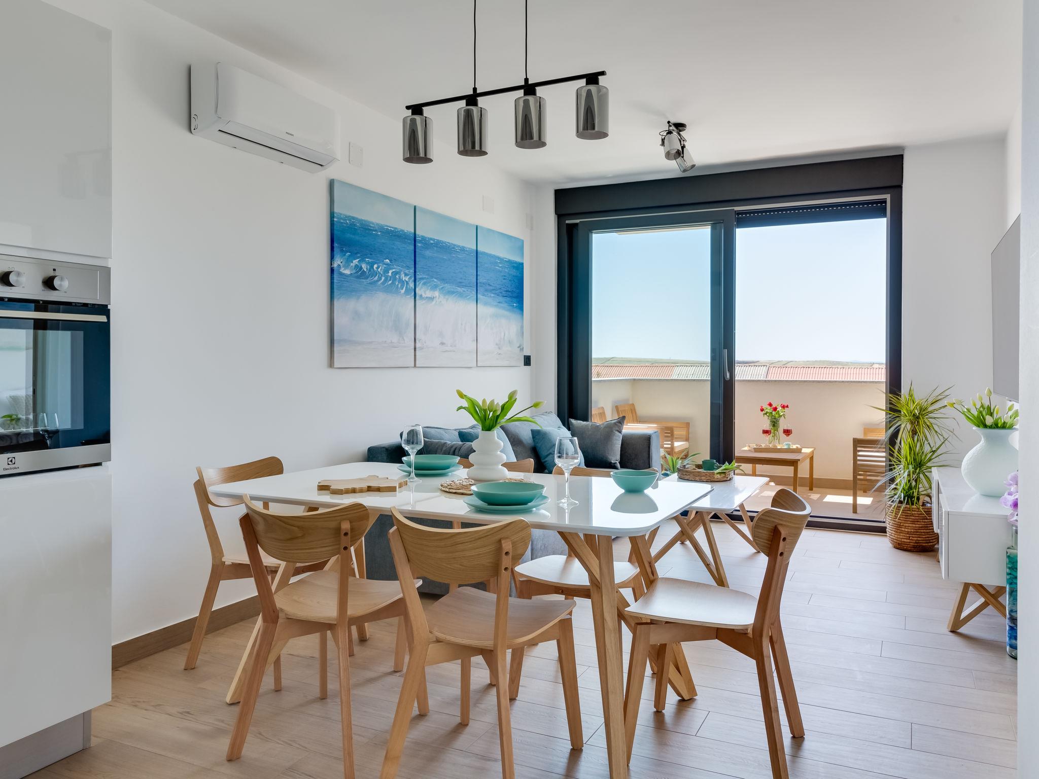 9-room house 225 m2. Living/dining room with 1 double sofabed (140 cm, length 200 cm), kitchen corner, cable TV and international TV channels (flat screen), air conditioning. Exit to the terrace. 1 room with 1 french bed (160 cm, length 200 cm). Living/dining room with cable TV and international TV channels (flat screen), air conditioning. Exit to the terrace. 1 room with 1 french bed (160 cm, length 200 cm), bath/WC and air conditioning. 1 room with 1 french bed (180 cm, length 200 cm). Open kitchen (oven, dishwasher, 4 induction hot plates, freezer, electric coffee machine). 2 showers/WC. Upper floor: living/dining room 50 m2 with cable TV and international TV channels (flat screen), air conditioning. Exit to the terrace. Entrance hall with air conditioning. 1 room with 1 french bed (160 cm, length 200 cm). 1 room with 1 french bed (180 cm, length 200 cm). 1 room with 2 beds (120 cm, length 200 cm). Floor heating. 2 terraces 10 m2, covered terrace 30 m2, roofed. Terrace furniture. Distant view of the sea. Facilities: safe, hair dryer. Internet (WiFi, free). Maximum 1 pet/ dog allowed. No internal connecting door between the floors. On the first floor:one apartment with living/dining area, open kitchen and 1 bedroom, the second apartment with living/dining area, open kitchen and 2 bedrooms. On the second floor:apartment with living/dining area, open kitchen and 3 bedrooms. Roof terrace (130m2). Exit to the roof terrace from the entrance hall on the second floor. 110090241