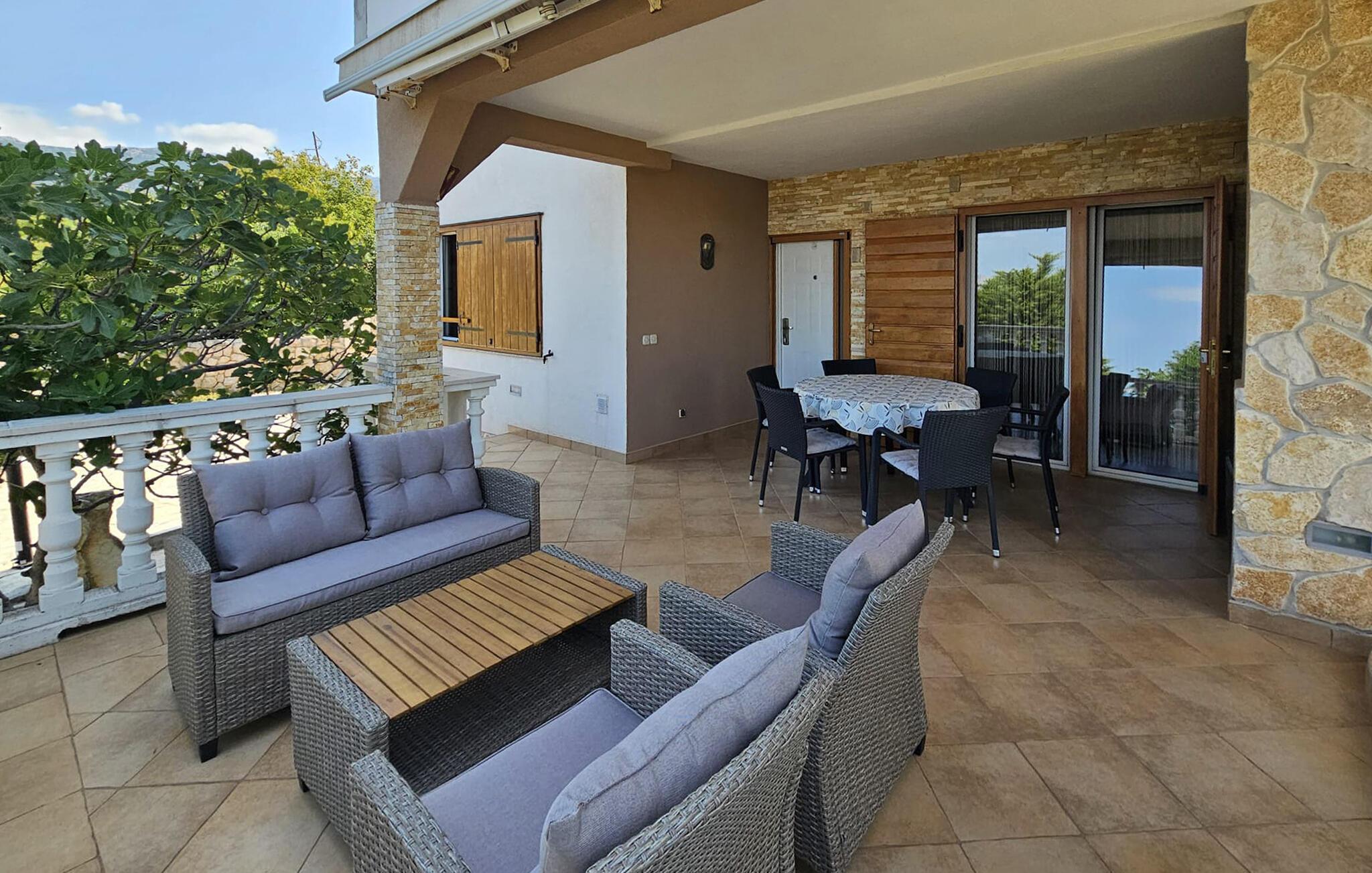 Lejligheden ligger i stueetagen og er pænt og hyggeligt indrettet, hvilket skaber en ideel ramme for en afslappende ferie når som helst på året. Klimaanlægget sørger for behagelige temperaturer selv på varme sommerdage. Den smukke udsigt til havet er prikken over i'et på jeres ferie.