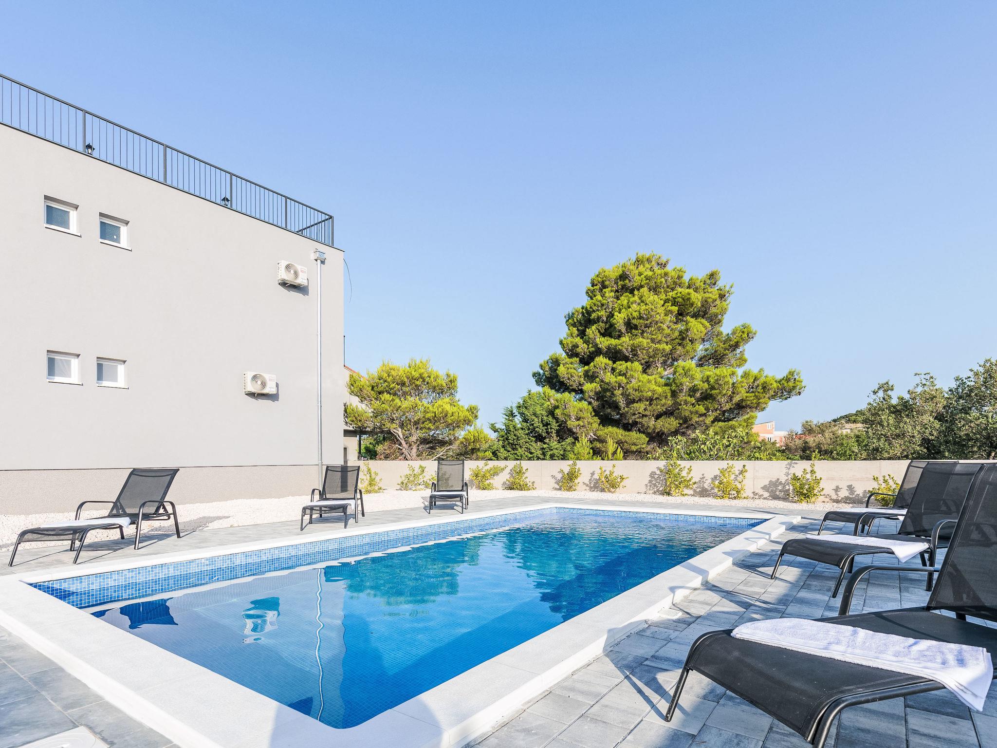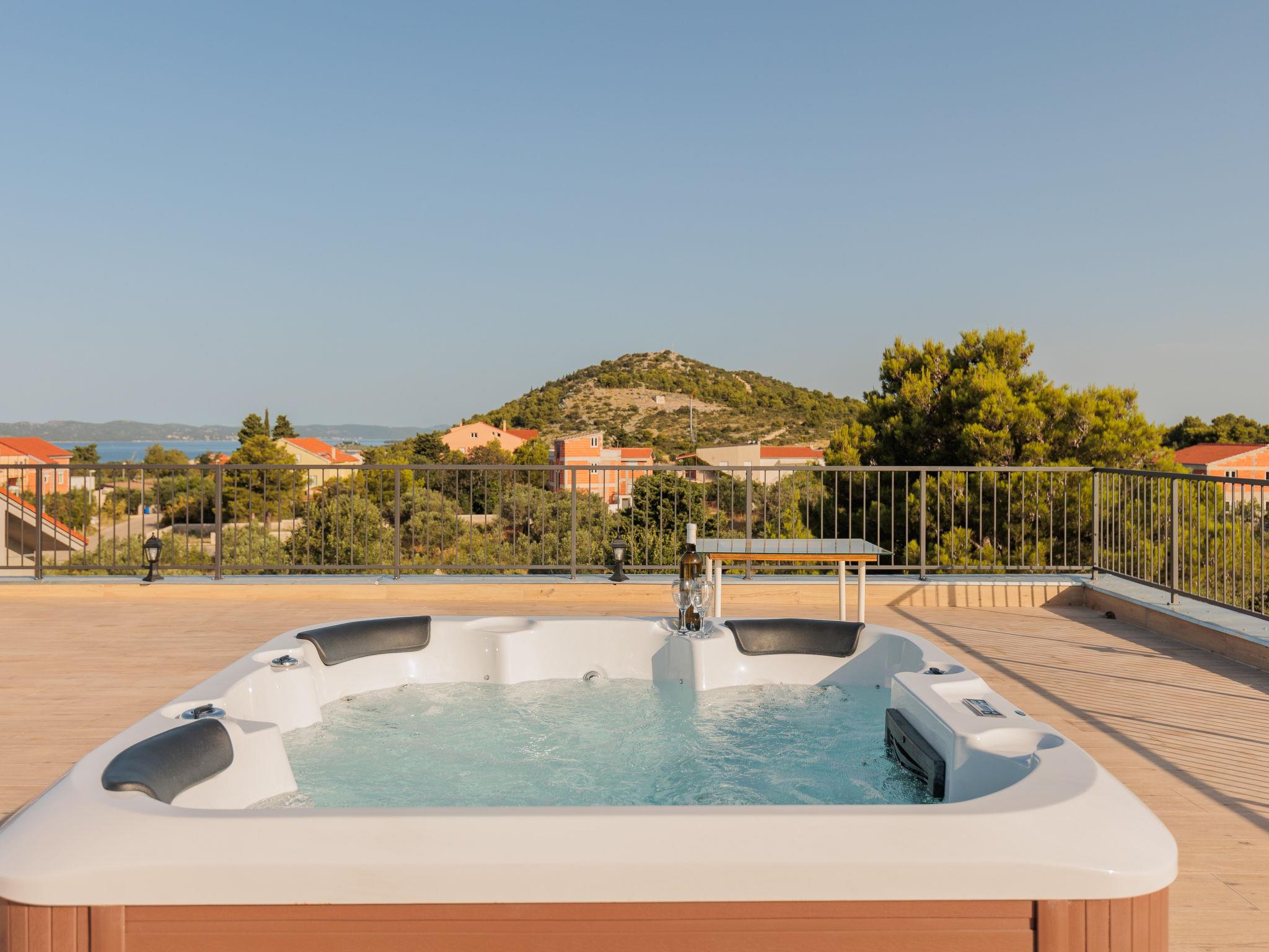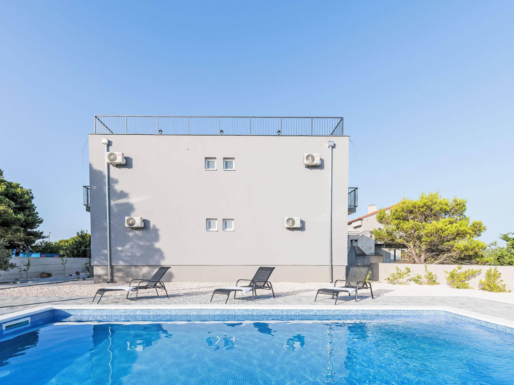Drage 4 km from Pakoštane: Beautiful single-family house "Milena", 2 storeys, built in 2023. In a sunny position, 1 km from the sea, 1 km from the beach. Private: property 1'700 m2, swimming pool angular (8 x 4 m, 32 m2, depth 150 cm, seasonal availability: 01.May. - 31.Oct.). Outdoor shower, hot tub, terrace (70 m2), children's playground. In the house: internet access, roof terrace, washing machine, tumble dryer. Parking (for 5 cars) at the house on the premises. Shop 350 m, restaurant 400 m, bus stop 600 m, pebble beach 1 km, rocky beach 1 km, concrete beach 1 km. Cycle lane 800 m. Well-known lakes can easily be reached: Vransko jezero 1.7 km. Groups of teenagers on request only. Neighbourhood highly sensitive to noise. Quietness and good behaviour expected.