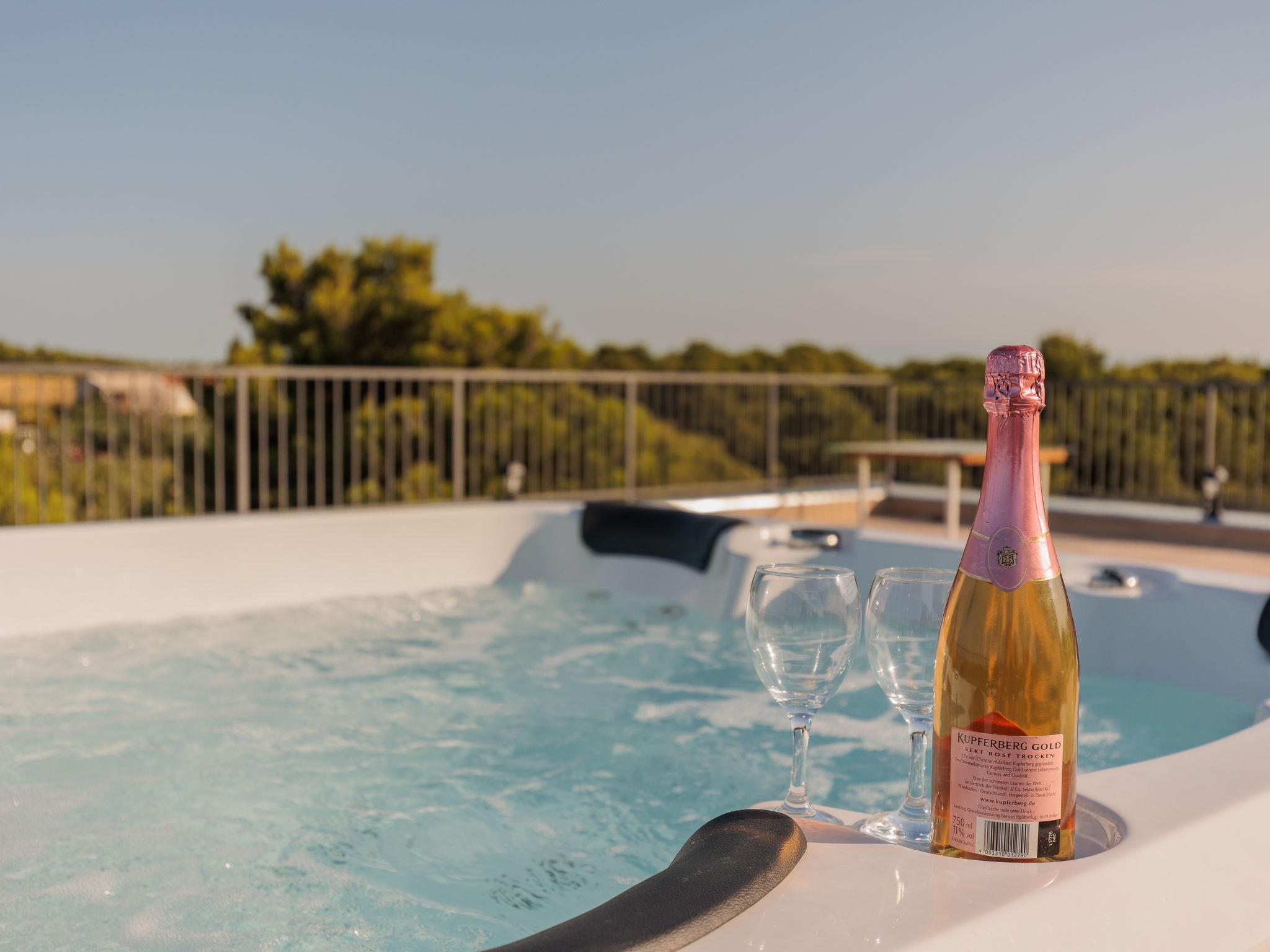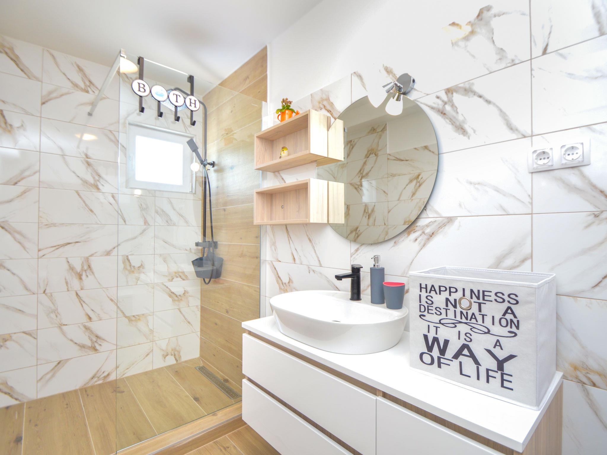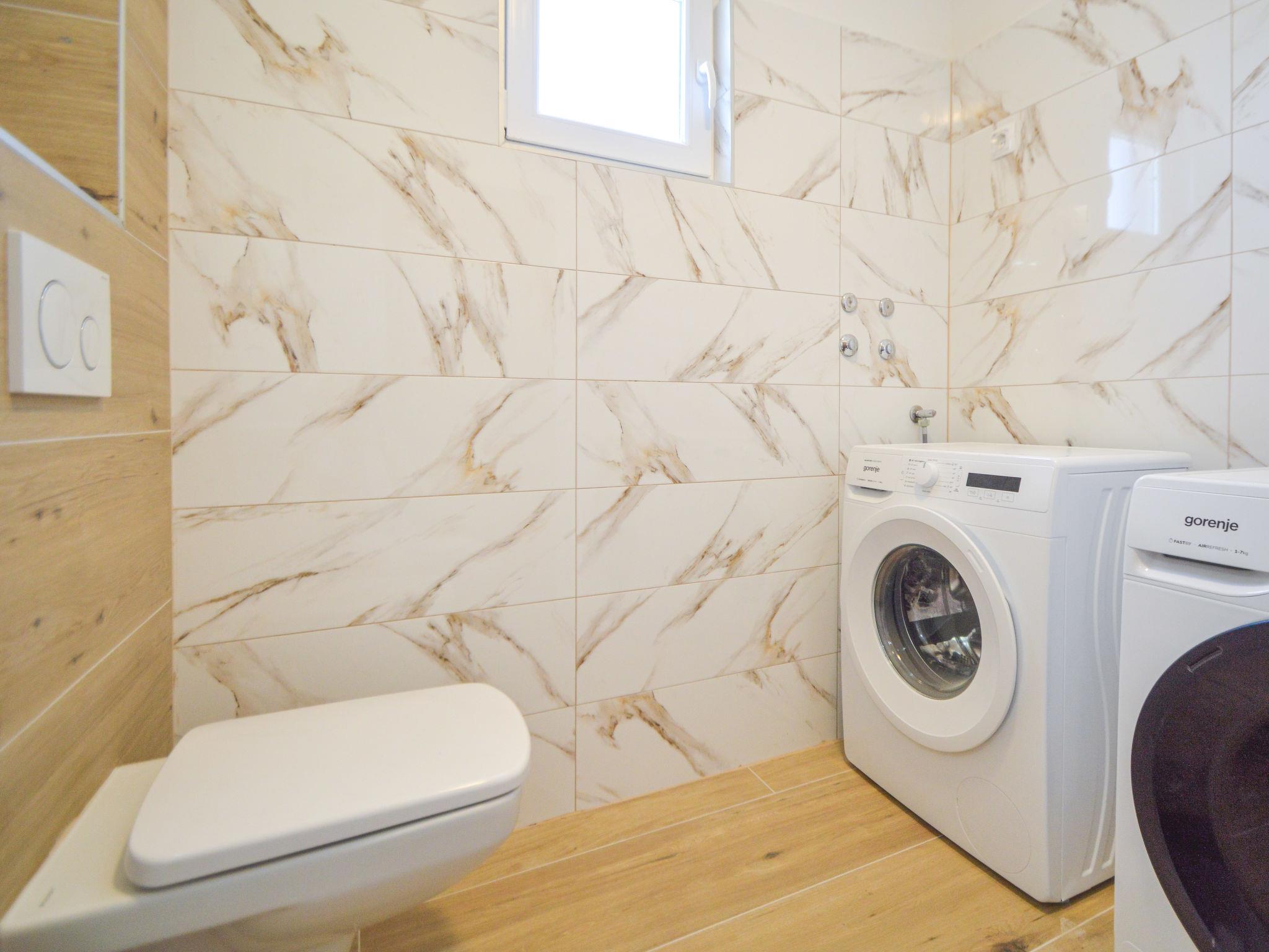 Drage 4 km from Pakoštane: Beautiful single-family house "Milena", 2 storeys, built in 2023. In a sunny position, 1 km from the sea, 1 km from the beach. Private: property 1'700 m2, swimming pool angular (8 x 4 m, 32 m2, depth 150 cm, seasonal availability: 01.May. - 31.Oct.). Outdoor shower, hot tub, terrace (70 m2), children's playground. In the house: internet access, roof terrace, washing machine, tumble dryer. Parking (for 5 cars) at the house on the premises. Shop 350 m, restaurant 400 m, bus stop 600 m, pebble beach 1 km, rocky beach 1 km, concrete beach 1 km. Cycle lane 800 m. Well-known lakes can easily be reached: Vransko jezero 1.7 km. Groups of teenagers on request only. Neighbourhood highly sensitive to noise. Quietness and good behaviour expected.