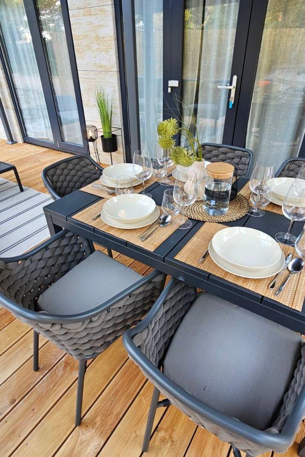 Inside, you'll find a thoughtfully arranged living space that puts comfort and functionality at the forefront. The home boasts two well-appointed bedrooms and two bathrooms, ensuring privacy and convenience for all guests. The heart of this mobile home is its fully equipped kitchen featuring an induction hob, capsule coffee machine, dishwasher, and electric kettle--all you need for easy meal prep and dining. Air conditioning throughout ensures that you can retreat into a cool, comfortable haven after a day under the sun. Additionally, a washing machine is provided for your sole use, making it easy to keep beachwear and towels fresh during your stay.