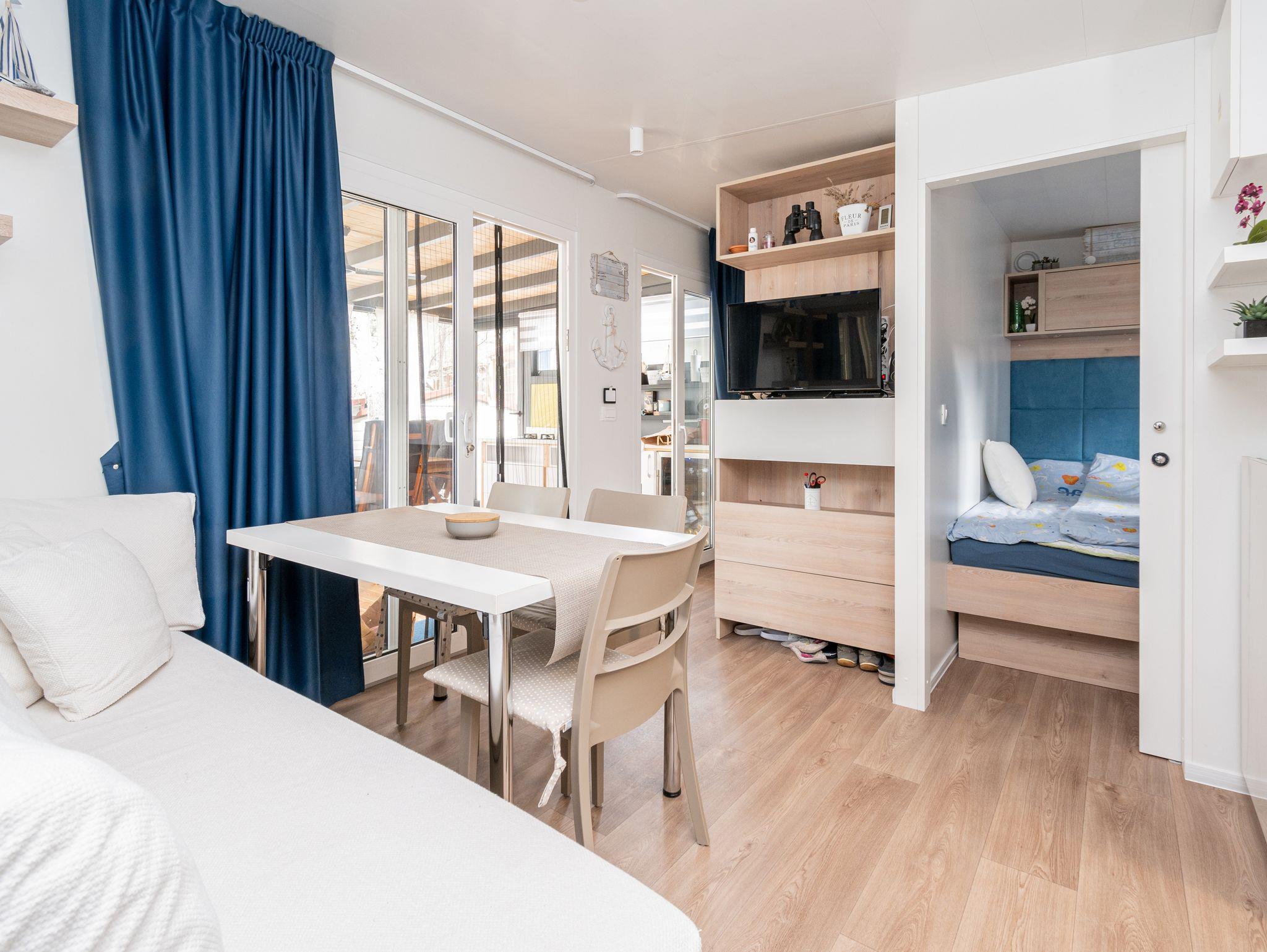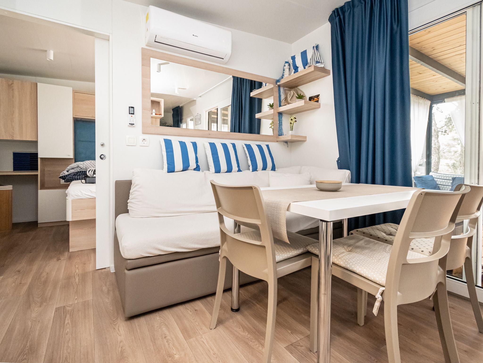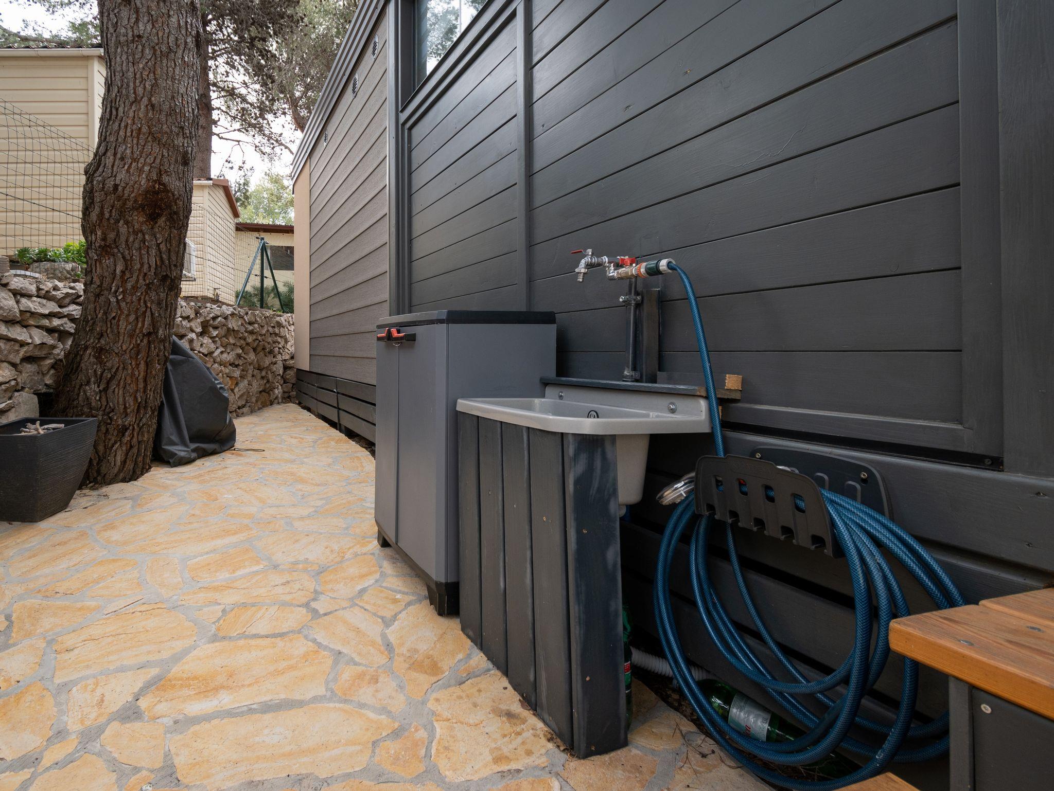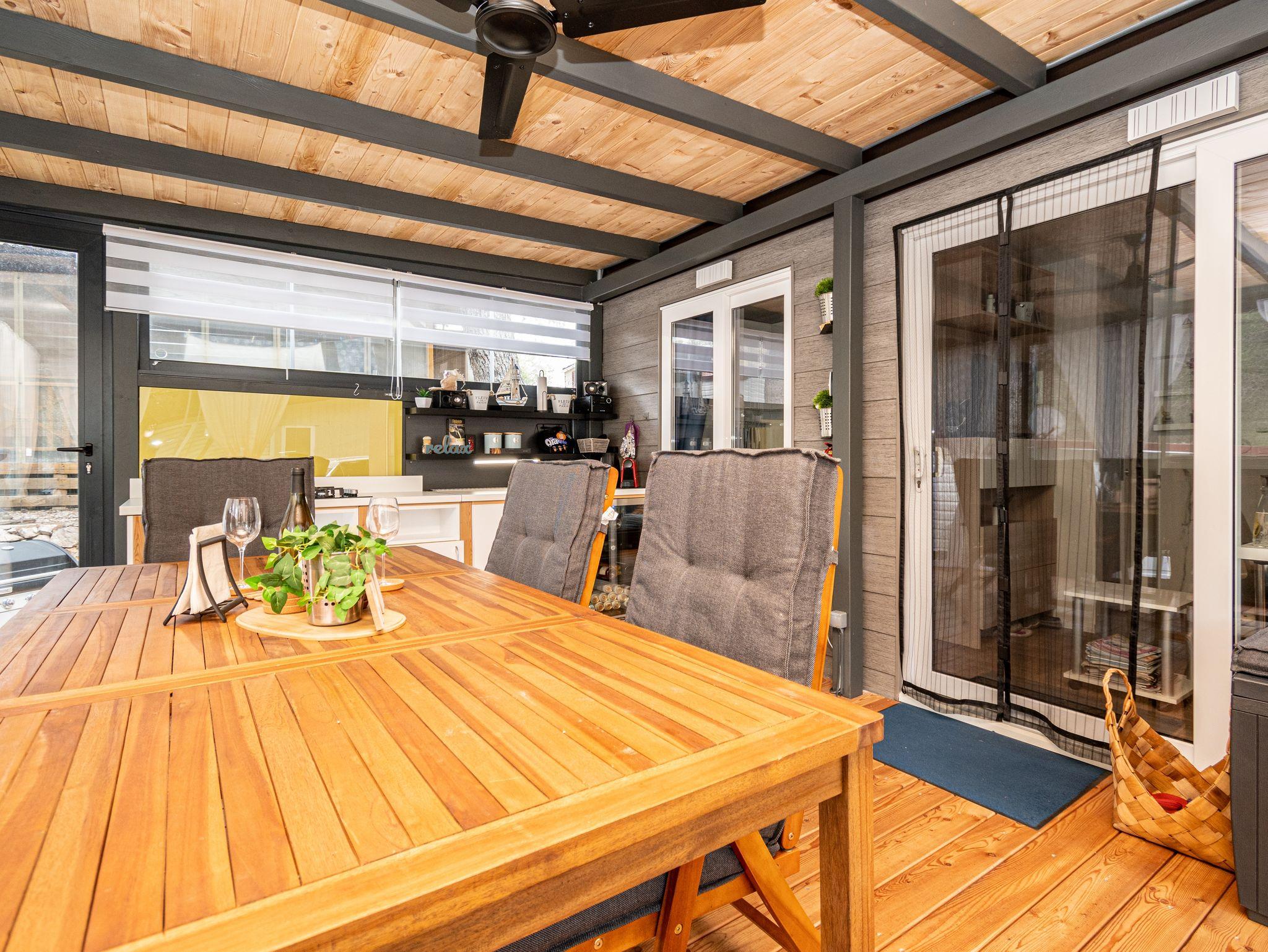 Ferienwohnung bietet Platz für 6 Gäste. Die Betten sind in Schlafzimmern, die es 2 gibt, und in Esszimmer, innerhalb einer Gesamtfläche von 45m2, angeordnet. Die Gäste haben eine eigene Terrasse zur Verfügung, auf der sie in warmen Sommernächten genießen können. Für vollen Genuss und Entspannung gibt es einen privaten Grill für Gäste dieser Unterkunft. IM PREIS INBEGRIFFEN: Endreinigung, Klimatisierung, Parkplatz, Internet, Föhn. VERBINDLICHE ZUSÄTZLICHE KOSTEN: Kurtaxe (Erwachsene 0,93 € - 1,50 € Nacht/Person, Kinderermäßigung 12 - 17 Jahre). UNVERBINDLICHE ZUSÄTZLICHE KOSTEN: Wäschewaschen (5,00 € Waschen), Bootsanlegeplatz (10,00 € pro Nacht). Die Verfügbarkeit zusätzlicher Dienstleistungen in Ihrem reservierten Termin und die Preise derselben (falls nicht aufgeführt) müssen im Voraus überprüft werden. Zusätzliche Dienstleistungen die in der Zahlungsaufforderung nicht aufgeführt sind werden direkt beim Vermieter bezahlt, angenommen der Gast nutzt auch diese. Ermäßigung auf den Grundpreis: Gratistag 14=13 (bei einem Aufenthalt von 14 Tagen oder mehr erhalten Sie einen Gratistag für den Aufenthalt bis 31.12.26).