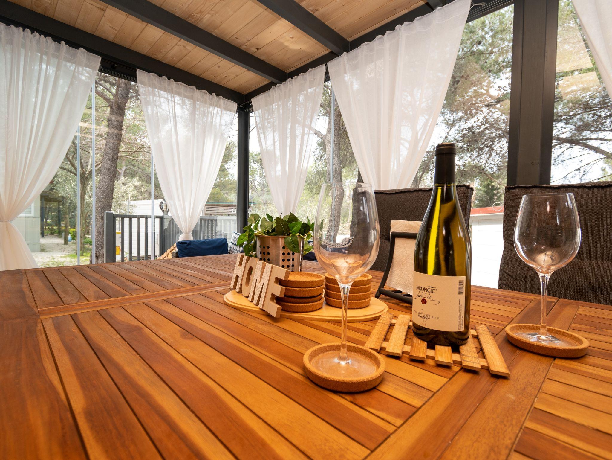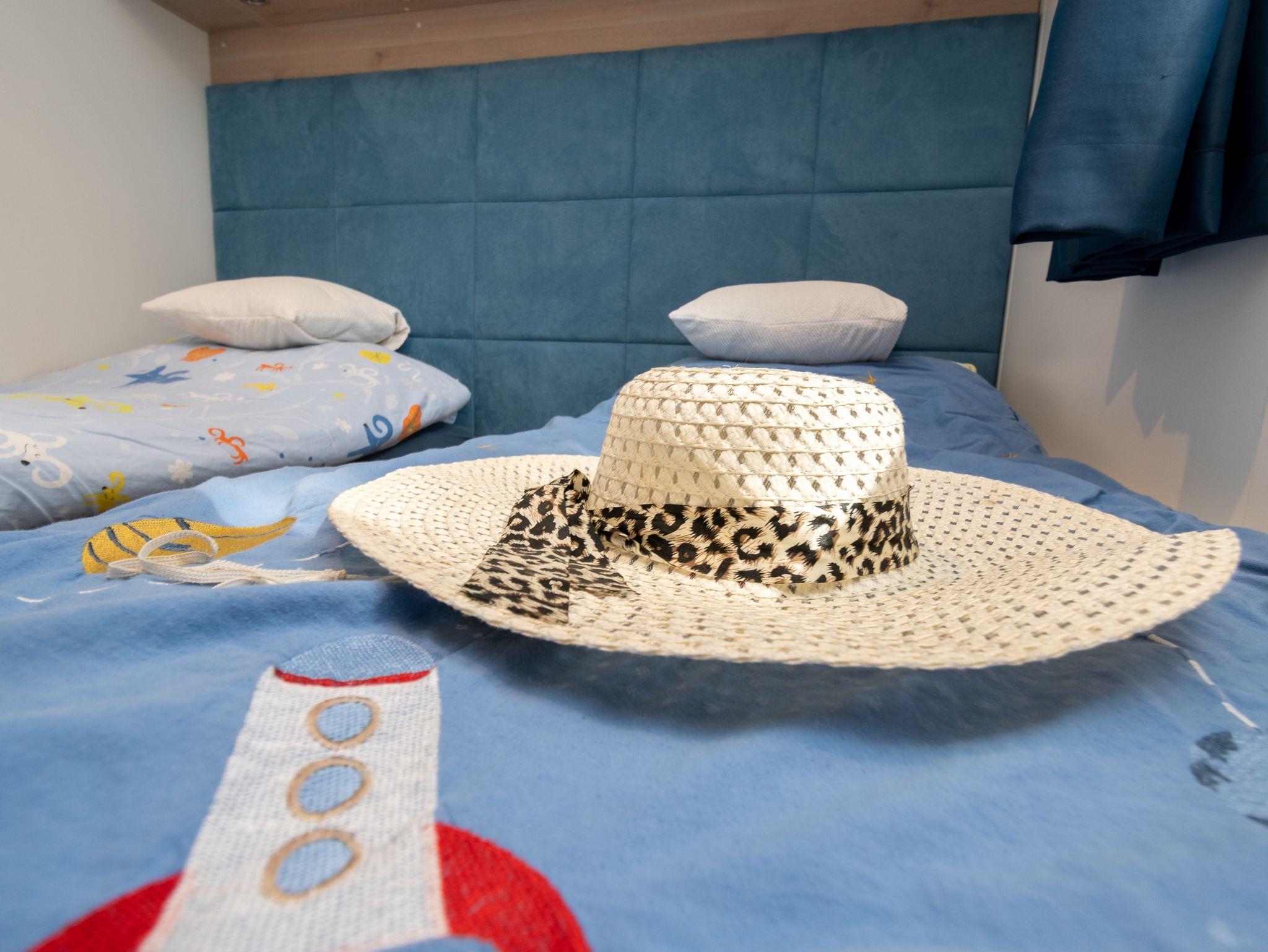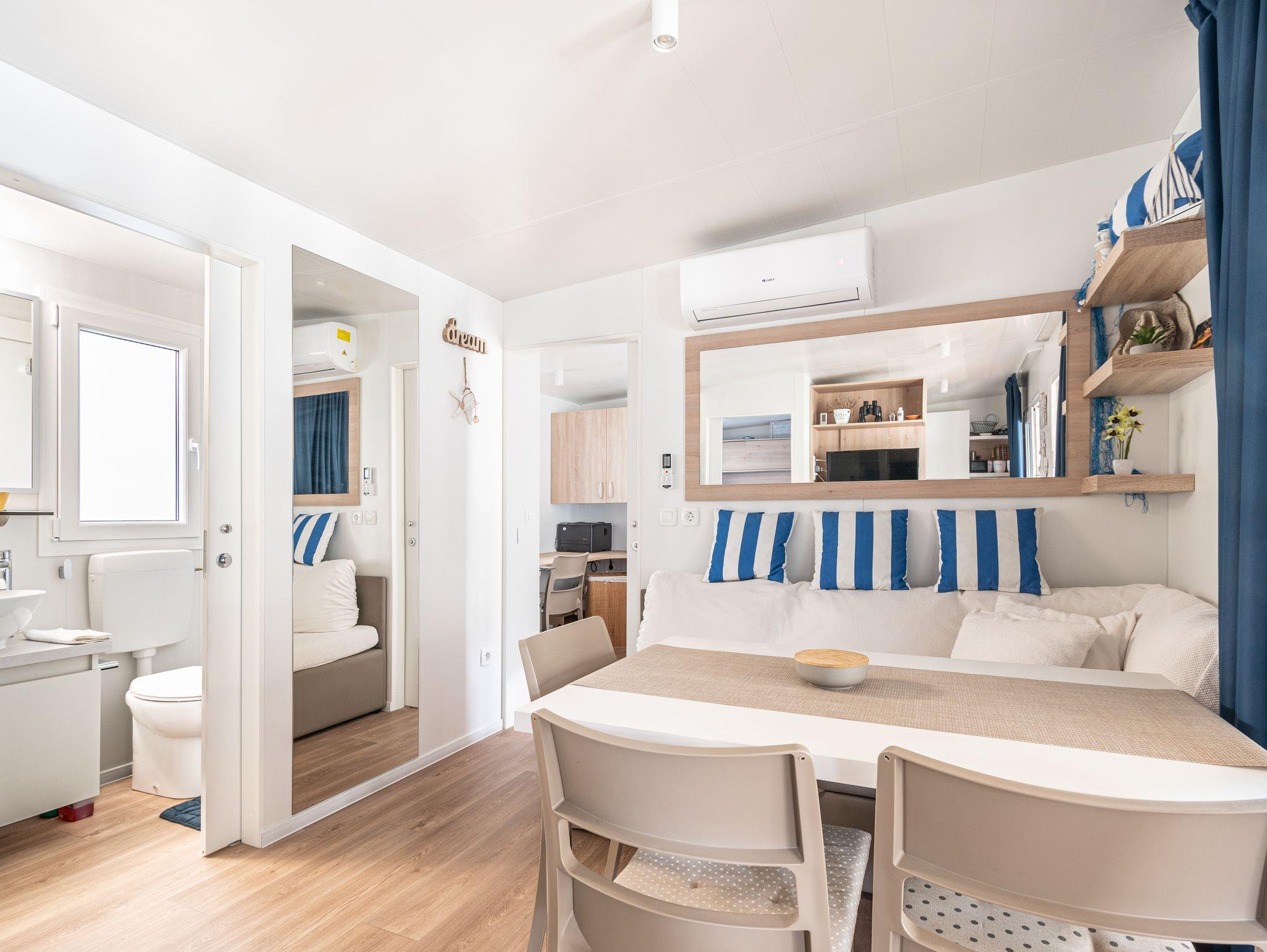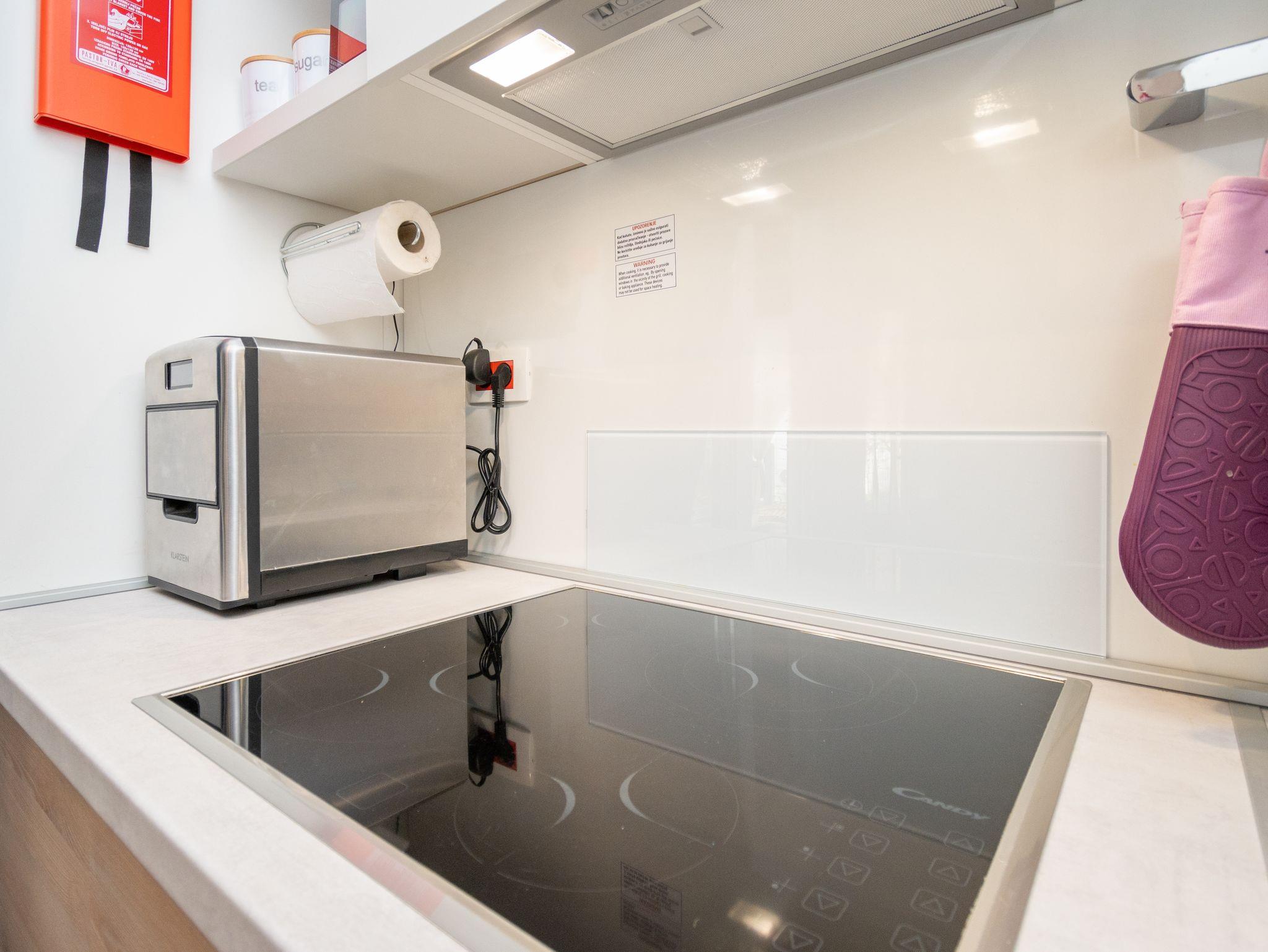 Ferienwohnung bietet Platz für 6 Gäste. Die Betten sind in Schlafzimmern, die es 2 gibt, und in Esszimmer, innerhalb einer Gesamtfläche von 45m2, angeordnet. Die Gäste haben eine eigene Terrasse zur Verfügung, auf der sie in warmen Sommernächten genießen können. Für vollen Genuss und Entspannung gibt es einen privaten Grill für Gäste dieser Unterkunft. IM PREIS INBEGRIFFEN: Endreinigung, Klimatisierung, Parkplatz, Internet, Föhn. VERBINDLICHE ZUSÄTZLICHE KOSTEN: Kurtaxe (Erwachsene 0,93 € - 1,50 € Nacht/Person, Kinderermäßigung 12 - 17 Jahre). UNVERBINDLICHE ZUSÄTZLICHE KOSTEN: Wäschewaschen (5,00 € Waschen), Bootsanlegeplatz (10,00 € pro Nacht). Die Verfügbarkeit zusätzlicher Dienstleistungen in Ihrem reservierten Termin und die Preise derselben (falls nicht aufgeführt) müssen im Voraus überprüft werden. Zusätzliche Dienstleistungen die in der Zahlungsaufforderung nicht aufgeführt sind werden direkt beim Vermieter bezahlt, angenommen der Gast nutzt auch diese. Ermäßigung auf den Grundpreis: Gratistag 14=13 (bei einem Aufenthalt von 14 Tagen oder mehr erhalten Sie einen Gratistag für den Aufenthalt bis 31.12.26).