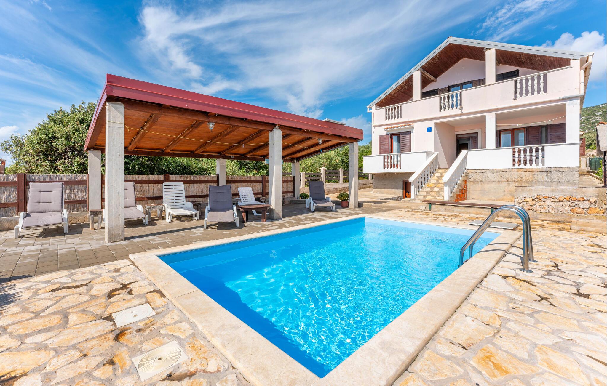 Dette hyggelige feriehus på øen Pasman byder jer velkommen lige ved havet. Med en fantastisk beliggenhed tilbyder dette feriehus jer det perfekte tilflugtssted lige ved stranden. Den fredelige beliggenhed, tilgængelig via en grusvej, sikrer fred og privatliv. Det klassiske interiør er smagfuldt indrettet og lægger op til at slappe af. Her finder I alt, hvad I skal bruge til jeres ubekymrede ferie. Et højdepunkt er poolen med havudsigt, optimal til at starte eller afslutte dagen på en afslappende måde. Nyd hyggelige grillaftener på den store terrasse, som lægger op til at blive hængende og byder på udsigt til det glitrende vand. Dobropoljana på øen Pasman er det optimale sted for friluftsmennesker og dem, der søger fred og ro. Udover idylliske strande byder den lille, charmerende by også på vandre- og cykelstier, der fører gennem øens uberørte natur. Tag på bådture til nærliggende øer eller udforsk det krystalklare hav, mens I snorkler. Den afslappede atmosfære på stedet, kombineret med nærheden til de kulturelle højdepunkter i Dalmatien, herunder Zadar eller Biograd, gør jeres ferie til en uforglemmelig oplevelse.
