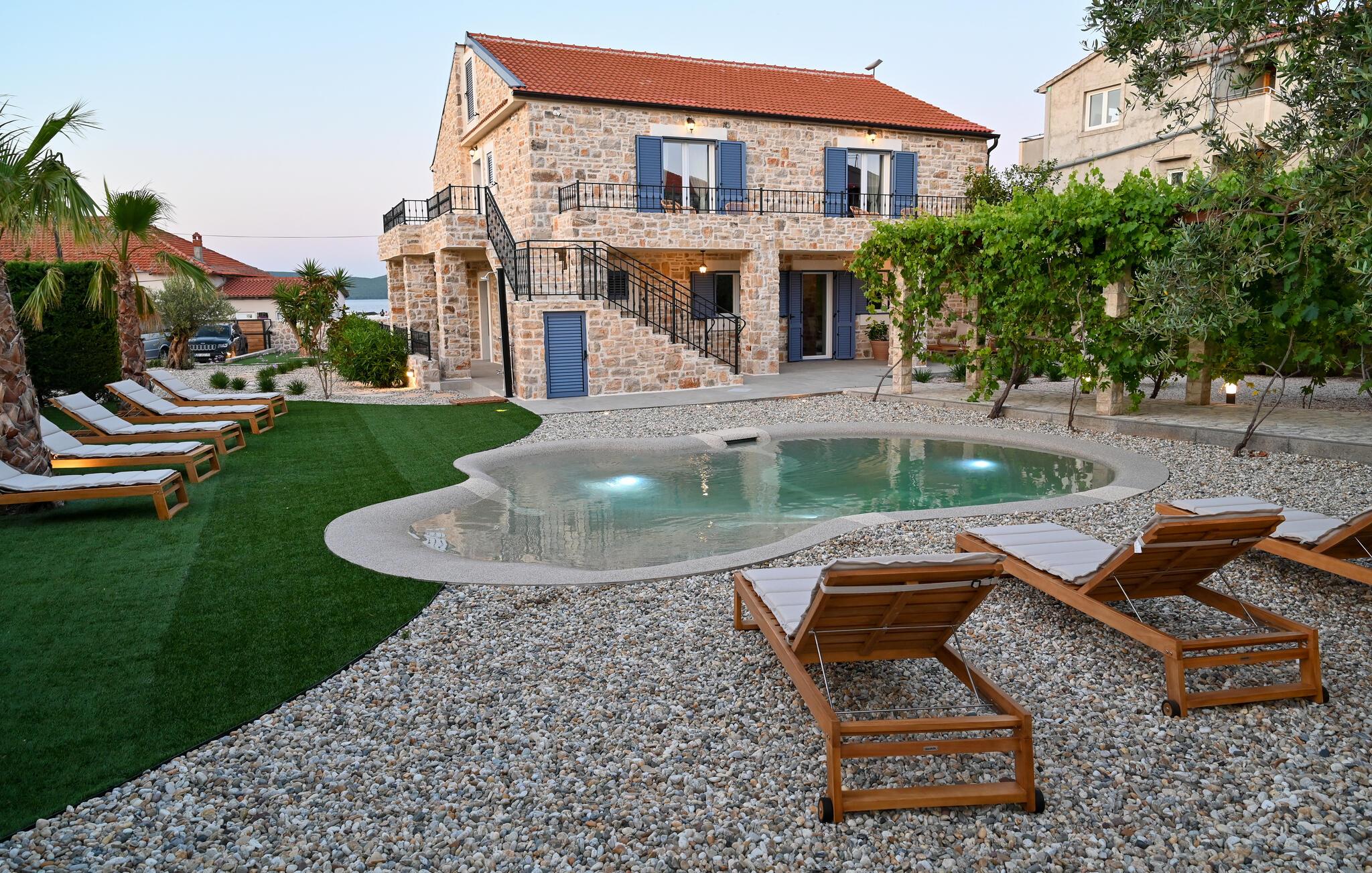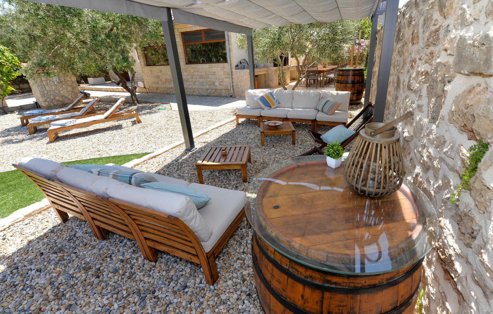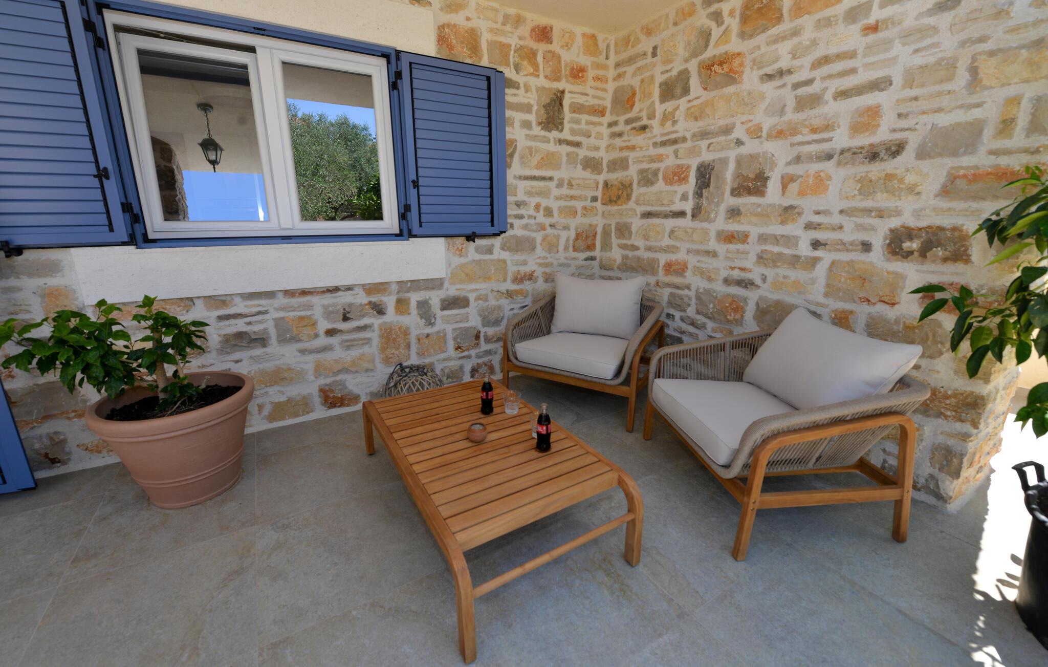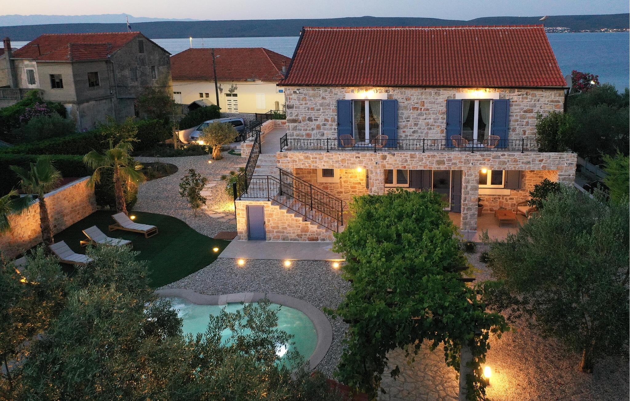 Dette charmerende stenhus ligger ikke kun i den første række af klitter, men imponerer også med sin hyggelige blanding af komfort og rustik charme. Tilbring hyggelige aftener med at streame en god serie eller tilberede lækre måltider i det rustikke køkken, mens I lytter til god musik. Spis med venner og familie og afslut dagen med en god kroatisk vin.