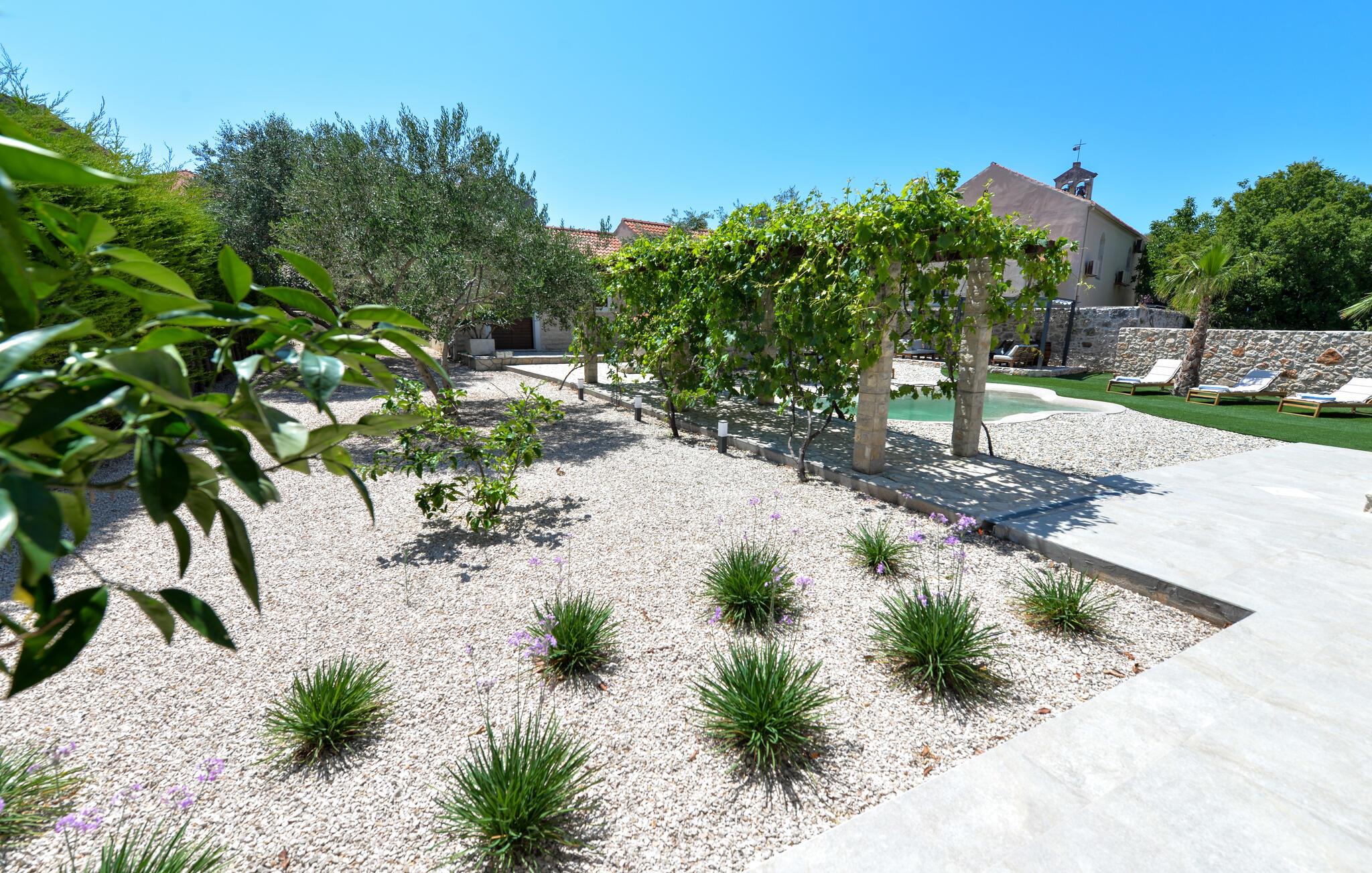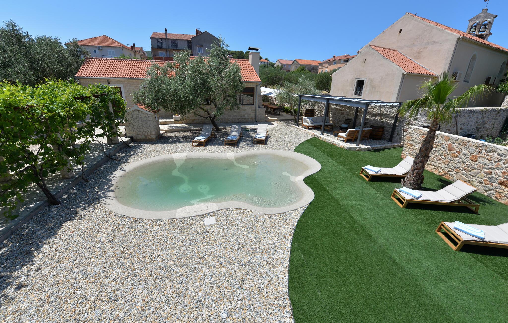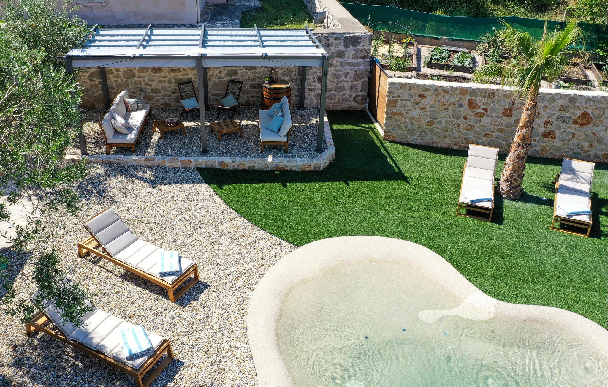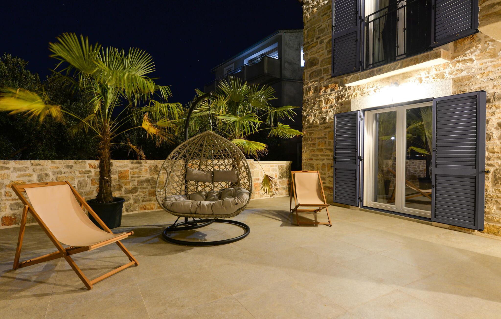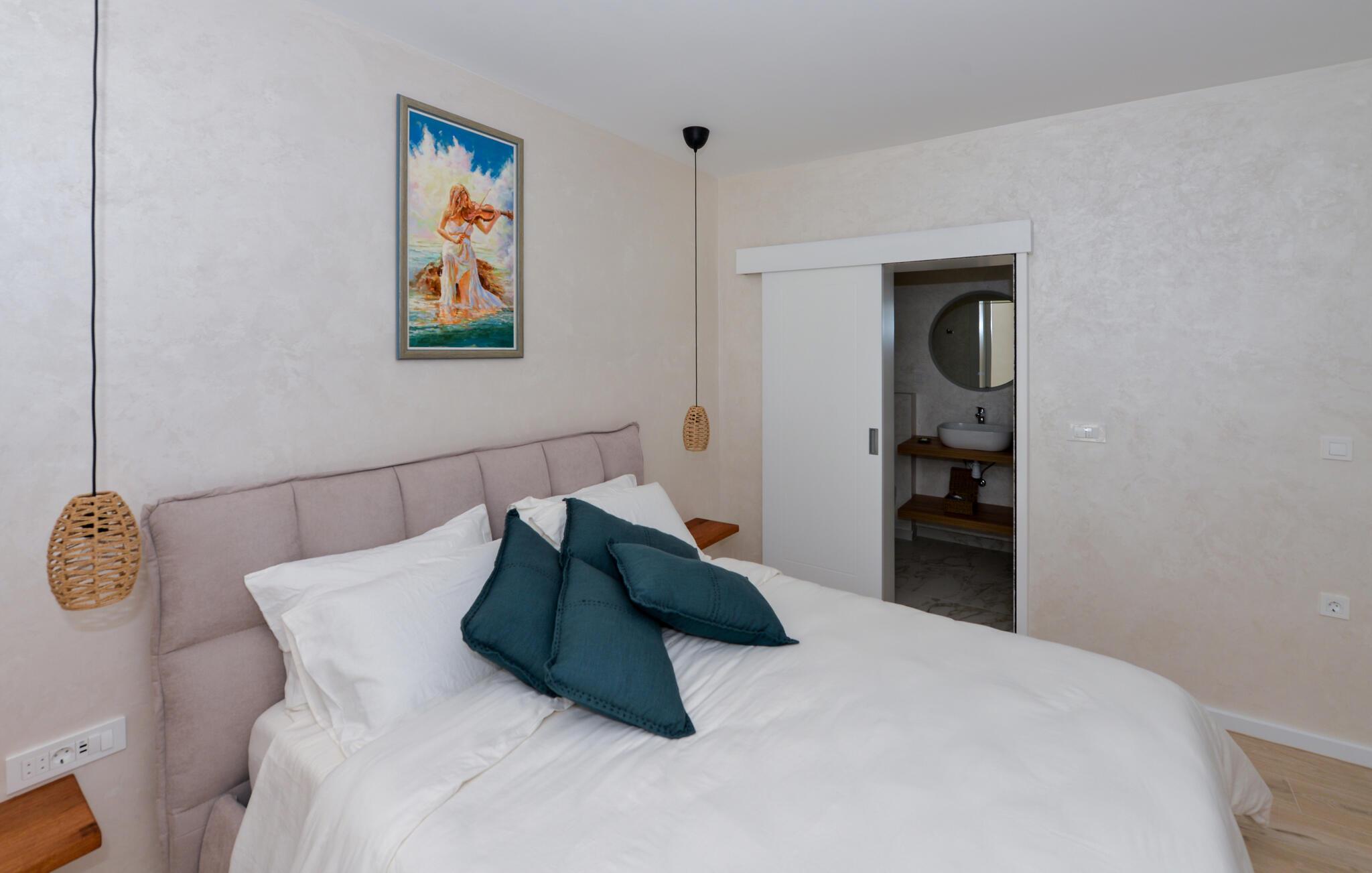 Dette charmerende stenhus ligger ikke kun i den første række af klitter, men imponerer også med sin hyggelige blanding af komfort og rustik charme. Tilbring hyggelige aftener med at streame en god serie eller tilberede lækre måltider i det rustikke køkken, mens I lytter til god musik. Spis med venner og familie og afslut dagen med en god kroatisk vin.