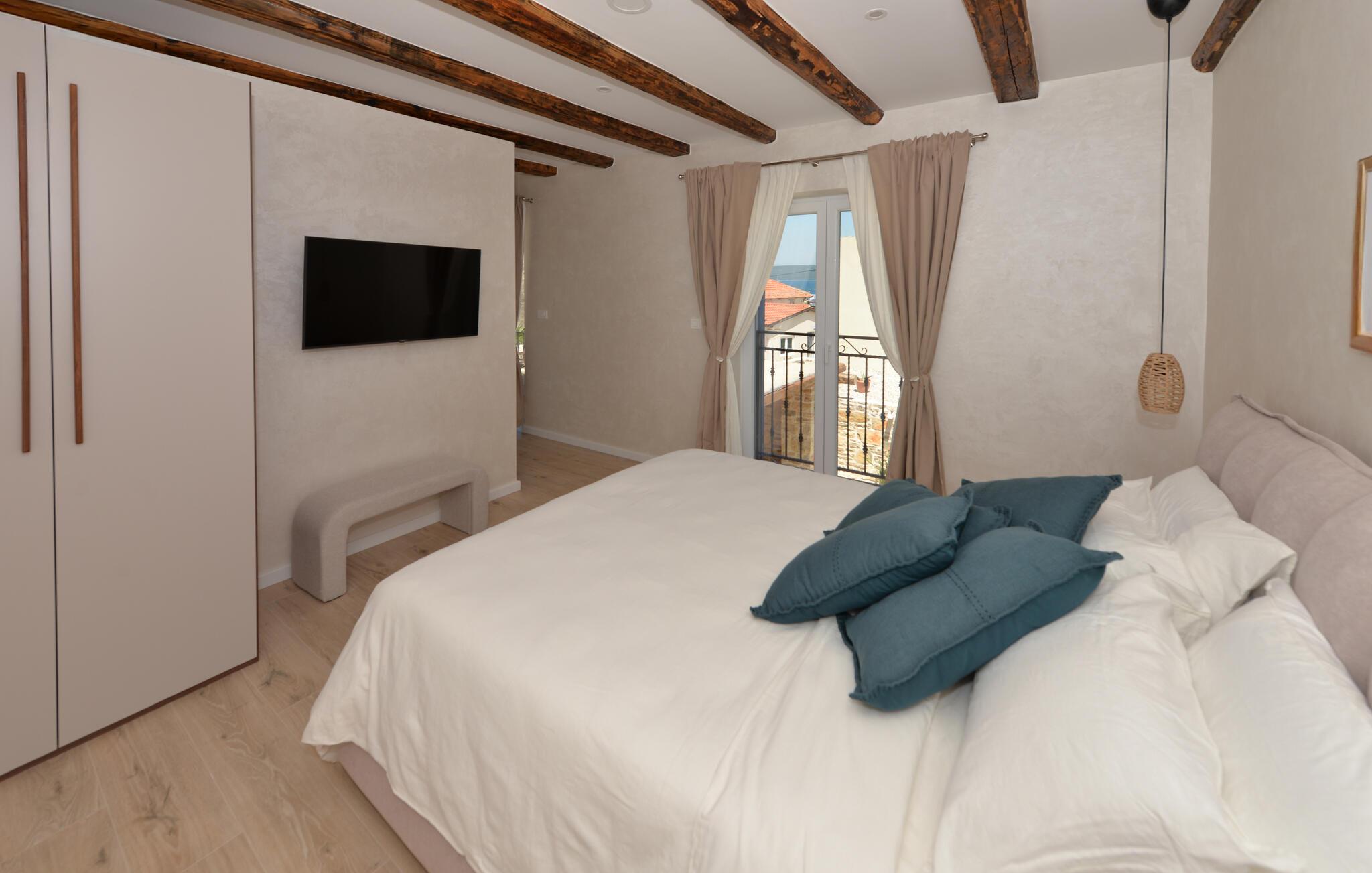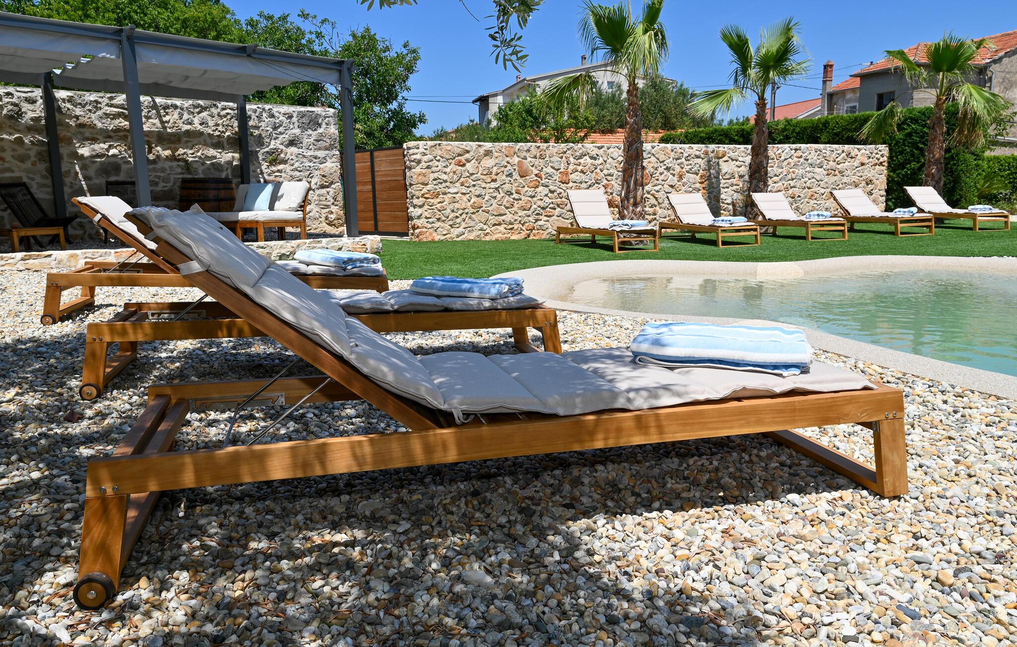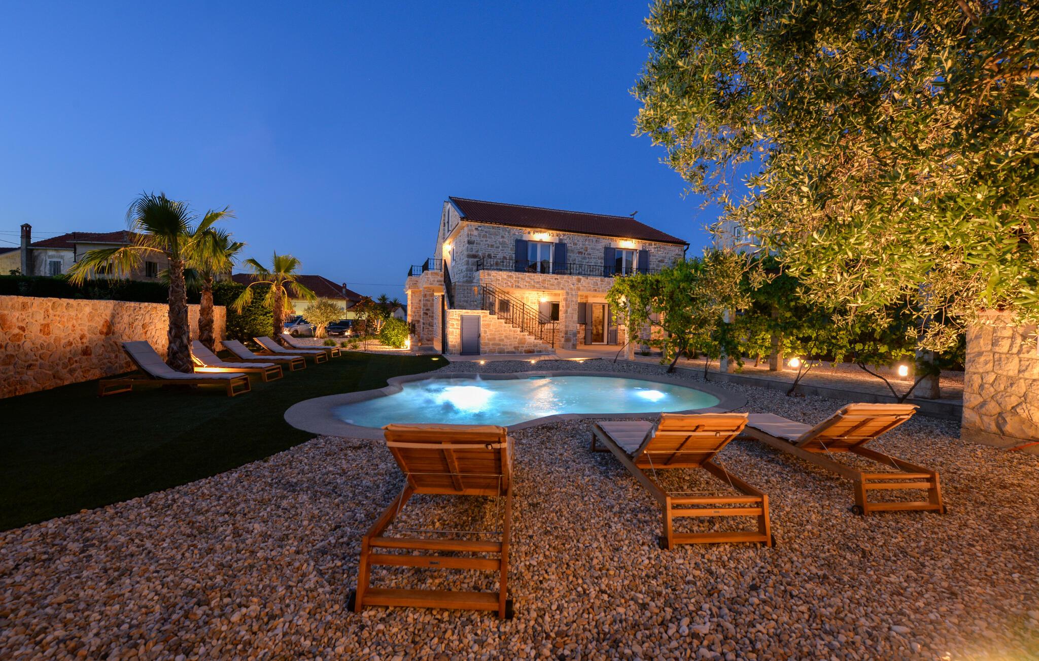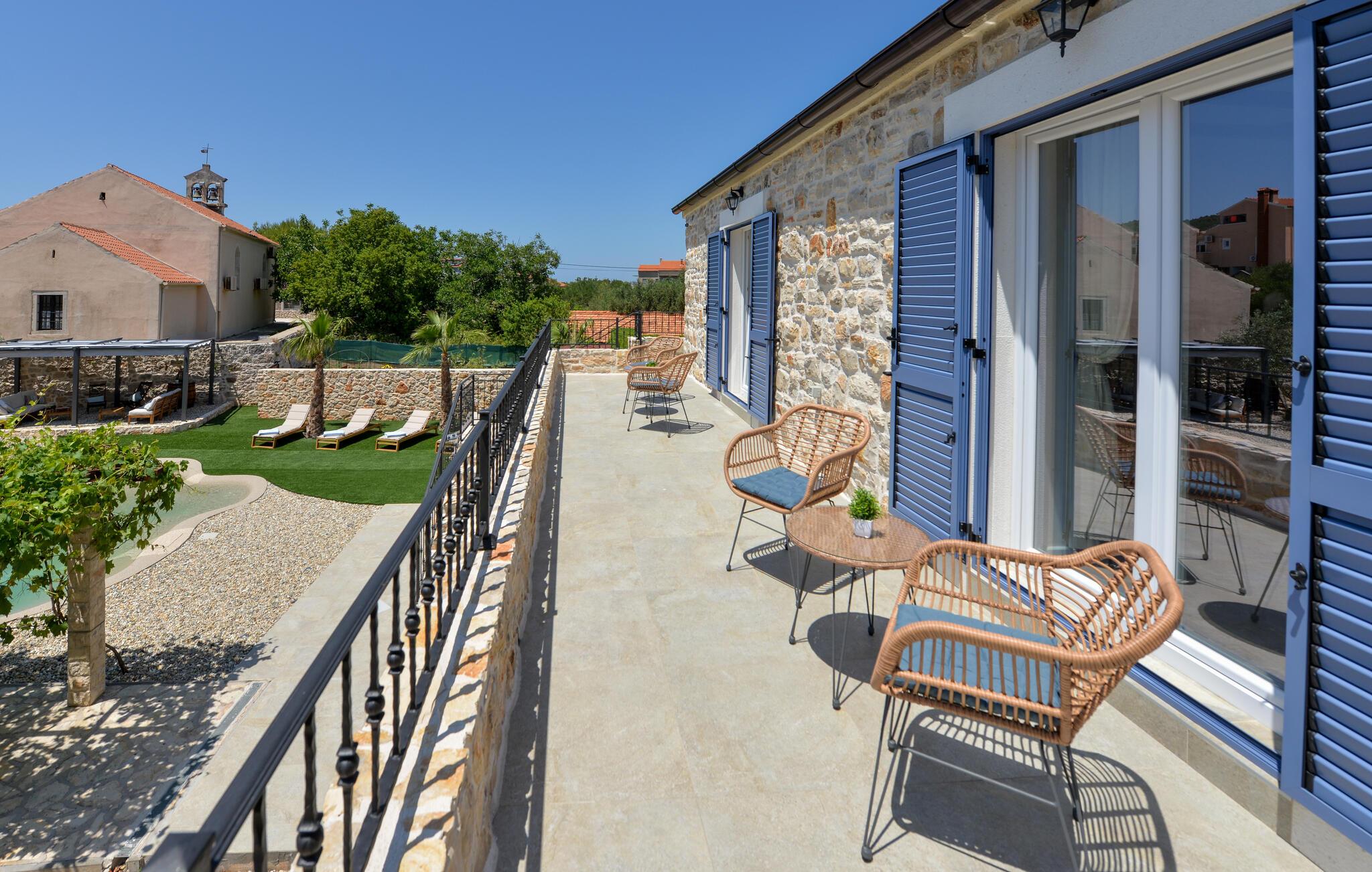 Dette charmerende stenhus ligger ikke kun i den første række af klitter, men imponerer også med sin hyggelige blanding af komfort og rustik charme. Tilbring hyggelige aftener med at streame en god serie eller tilberede lækre måltider i det rustikke køkken, mens I lytter til god musik. Spis med venner og familie og afslut dagen med en god kroatisk vin.