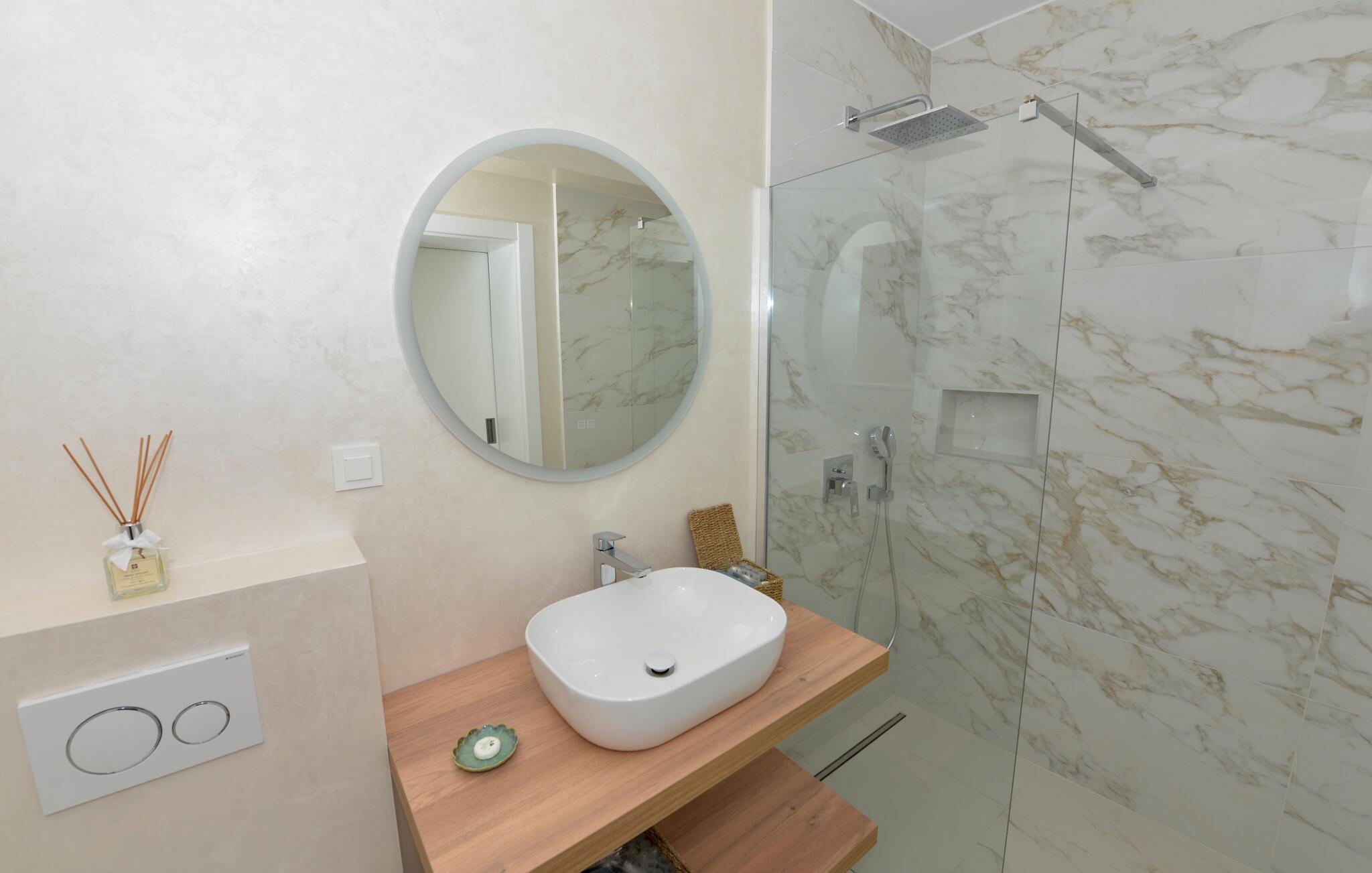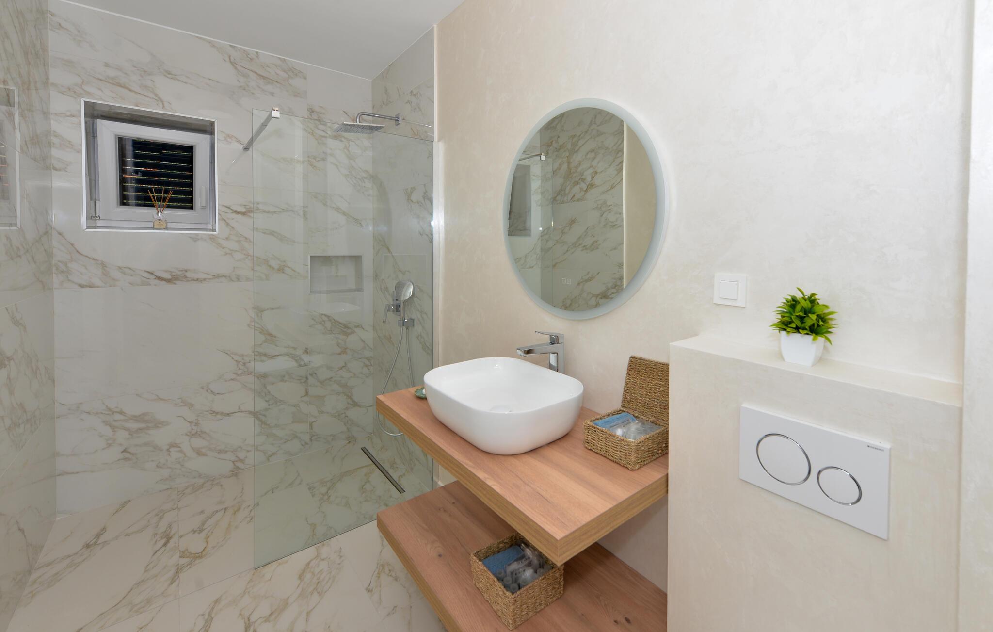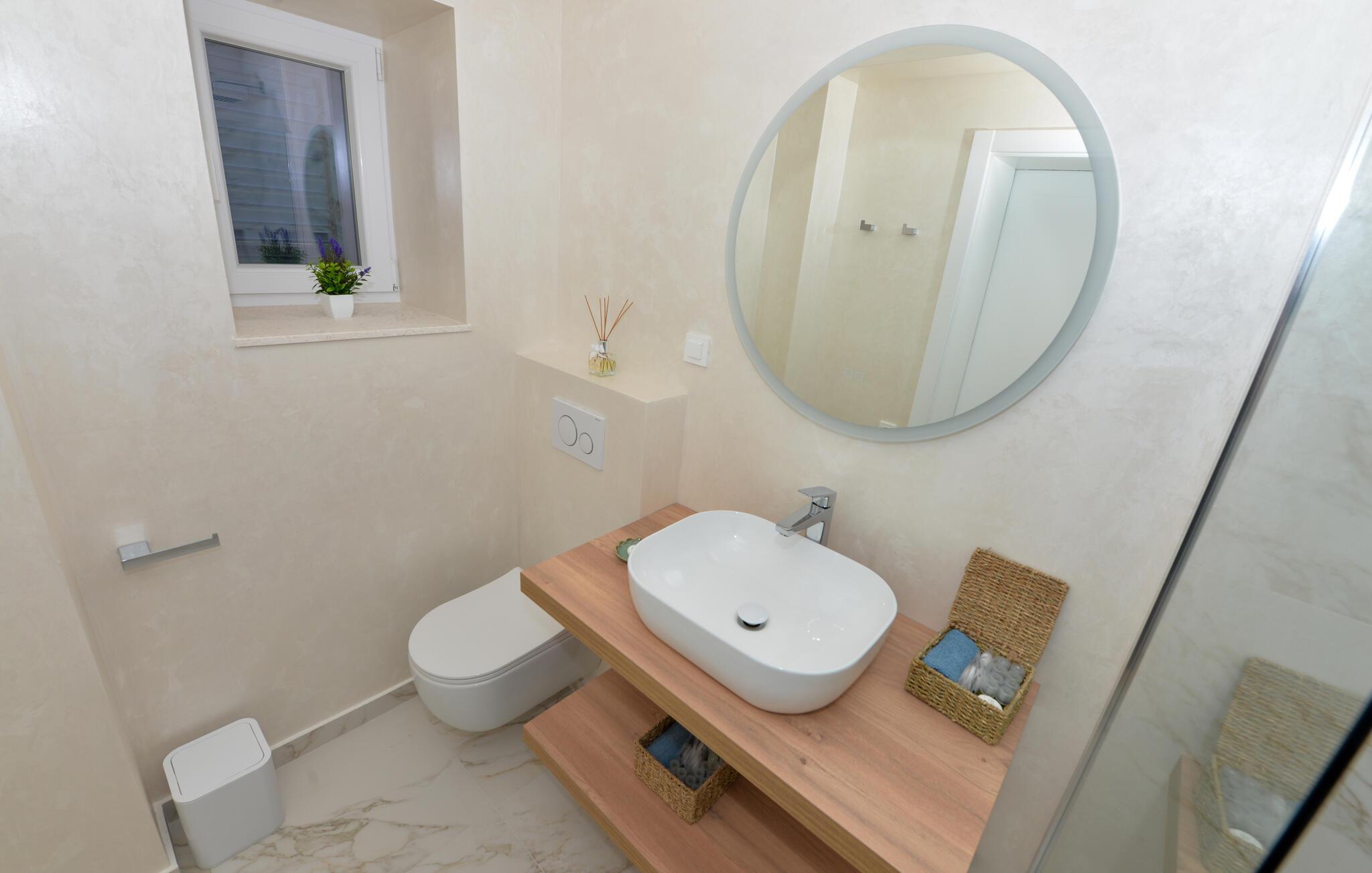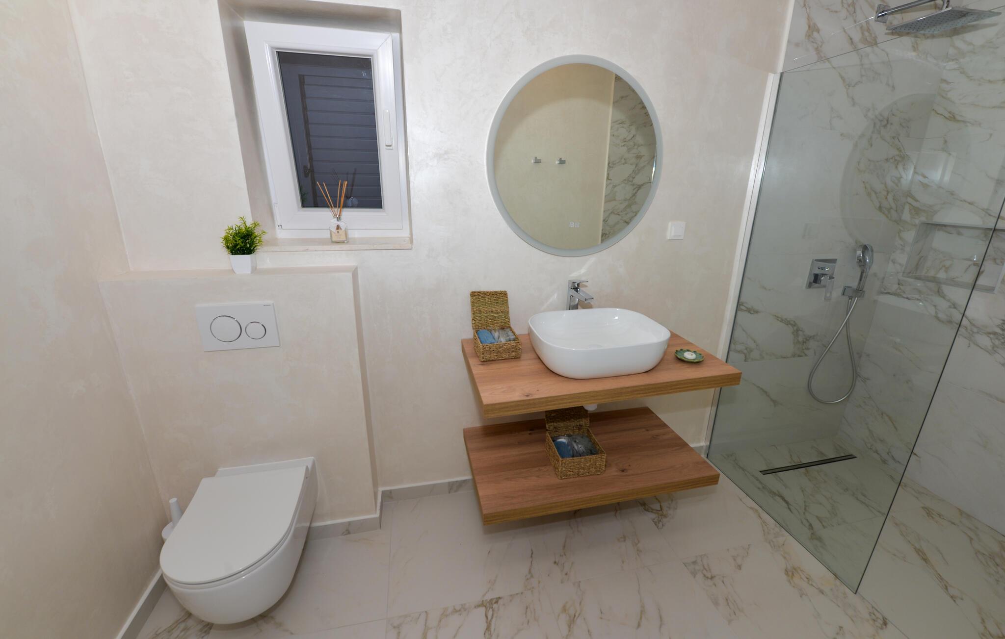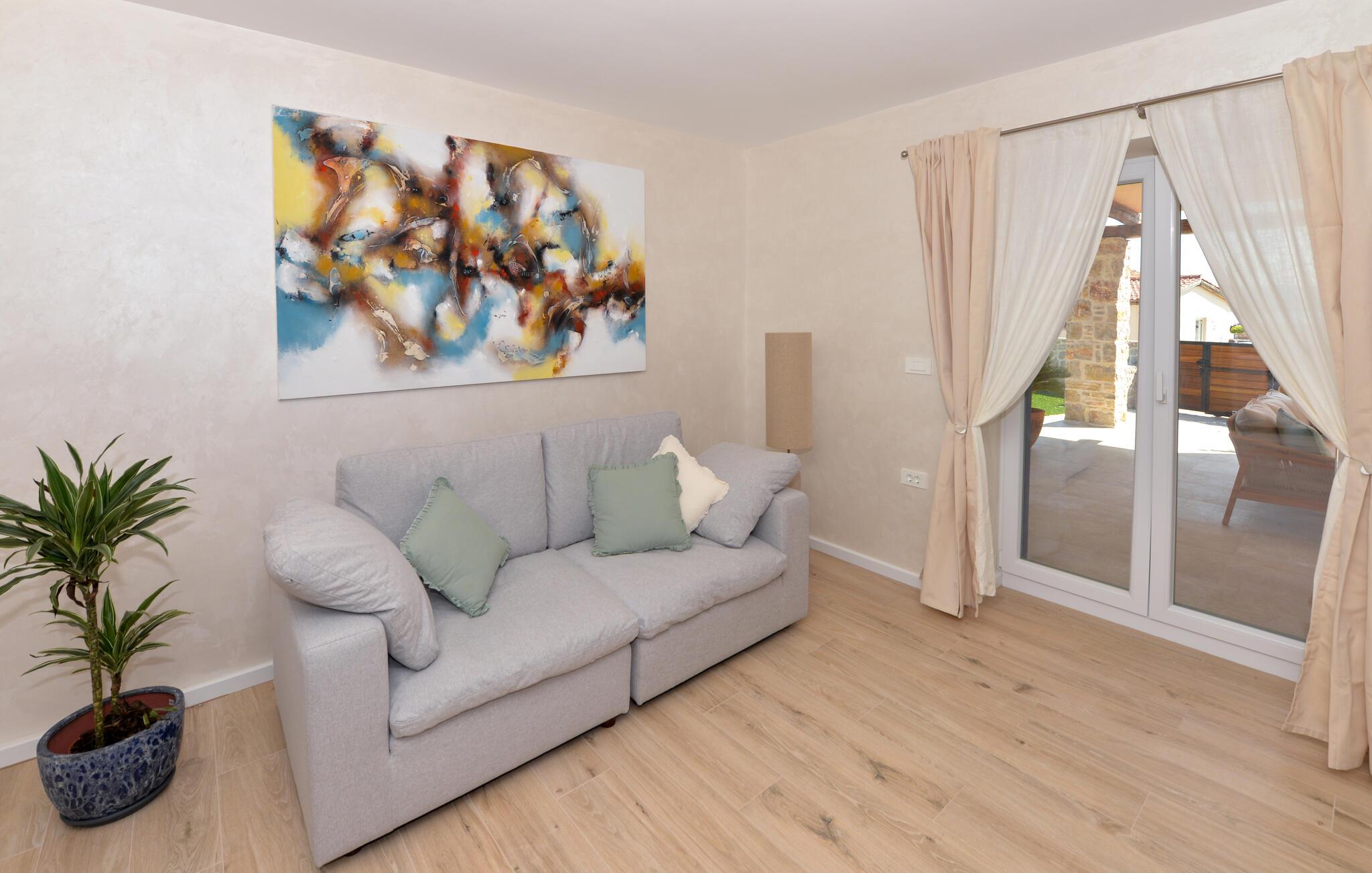 Dette charmerende stenhus ligger ikke kun i den første række af klitter, men imponerer også med sin hyggelige blanding af komfort og rustik charme. Tilbring hyggelige aftener med at streame en god serie eller tilberede lækre måltider i det rustikke køkken, mens I lytter til god musik. Spis med venner og familie og afslut dagen med en god kroatisk vin.