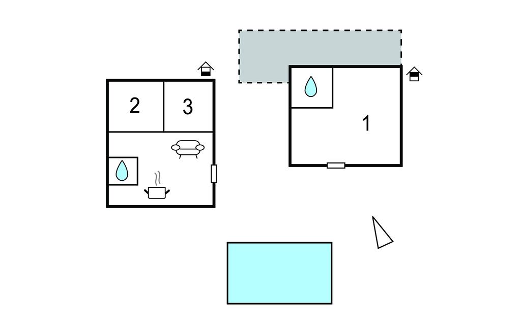 Opholdsstue/køkken 27m2 - 2 Sovepladser. (Sofa, madras eller lignende).