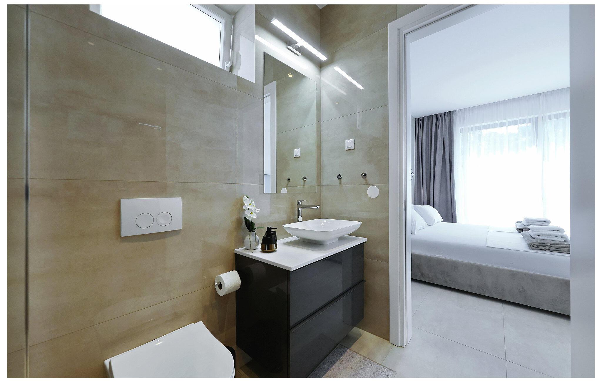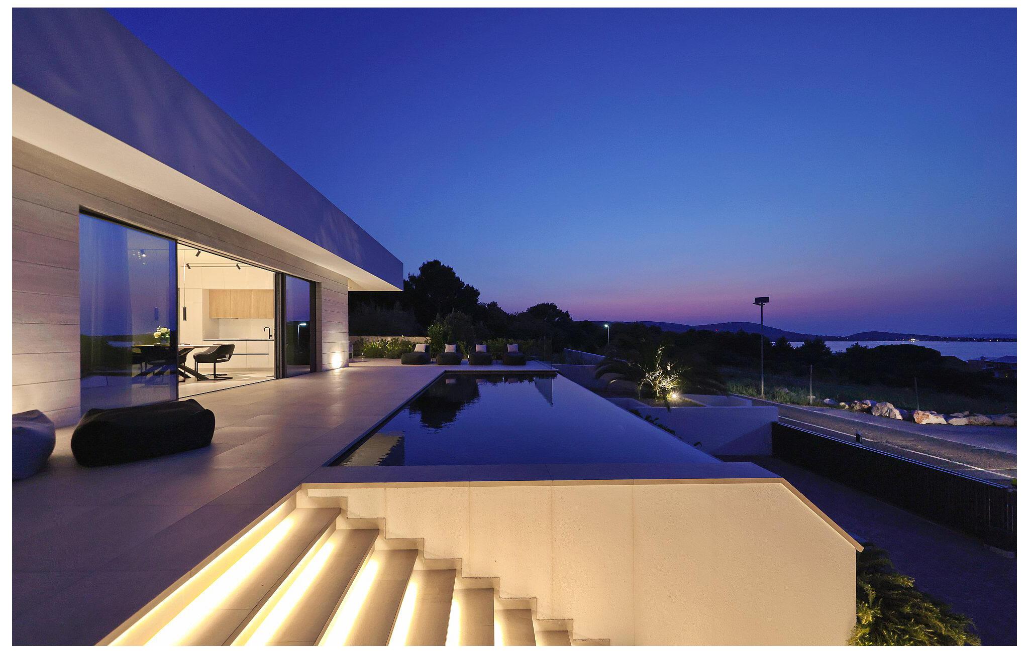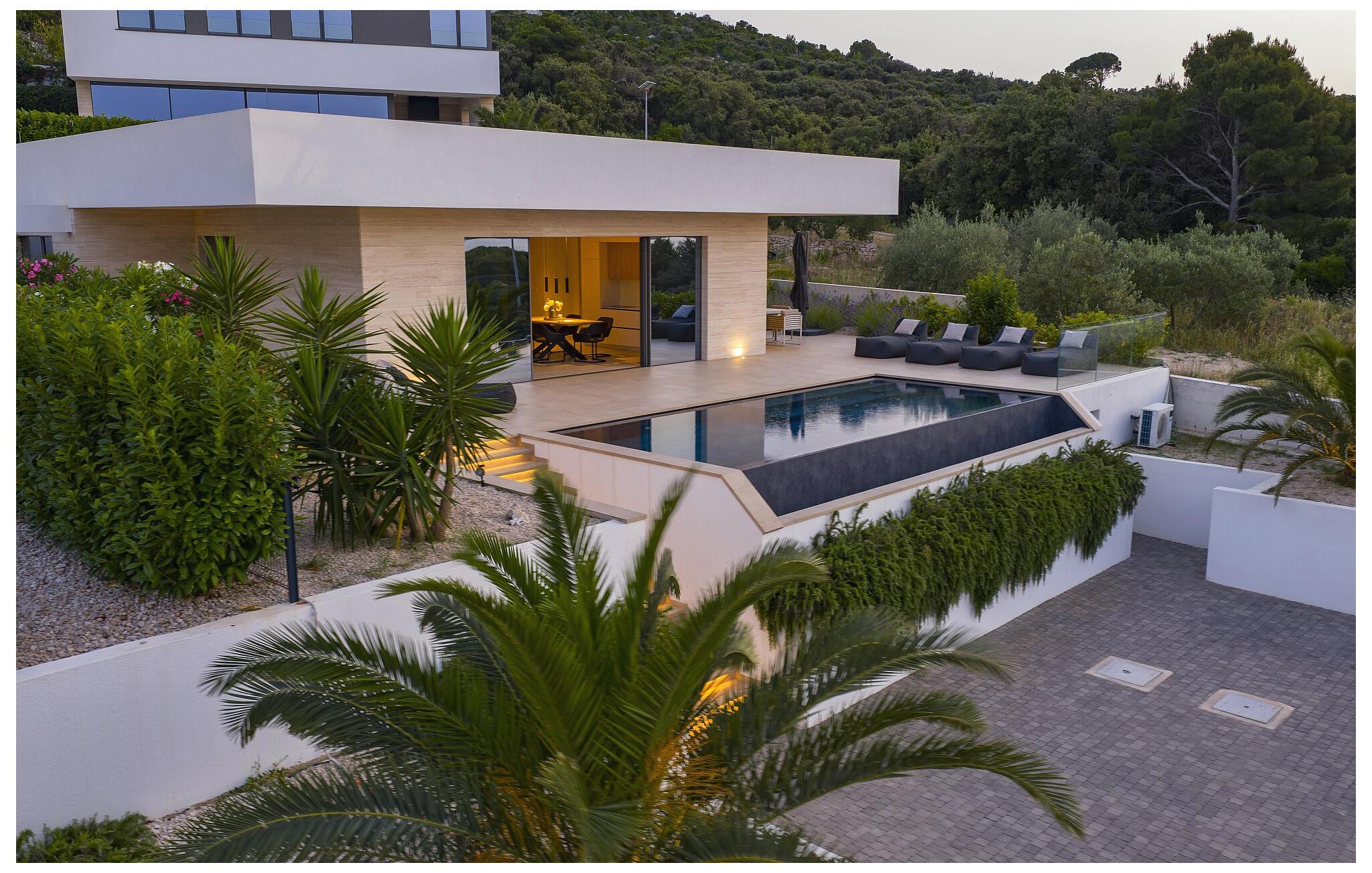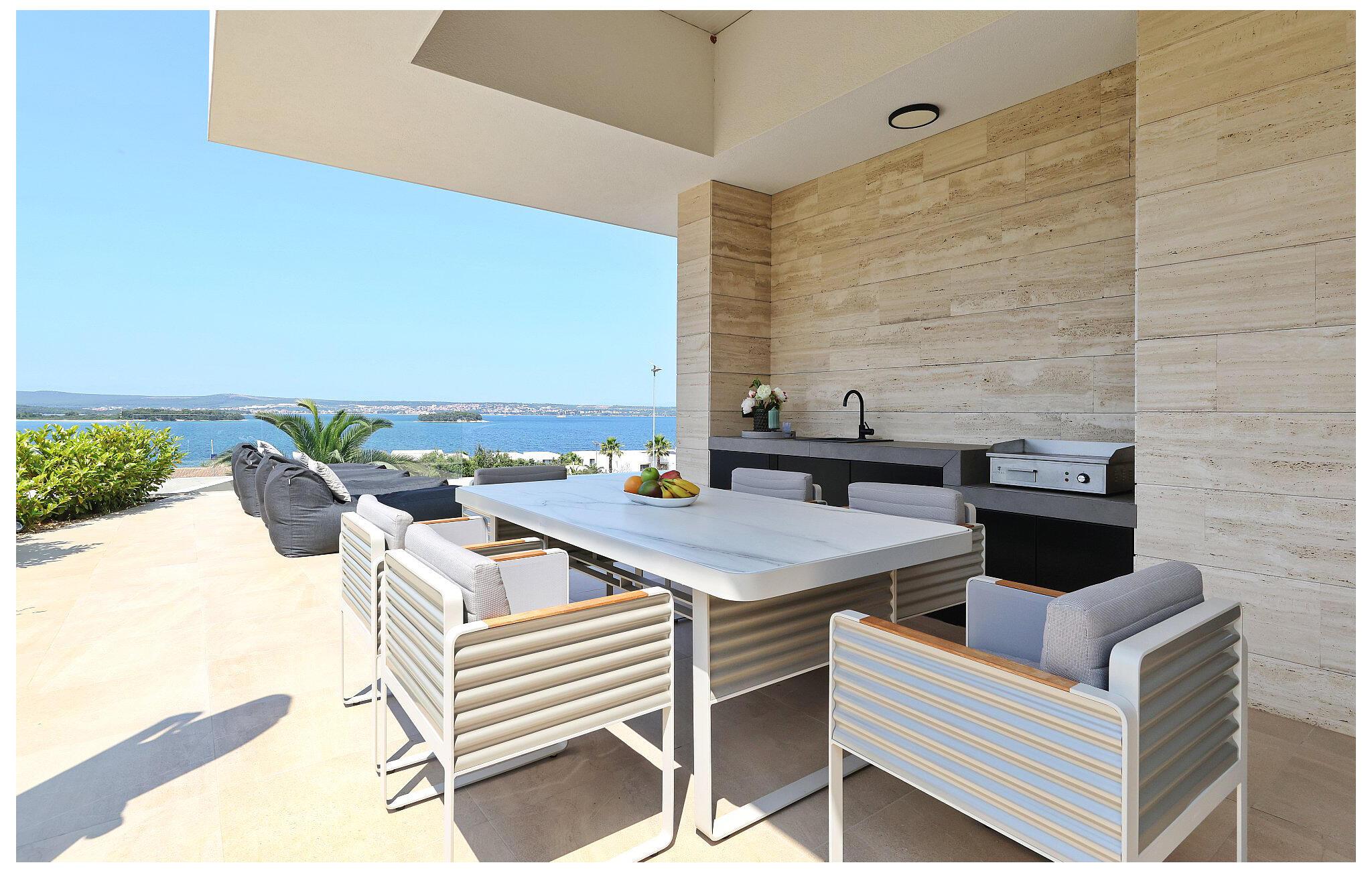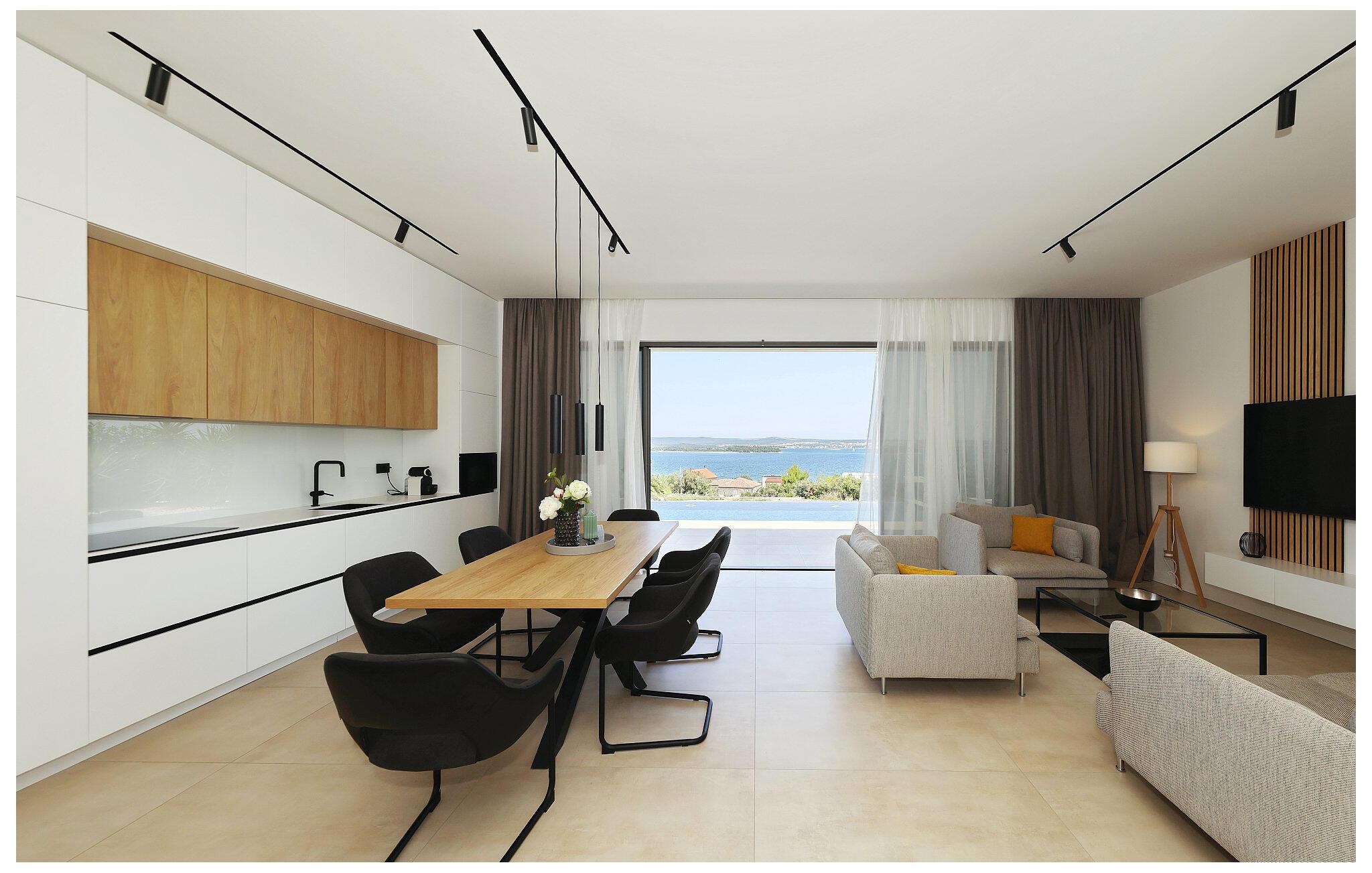 På Pašman, en af de mest uberørte øer i Dalmatien, venter dette moderne feriehus på jer – et sted, hvor man automatisk sænker skuldrene. Rene linjer, varme materialer og lyse rum skaber en atmosfære, hvor I kan slappe af. Synk ned i den komfortable sofa eller tryl lækre måltider frem sammen i det stilfuldt udstyrede køkken, akkompagneret af god musik eller den blide mumlen af fjerne lyde.