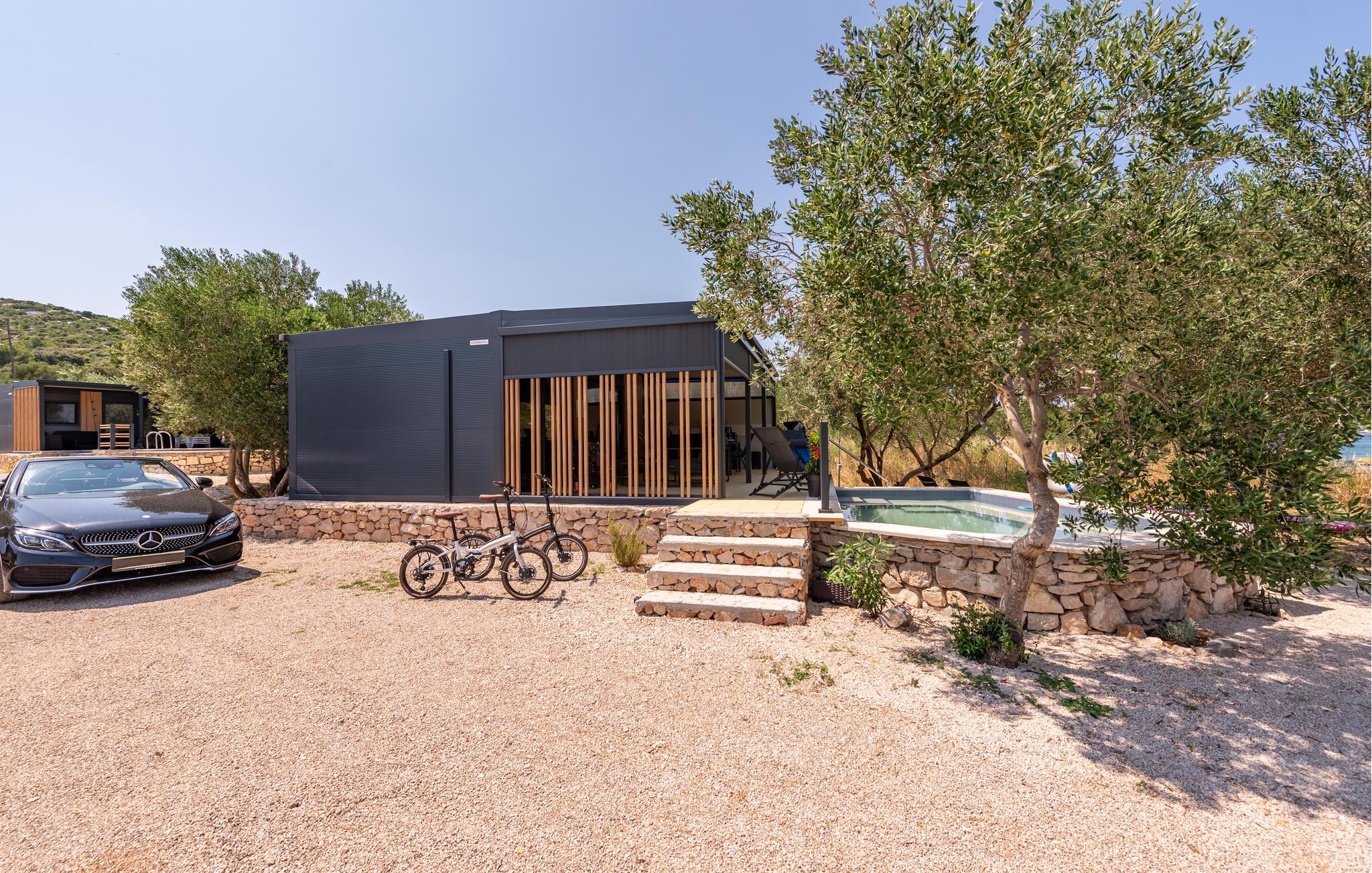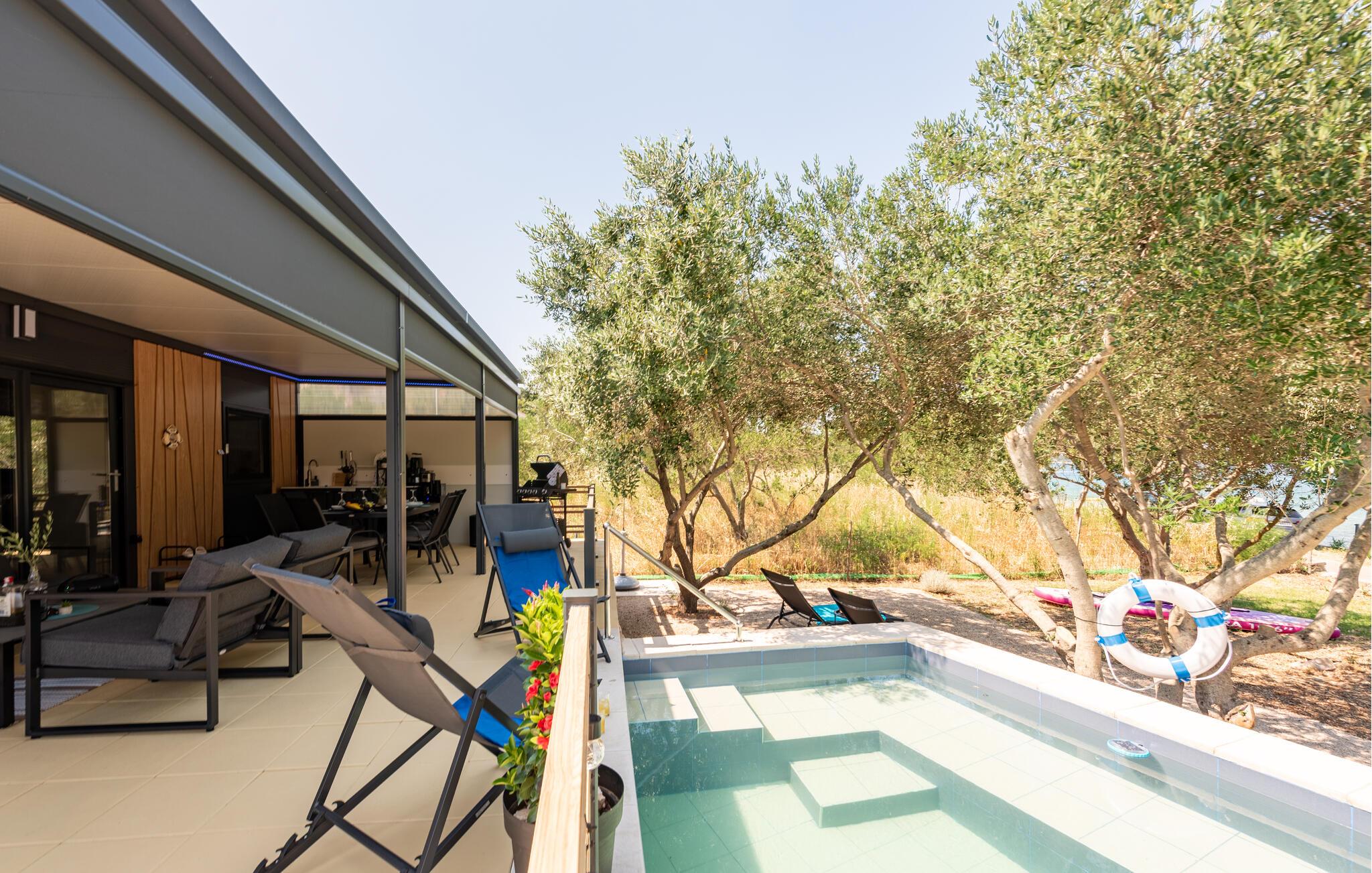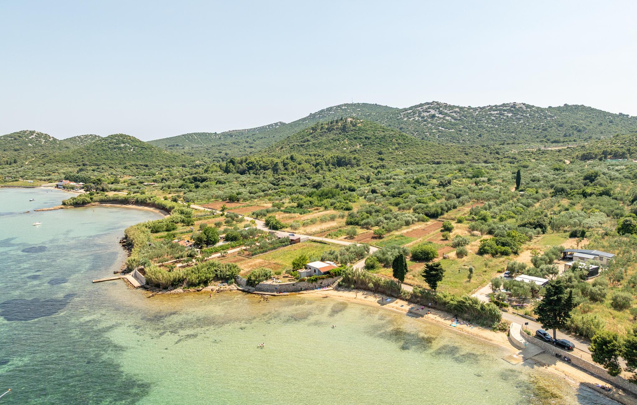 Oplev uforglemmelige dage i dette komfortable feriehus med pool på stranden. Dette lille, charmerende tilflugtssted byder jer velkommen til en sensationel beliggenhed direkte på sandstranden og tilbyder et idyllisk tilflugtssted for en afslappende og aktiv ferie med familien eller vennerne. Fremtryl middelhavsretter i det moderne køkken, nyd en afslappende siesta, og slap af om aftenen på den behagelige sofa med en god film. I de dejlige sommermåneder kan I praktisk talt flytte jeres liv udenfor. Den idylliske ejendom, der er oversået med afsidesliggende skyggefulde steder, inkluderer et stort udendørskøkken og en elegant, lille pool. Brug jeres surfbræt og glid hen over det krystalklare vand lige uden for døren, eller udforsk det omkringliggende område på en cykeltur. Forkæl jer selv med en forfriskende drink i strandbaren, tag en bådtur til Kornati Nationalpark, eller besøg den historiske by Zadar med sit havorgel og den hellige sol. Fordyb jer i middelhavskulturen ved at besøge de lokale markeder, eller nyd friskfanget fisk på en af tavernaerne med havudsigt.