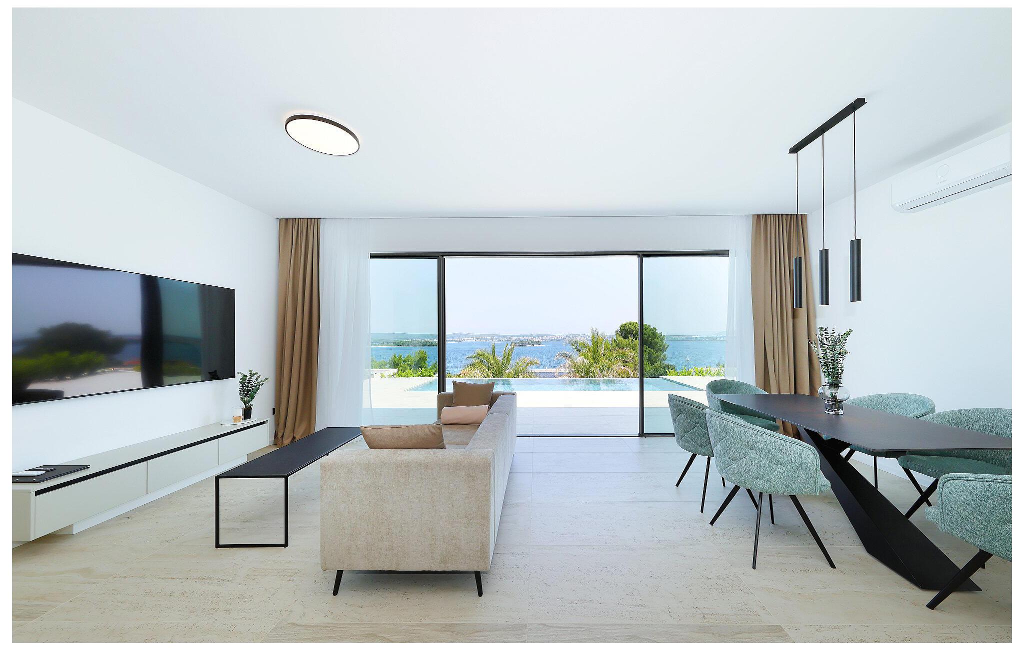 Nyd afslappede feriedage i dette moderne feriehus med pool og udsigt over Adriaterhavet.