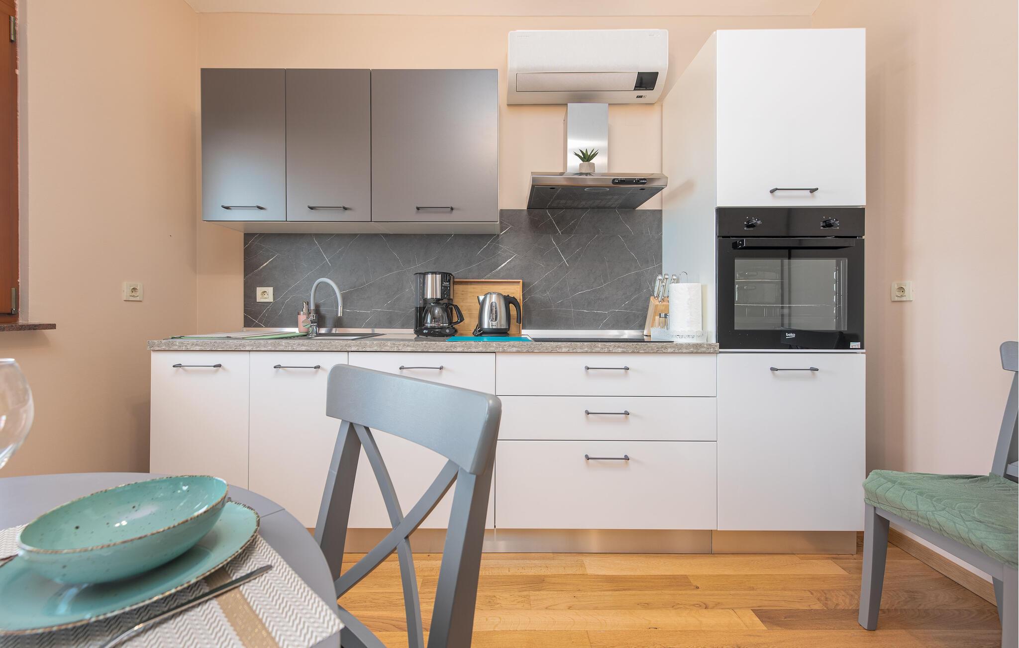 Velkommen til denne skønne lejlighed, der har en fremragende beliggenhed i første række til havet. Lejligheden er nydeligt indrettet med gode møbler, og med de moderne faciliteter får I her den perfekte base for en ferie med mange fine udflugter og strandture. Begynd dagen at tilberede en lækker morgenmad i køkkenet og tag måltidet med ud til terrassen, hvor I kan nyde roen, den friske luft og tabe kæben over udsigten. På terrassen har I også det bedste sted at lade en smuk sommeraften gå på hæld med et glas vin og et mageløst skue over havet, mens I lægger planer for de kommende dage.