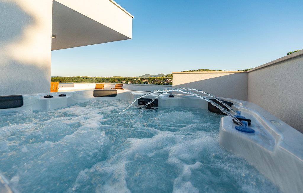 Men I kan også nyde tiden udendørs på flere niveauer. Glæd jer til den opvarmede pool, som lægger op til jer badesjov, slap af i spabadet eller solbad på tagterrassen.