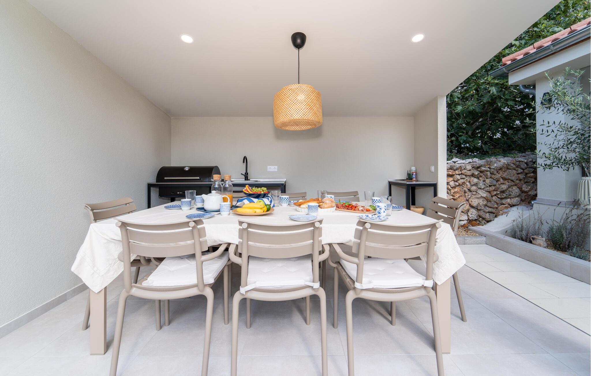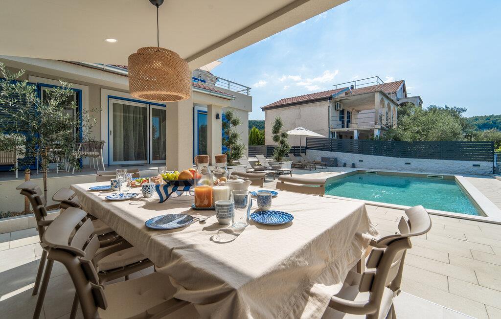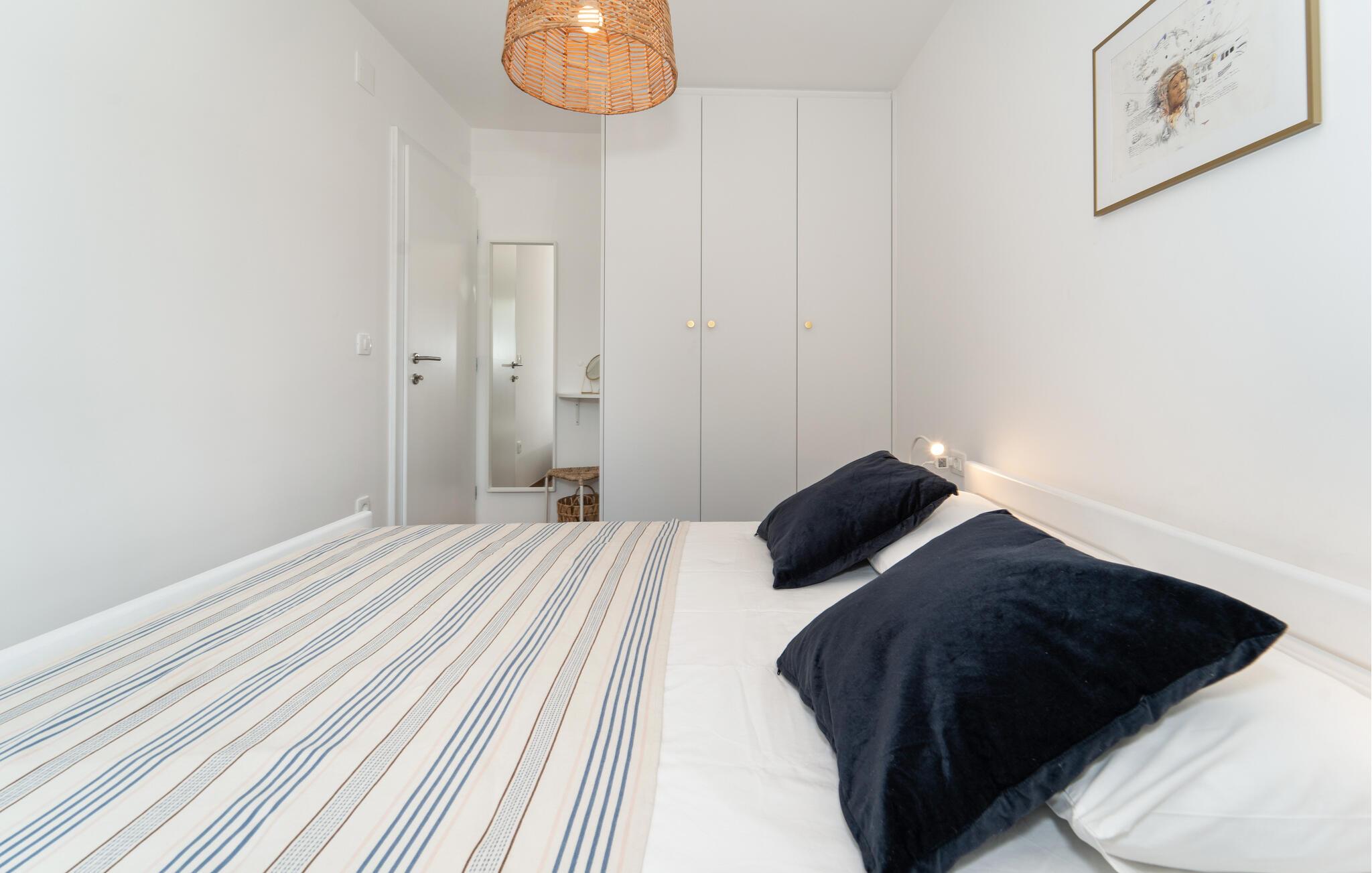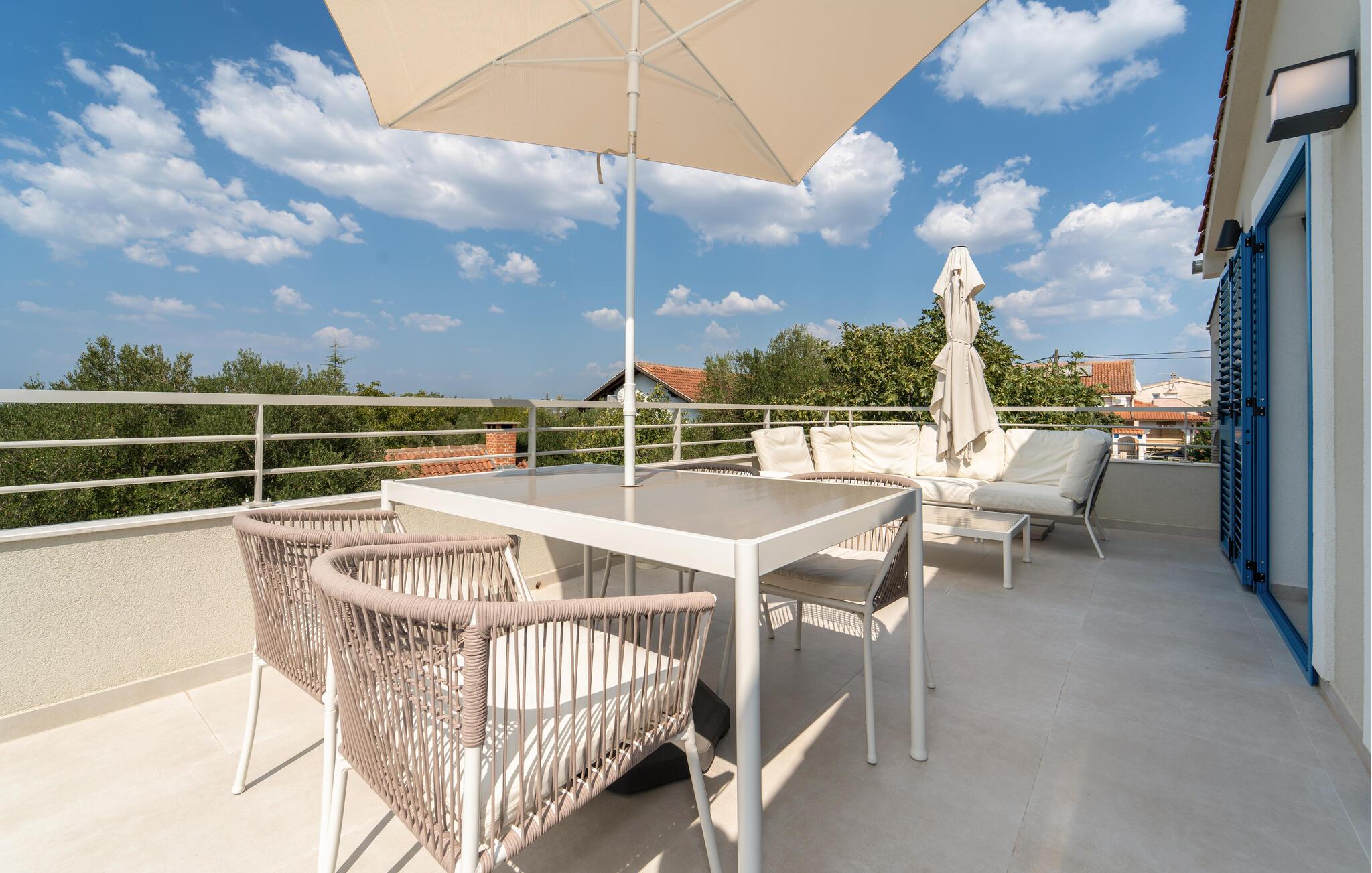 Velkommen til Zdrelac på den maleriske kroatiske ø Pasman. Dette charmerende feriehus nær havet består af to lejligheder. I stueetagen finder I en to-værelses lejlighed, mens der på første sal er en et-værelses lejlighed. Start jeres dag med en afslappet morgenmad, enten ved det hyggelige spisebord indenfor med udsigt over haven eller på den solrige terrasse. På balkonen på første sal kan I lade blikket vandre ud over landskabet og nyde havets glitrende horisont. Derefter kan I tage en forfriskende dukkert i den skønne pool.