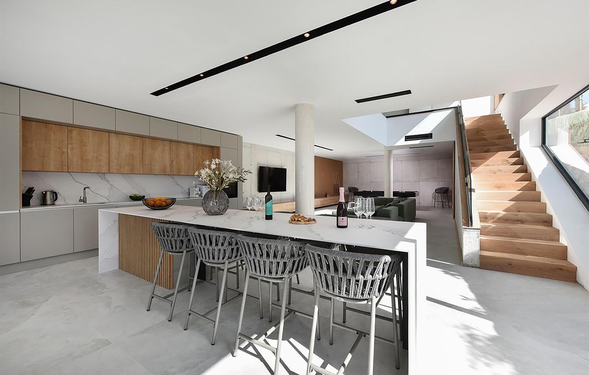 Dette feriehus byder på en elegant og moderne indretning, hvor minimalistisk æstetik smelter harmonisk sammen med luksuriøse detaljer. Tilbring afslappede stunder i den stilfulde opholdsstue, eller tilbered lækre retter i det lyse designerkøkken, mens I nyder den storslåede udsigt over havet. Udfordr hinanden til et slag billard, eller hold jer aktive i det veludstyrede fitnessrum.