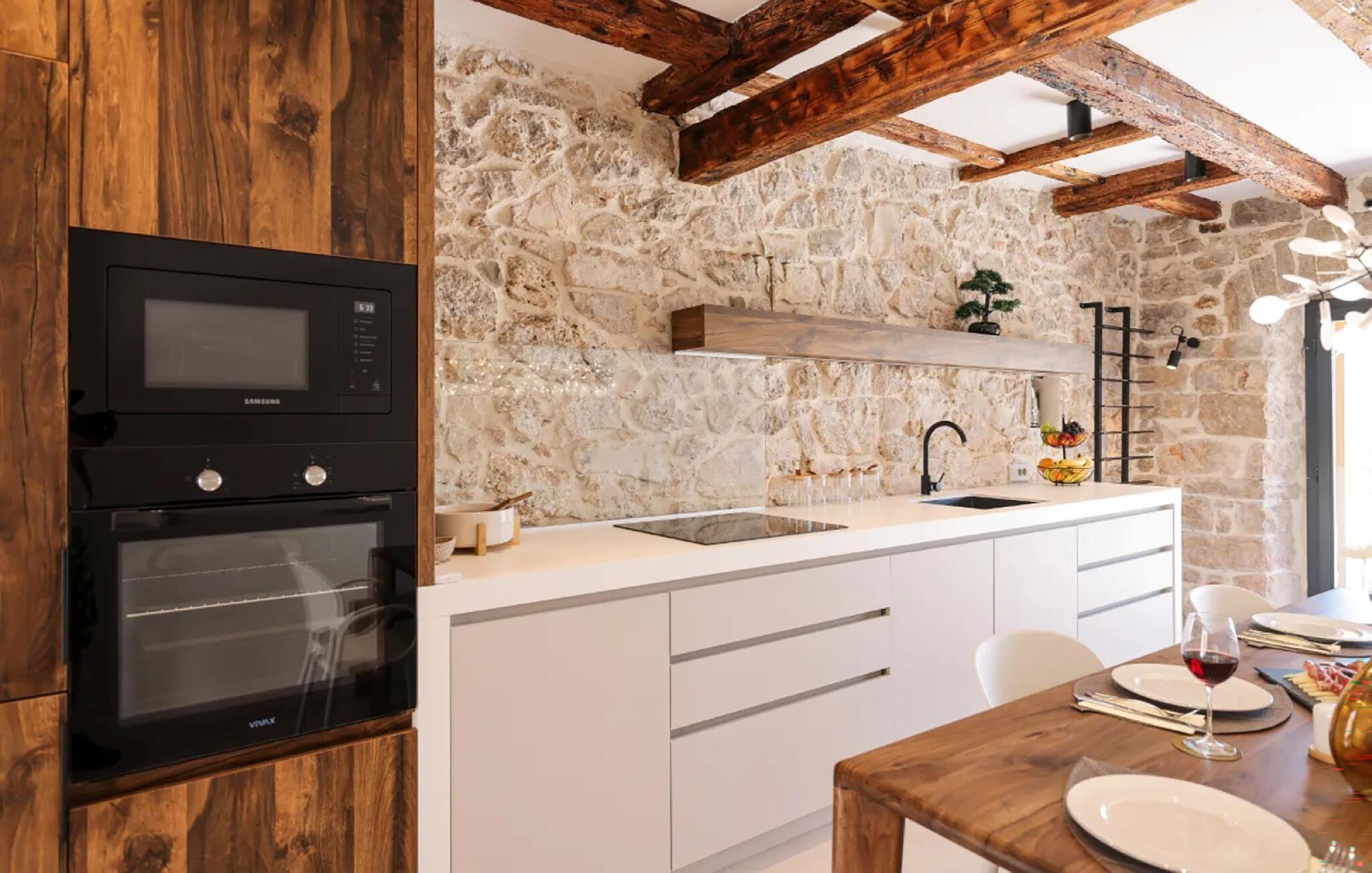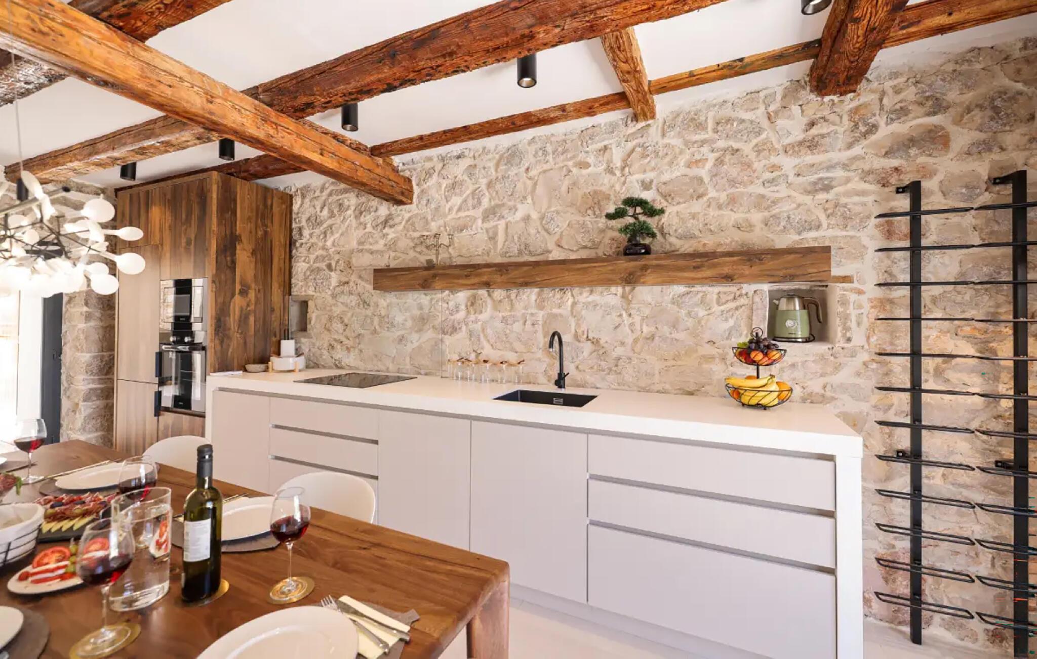 Med en sensationel beliggenhed, kun få skridt fra en plateaustrand, venter dette kærligt renoverede og smagfulde feriehus, klar til at forkæle jer med luksus og en hyggelig og komfortabel atmosfære. Glæd jer til at lave lækre måltider, samles til stilfulde middage under velholdte træbjælker og lade den behagelige havbrise strømme gennem værelserne.