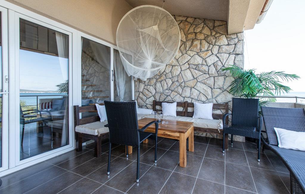 Med sin enestående beliggenhed ved havet adskiller denne ferielejlighed sig fra mængden. Fra haven har I direkte adgang til stenstranden - kun adskilt af en lille stenmur - hvor I kan tilbringe timevis med at bade og efterfølgende sole jer på liggestolene i haven i løbet af dagen. Når det bliver lidt for varmt, kan I tage en pause oppe i lejligheden med aircondition eller i skyggen på den overdækkede terrasse med havudsigt. Terrassen er det perfekte sted at nyde morgenkaffen og et godt glas lokal vin til en smuk solnedgang om aftenen. I haven er der placeret en grill tæt ved vandet, så I kan holde hyggelige grillaftener i de allerskønneste omgivelser.