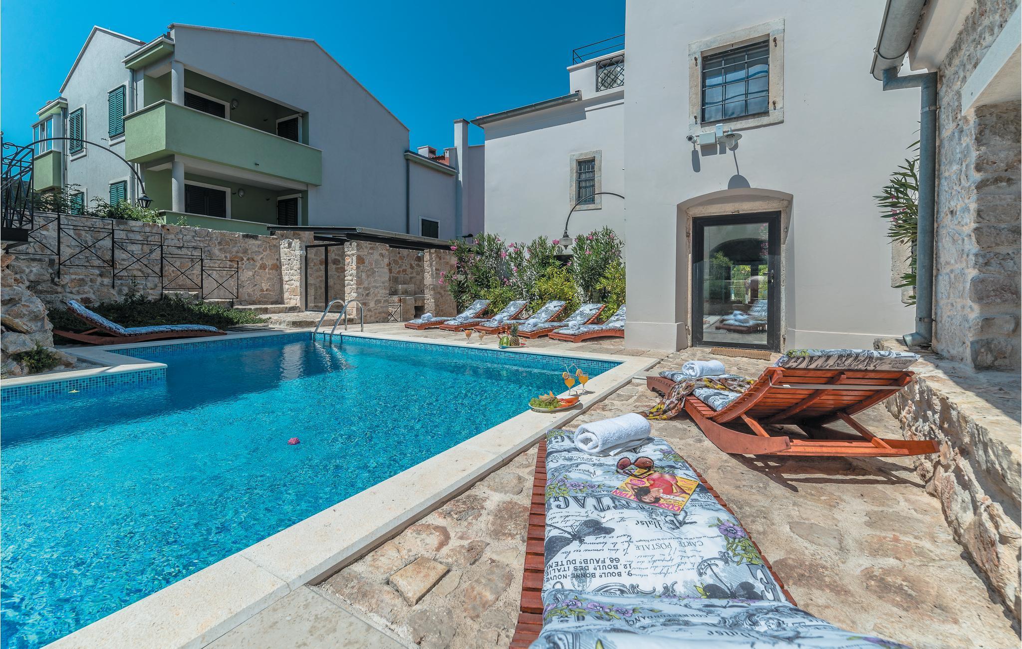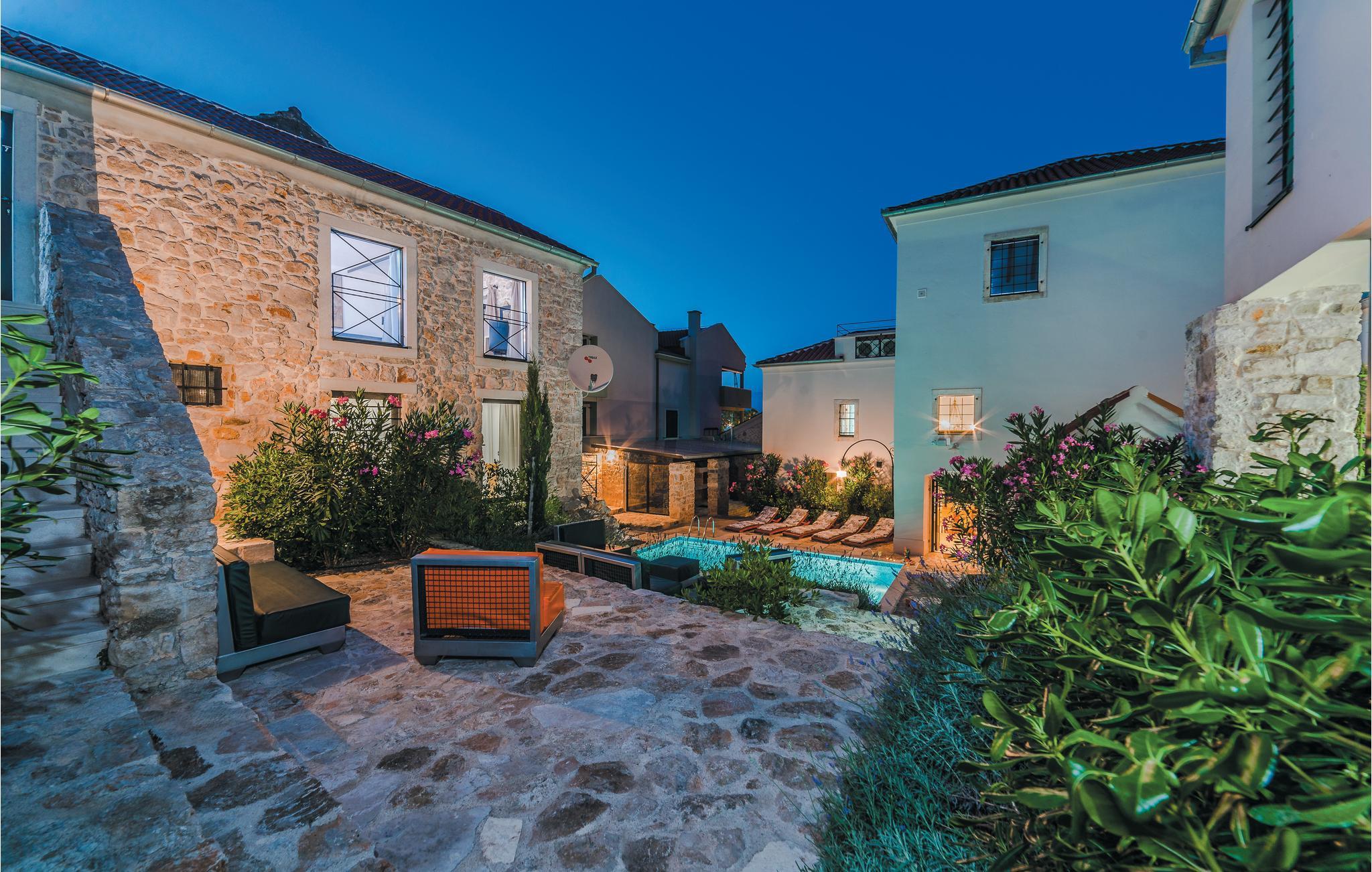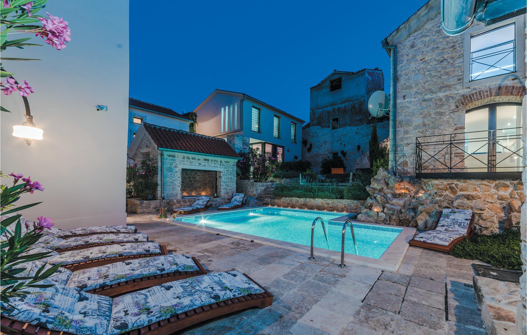 I den nordøstlige del af øen Pasman ligger byen Tkon, lige præcist overfor byen Biograd na Moru. Lige ved havet og de første strande venter dette feriehus med to sidebygninger i gården, der tilsammen udgør en dejlig enhed. I midten ligger pool, whirlpool, solsenge samt en overdækket havepavillon. Ferieboligen er som skabt til familier, venner og haventusiaster, der her kan tilbringe en uforglemmelig ferie. I hovedbygningens stueetage er der et stort køkken med spiseområde og udgang til terrassen til havet. Bag huset er der poolen med to annekser. Hvert soveværelse har eget badeværelse en suite og er særskilt, og dertil enestående indrettet, som I kan fornemme af kunstmalerierne i hvert soveværelse og de særlige armaturer og sanitære installationer i hvert badeværelse. Fra nogle af værelserne har I udsigt til havet og øerne. Ved siden af poolen er den overdækkede whirlpool, og i jeres fritid kan I more jer med billard og bordfodbold. Grunden er komplet indhegnet, så jeres børn kan nyde uforstyrret leg. Jeres husdyr er også hjerteligt velkommen. Øen Pasman er forbundet med øen Ugljan over en bro, og begge er grønne og byder på herlige kies- og sandstrande. Byen Tkon har egen marina til både og yachts, så lystsejlere definitivt er velkomne. Mod ekstra betaling er der også muligheder for catering, roomservice, bådsture til nationalparken på Kornati-øerne samt fisketure og lignende, der kan bestilles i forvejen eller på stedet.