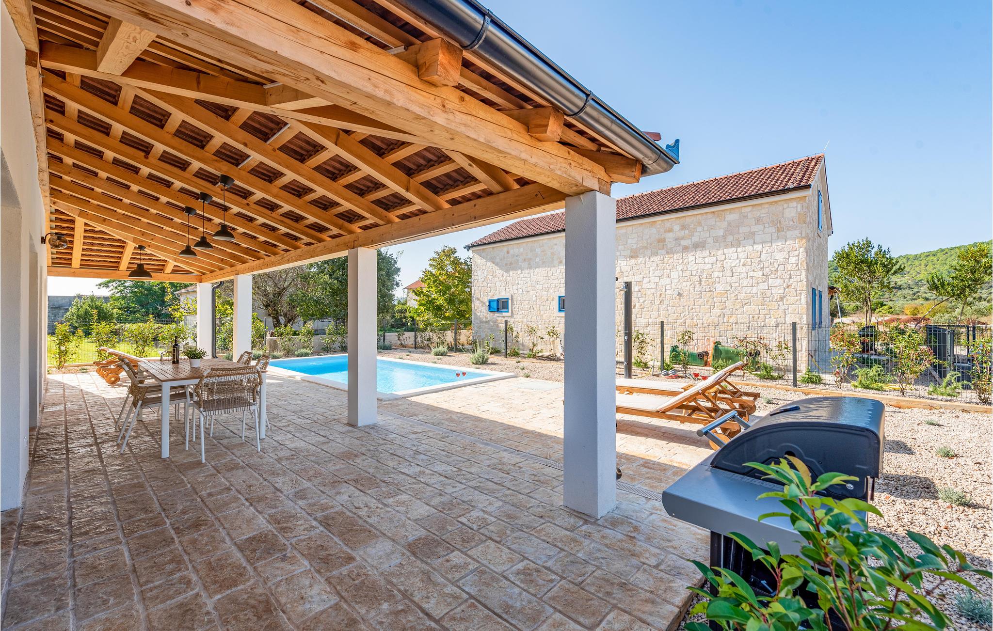 Glæd jer til en fantastisk familieferie i dette komfortable stenhus. Den fine indretning og de store rum skaber en skøn atmosfære, hvor I kan føle jer hjemme og bare slappe af. I kommer ikke til at mangle noget her, og efter rolige nætter i soveværelserne kan I samles til morgenmad i stuen eller på terrassen. Nyd morgenkaffen samt nogle lækre lokale råvarer fra området og læn jer derefter tilbage i liggestolene, mens børnene plasker rundt i poolen. Hvis I rejse med en anden familie, er der andre identiske huse i nabolaget.