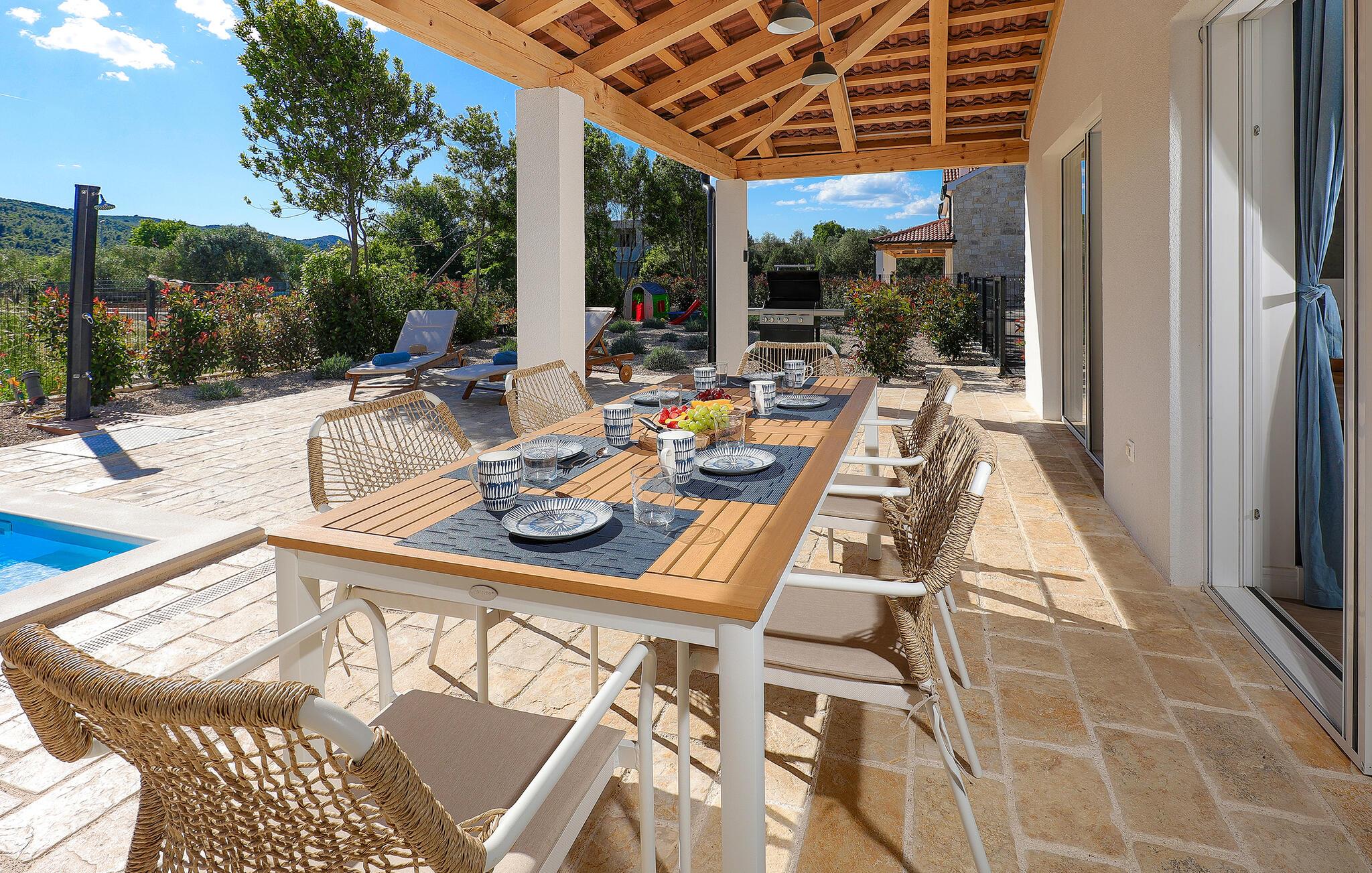 Glæd jer til en fantastisk familieferie i dette komfortable stenhus. Den fine indretning og de store rum skaber en skøn atmosfære, hvor I kan føle jer hjemme og bare slappe af. I kommer ikke til at mangle noget her, og efter rolige nætter i soveværelserne kan I samles til morgenmad i stuen eller på terrassen. Nyd morgenkaffen samt nogle lækre lokale råvarer fra området og læn jer derefter tilbage i liggestolene, mens børnene plasker rundt i poolen. Hvis I rejse med en anden familie, er der andre identiske huse i nabolaget.