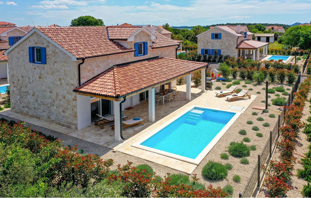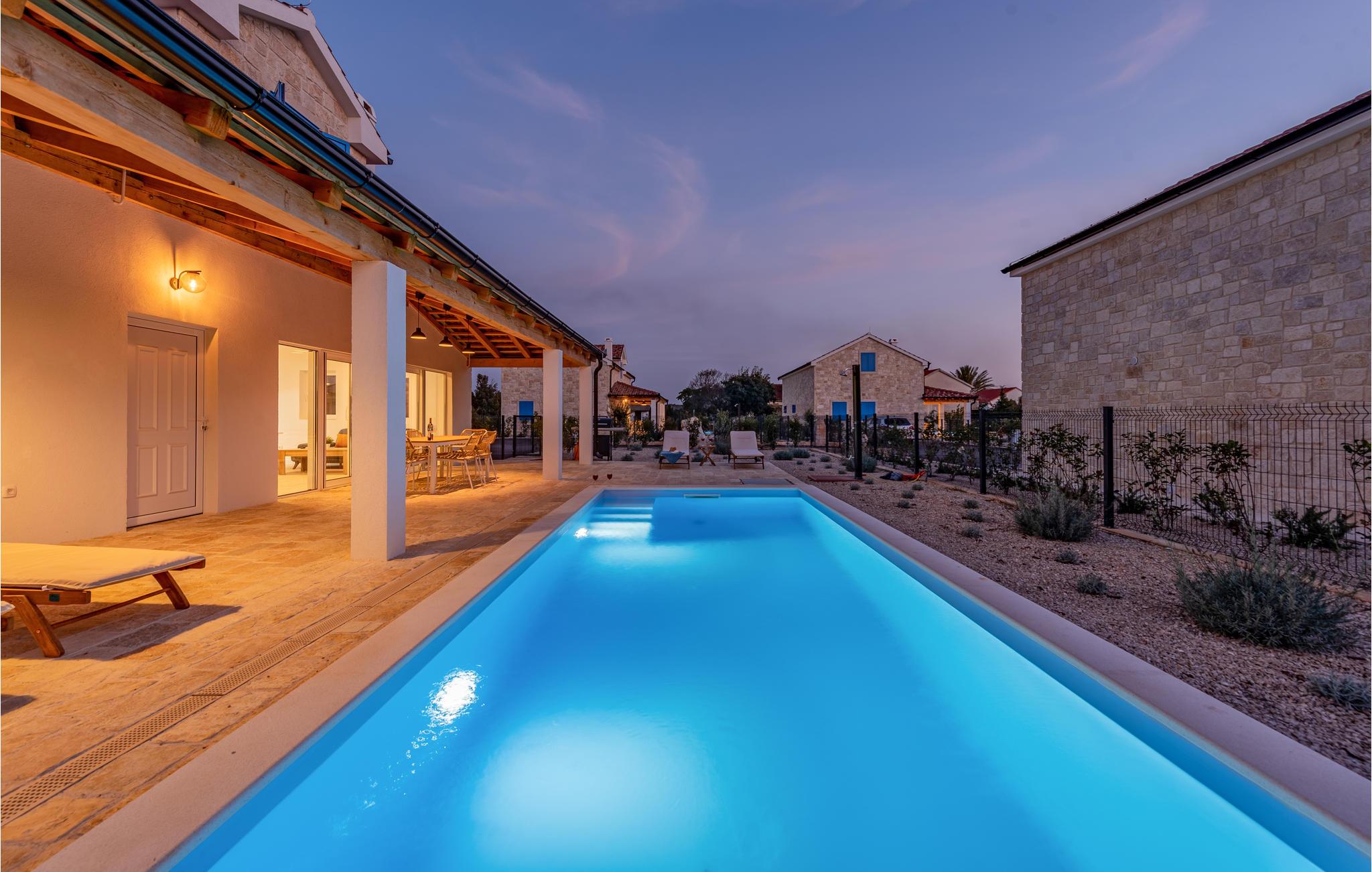 Lyst og moderne feriehus med privat pool nær stranden.