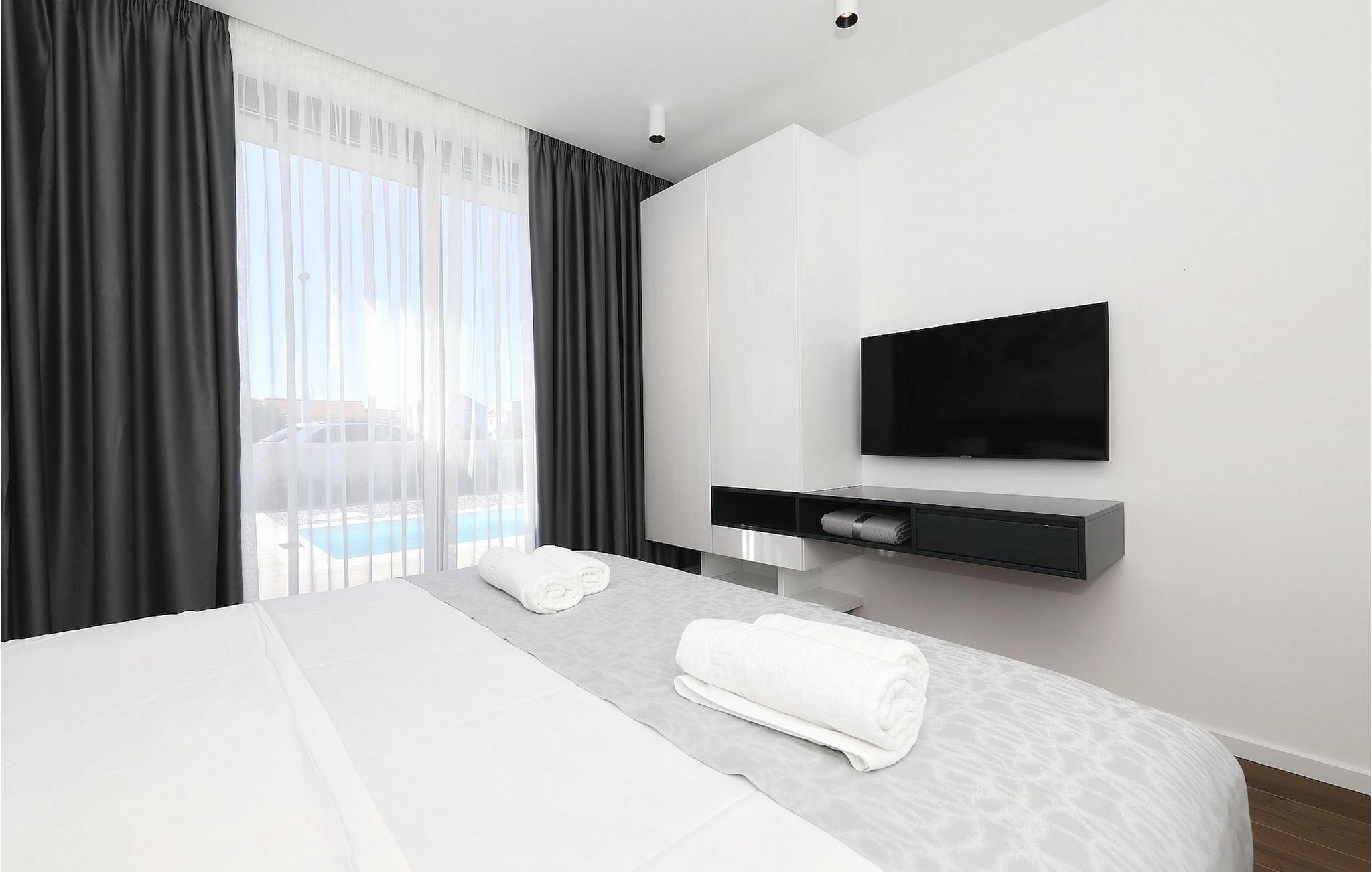 Villa K3 er perfekt placeret på den smukke ø Pasman, tæt på Zadar. Det er det ideelle feriehus for små familier eller par, der gerne vil tilbringe deres ferie sammen. Villaen har 3 soveværelser, hver med tv og aircondition. To af soveværelserne har dobbeltsenge, mens der i det tredje er 2 enkeltsenge, der kan sættes sammen til en dobbeltseng. Der er et moderne, fuldt udstyret køkken med spiseplads. Spiseområdet fører til det udendørs loungeområde, der er perfekt til afslapning og er udstyret med et satellit-tv. Og forfriskning er tilgængelig i den private pool, der er ledsaget af liggestole, som du kan få den perfekte sommerbrune. Villaen er en del af et kompleks af 4 villaer. Alle villaerne er ens og har identisk udstyr. Så hvis I er en større gruppe, kan I leje mere end én villa. Villaerne har aircondition og gratis trådløs internetadgang. Øen Pašman er en charmerende ø beliggende tæt på Zadar og Biograd. Det er en smuk ø, med et væld af urter og fyrretræer, der er ansvarlige for de intense og uimodståelige middelhavsdufte i luften. Men ikke kun er øen berømt for sin smukke natur og strande, men også for sin rige kultur og arkitektur, der går tilbage til det 12. århundrede e.Kr. Øen er bestemt et besøg værd, og den er forbundet med øen Ugljan via en bro, så der er endnu mere at udforske.