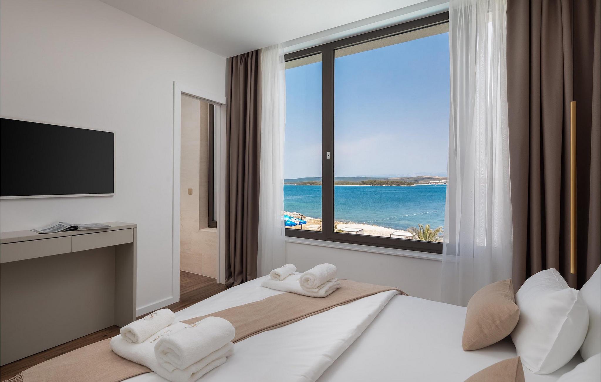 Oplev indbegrebet af moderne luksus på Villa Beach 1 på den fortryllende ø Pasman i Tkon, beliggende direkte på stranden. På den uberørte kystlinje venter villaen på dig, der tilbyder et udsøgt tilflugtssted med en privat pool og en betagende havudsigt. Tilbyder en perfekt blanding af luksus, komfort og naturlig skønhed, denne arkitektoniske perle er et idyllisk tilflugtssted for dem, der søger en uforglemmelig strandoplevelse. Villaens højdepunkt er uden tvivl den private pool, hvor gæsterne kan svømme i det forfriskende vand, mens de ser ud til havet. Uanset om det er en morgensvømning eller en eftermiddagsflugt fra varmen, giver den private pool den ultimative mulighed for at slappe af. Når du træder ud på terrassen, bliver du mødt af et panorama af det glitrende hav spredt ud foran dig. Terrassen er en udendørs oase, perfekt til at slikke solen, spise udendørs eller blot nyde omgivelsernes ro. Den beroligende lyd af bølgerne, der slår mod kysten, skaber en fængslende kulisse, der forbedrer oplevelsen af denne kystnære beliggenhed. Villaens indretning udstråler en stilfuld og moderne æstetik. På første sal er der en åben-plan stue, der problemfrit forbinder til et fuldt udstyret køkken og spiseplads. Det slanke og moderne design af opholdsstuen emmer af elegance, og de store vinduer tillader masser af naturligt lys ind i rummet, og afslører udsigten over det azurblå hav, der ligger lige udenfor. Der er også et separat toilet på første sal. På anden sal venter en oase af ro med tre smukt indrettede soveværelser. Hvert soveværelse er indrettet med en komfortabel dobbeltseng, der giver en fredelig atmosfære til en afslappende nattesøvn. Et af soveværelserne på anden sal har eget badeværelse, der tilbyder privatliv og komfort til beboerne. Udover det private badeværelse er der et separat badeværelse på anden sal, der er let tilgængeligt for alle gæster. Beliggende i et feriested tilbyder denne villa en række eksklusive oplevelser. Gæster kan drage fordel af udflugter, overførsler og endda tjenester fra en privat kok, morgenmad og andre tjenester. Løft dit ophold med disse eksklusive tilbud. En fælles pool på stranden er også til din rådighed. Kontakt os for flere detaljer. Vigtigt: Hvis du vælger at foretage en reservation, vil du blive indkvarteret i en af 6 identiske villaer. Beach Villa 1 ligger i første række til havet i Palms Resort. Resortet ligger i byen Tkon - på øen Pasman i Dalmatien. Øen Pasman og den maleriske by Tkon i Kroatien tilbyder et fortryllende tilflugtssted for rejsende på udkig efter naturlig skønhed, ro og en dyb forbindelse med Adriaterhavet. Øen Pasman, som ligger i Zadar-øgruppen, er en juvel af den dalmatiske kystlinje og er kendt for sine uberørte strande, krystalklare vand og betagende natur. Fra sandstrande til småstensbugter er der en strand for enhver smag. I hjertet af Pasman ligger den charmerende by Tkon. Med sine smalle gader, stenhuse og livlige havn, legemliggør Tkon regionens rige historie og kultur. Den venlige og imødekommende atmosfære i byen er et vidnesbyrd om et tæt sammentømret samfund, der bevarer sine traditioner og tager imod besøgende med åbne arme.