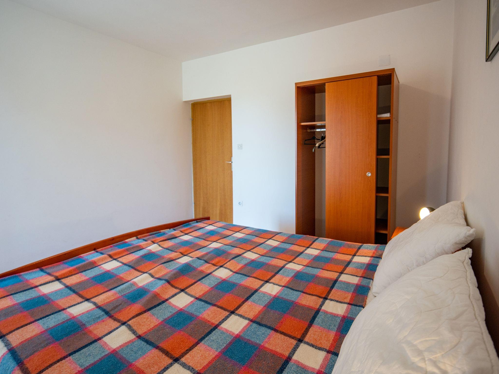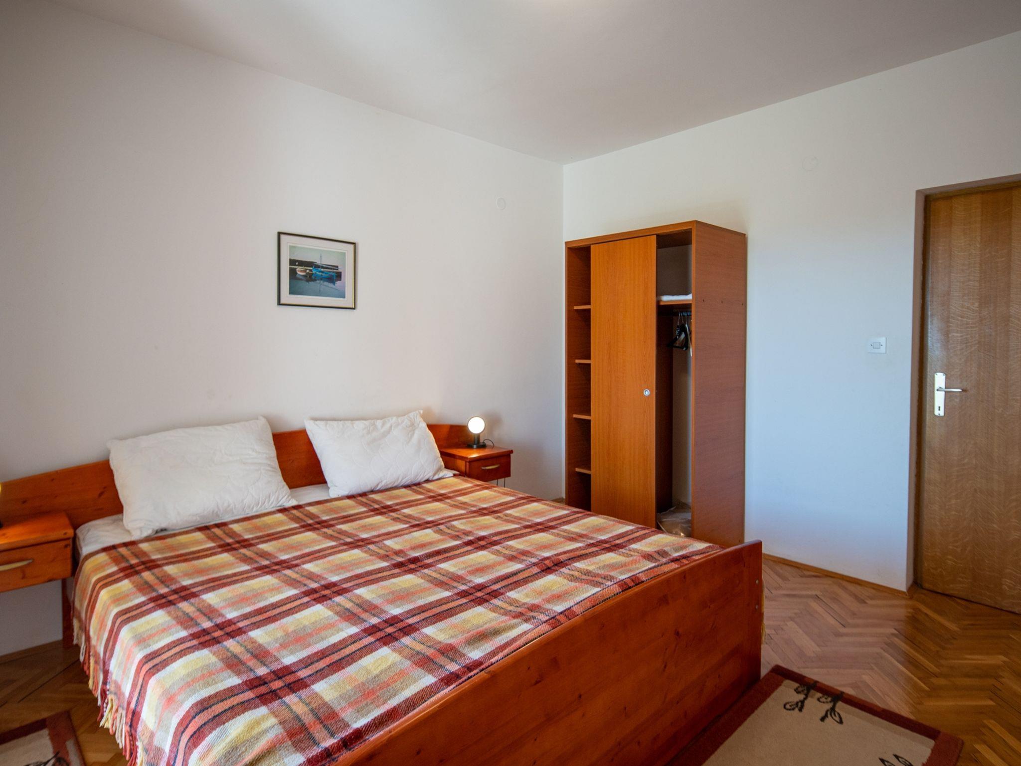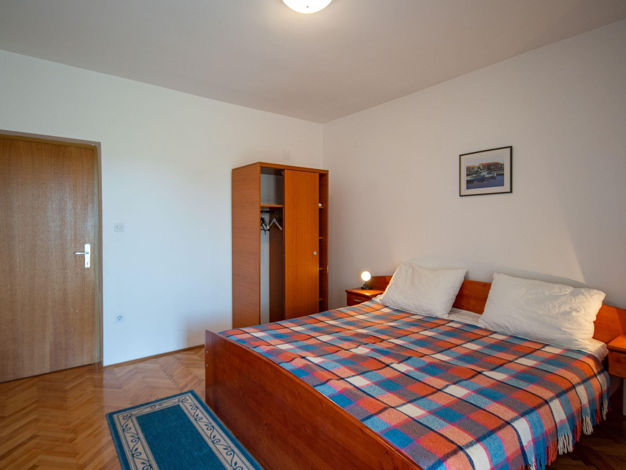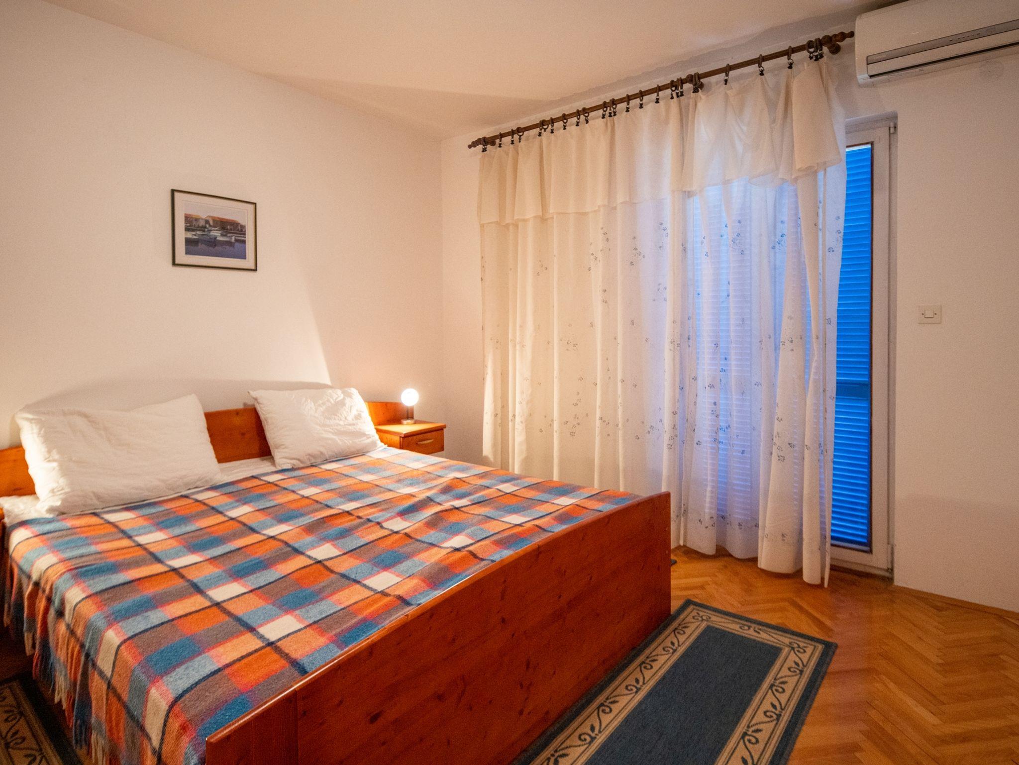 Ferienwohnung bietet Platz für 4 Gäste. Die Betten sind in Schlafzimmern, die es 2 gibt, innerhalb einer Gesamtfläche von 46m2, angeordnet. Die Gäste haben eine eigene Terrasse zur Verfügung, auf der sie in warmen Sommernächten genießen können. Es ist erlaubt, Speisen auf dem Gemeinschafts-Grill vorzubereiten. In der Unterkunftseinheit besteht die Möglichkeit des Mitbringens von Haustieren gegen Aufpreis. IM PREIS INBEGRIFFEN: Kurtaxe, Endreinigung, Klimatisierung, Parkplatz, Internet, Wäschewaschen, Kinderbett, tragbarer Grill. VERBINDLICHE ZUSÄTZLICHE KOSTEN: Aufzahlung für Kurzaufenthalte (prozentualer Zuschlag pro Nächtigungsanzahl: 30% - 1, 20% - 2, 10% - 3). UNVERBINDLICHE ZUSÄTZLICHE KOSTEN: Bootsanlegeplatz (10,00 € pro Nacht), Haustiere (10,00 € pro Nacht). Die Verfügbarkeit zusätzlicher Dienstleistungen in Ihrem reservierten Termin und die Preise derselben (falls nicht aufgeführt) müssen im Voraus überprüft werden. Zusätzliche Dienstleistungen die in der Zahlungsaufforderung nicht aufgeführt sind werden direkt beim Vermieter bezahlt, angenommen der Gast nutzt auch diese.