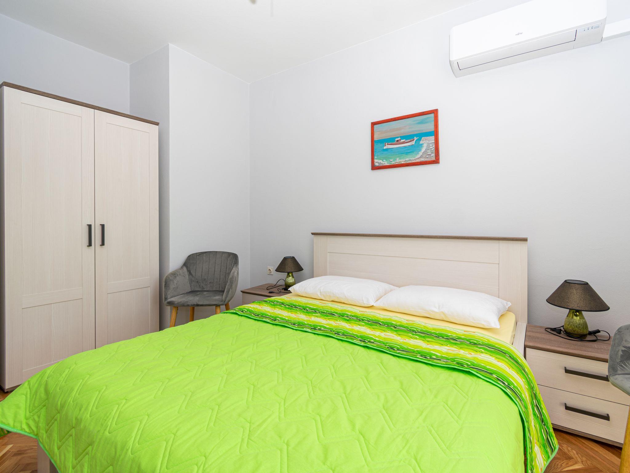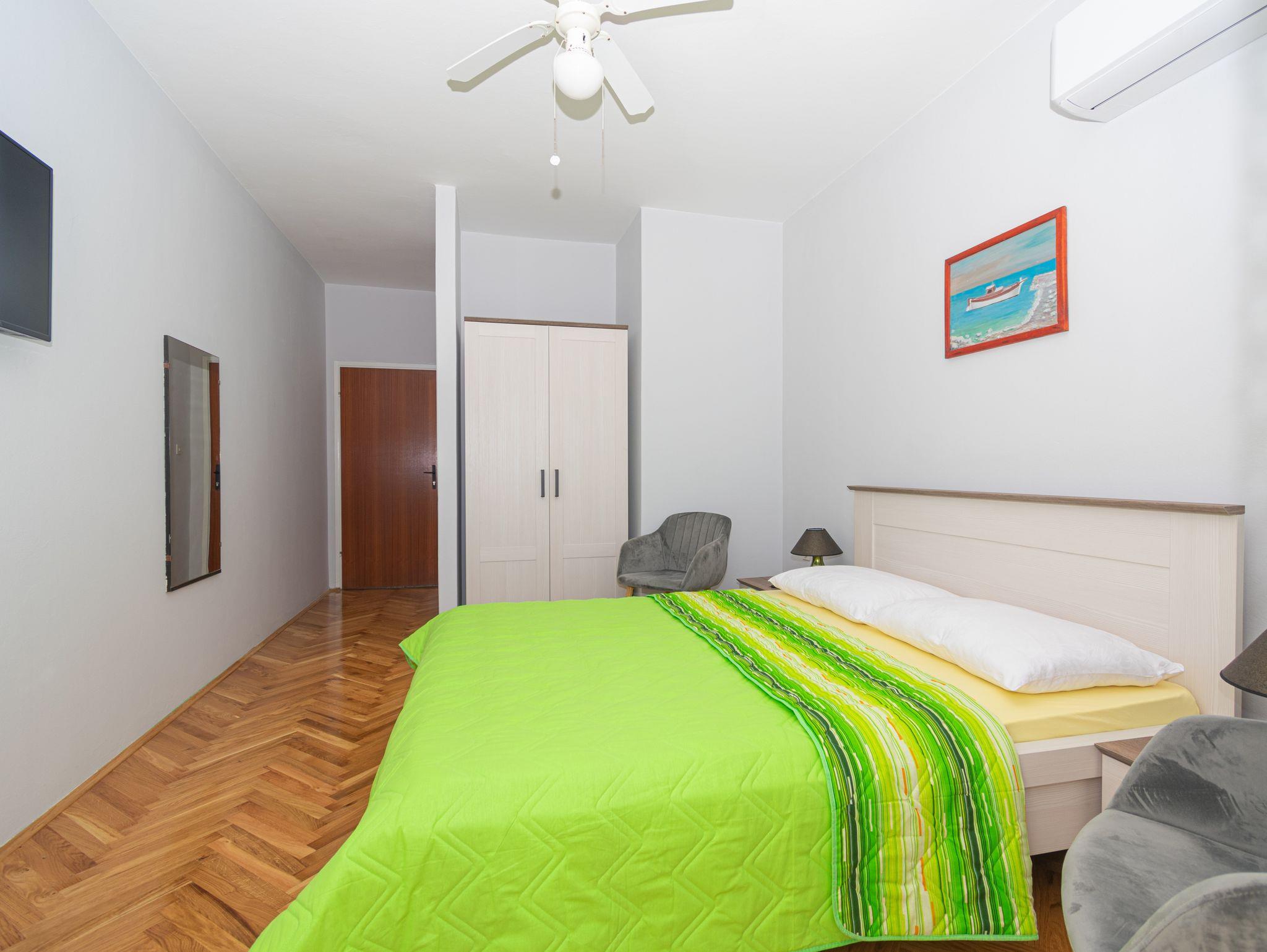 Zimmer bietet Platz für 2 Gäste. Die Betten sind in Schlafzimmern, die es 1 gibt, innerhalb einer Gesamtfläche von 15m2, angeordnet. Die Gäste haben einen eigenen Balkon zur Verfügung, auf der sie in warmen Sommernächten genießen können. Das Zimmer bietet Meerblick. Es ist erlaubt, Speisen auf dem Gemeinschafts-Grill vorzubereiten. Die reservierte Unterkunftseinheit ist ein Zimmer mit eigenem Badezimmer ohne die Möglichkeit der Nutzung einer Küche. IM PREIS INBEGRIFFEN: Kurtaxe, Endreinigung, Klimatisierung, Parkplatz, Internet, Bügeleisen, Bügelbrett, Föhn. VERBINDLICHE ZUSÄTZLICHE KOSTEN: Aufzahlung für Kurzaufenthalte (prozentualer Zuschlag pro Nächtigungsanzahl: 30% - 1, 20% - 2, 10% - 3). Die Verfügbarkeit zusätzlicher Dienstleistungen in Ihrem reservierten Termin und die Preise derselben (falls nicht aufgeführt) müssen im Voraus überprüft werden. Zusätzliche Dienstleistungen die in der Zahlungsaufforderung nicht aufgeführt sind werden direkt beim Vermieter bezahlt, angenommen der Gast nutzt auch diese.
