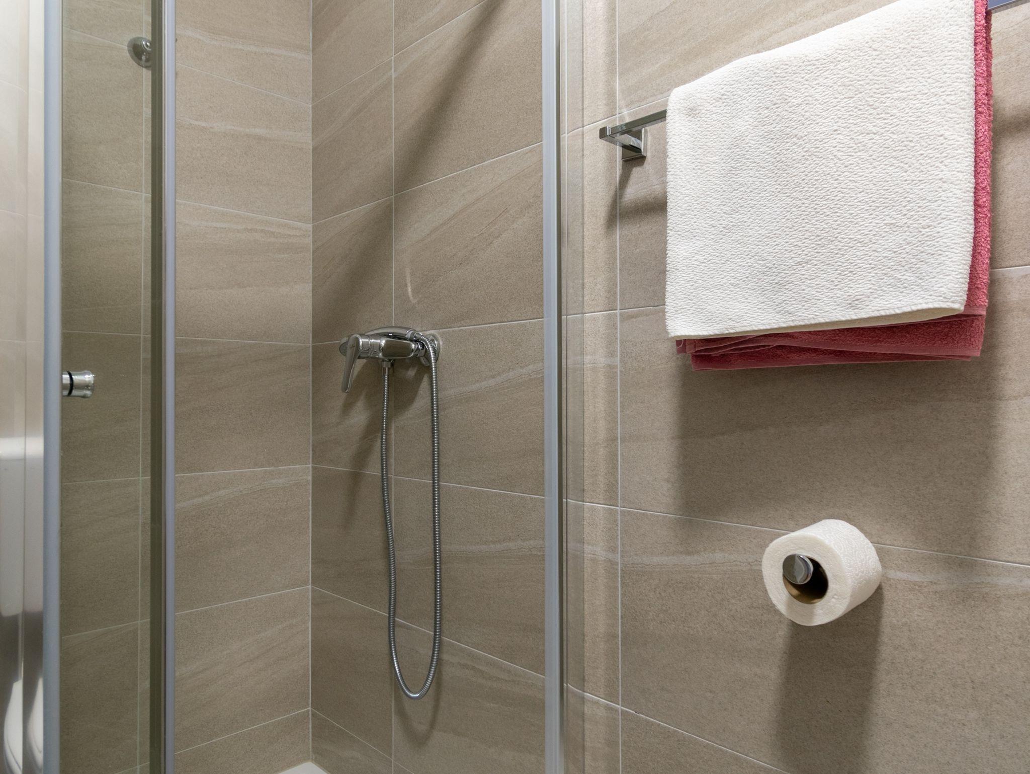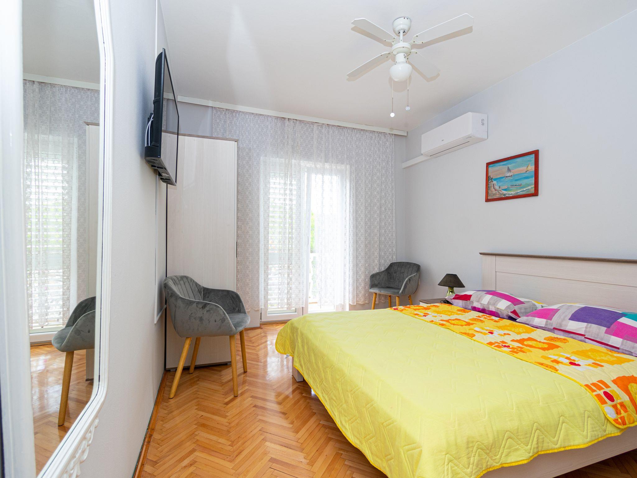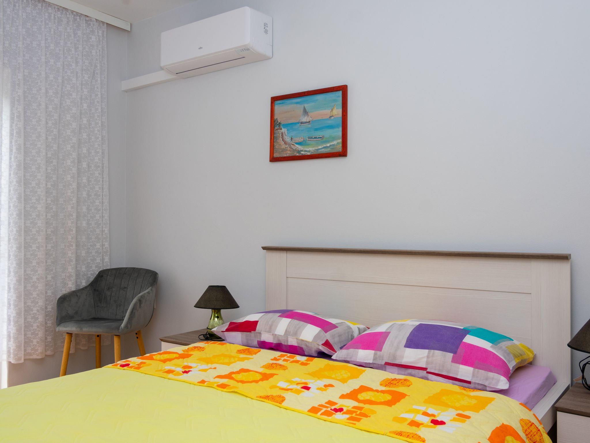 Zimmer bietet Platz für 2 Gäste. Die Betten sind in Schlafzimmern, die es 1 gibt, innerhalb einer Gesamtfläche von 15m2, angeordnet. Die Gäste haben einen eigenen Balkon zur Verfügung, auf der sie in warmen Sommernächten genießen können. Das Zimmer bietet Meerblick. Es ist erlaubt, Speisen auf dem Gemeinschafts-Grill vorzubereiten. Die reservierte Unterkunftseinheit ist ein Zimmer mit eigenem Badezimmer ohne die Möglichkeit der Nutzung einer Küche. IM PREIS INBEGRIFFEN: Kurtaxe, Endreinigung, Klimatisierung, Parkplatz, Internet, Bügeleisen, Bügelbrett, Föhn. VERBINDLICHE ZUSÄTZLICHE KOSTEN: Aufzahlung für Kurzaufenthalte (prozentualer Zuschlag pro Nächtigungsanzahl: 30% - 1, 20% - 2, 10% - 3). Die Verfügbarkeit zusätzlicher Dienstleistungen in Ihrem reservierten Termin und die Preise derselben (falls nicht aufgeführt) müssen im Voraus überprüft werden. Zusätzliche Dienstleistungen die in der Zahlungsaufforderung nicht aufgeführt sind werden direkt beim Vermieter bezahlt, angenommen der Gast nutzt auch diese.