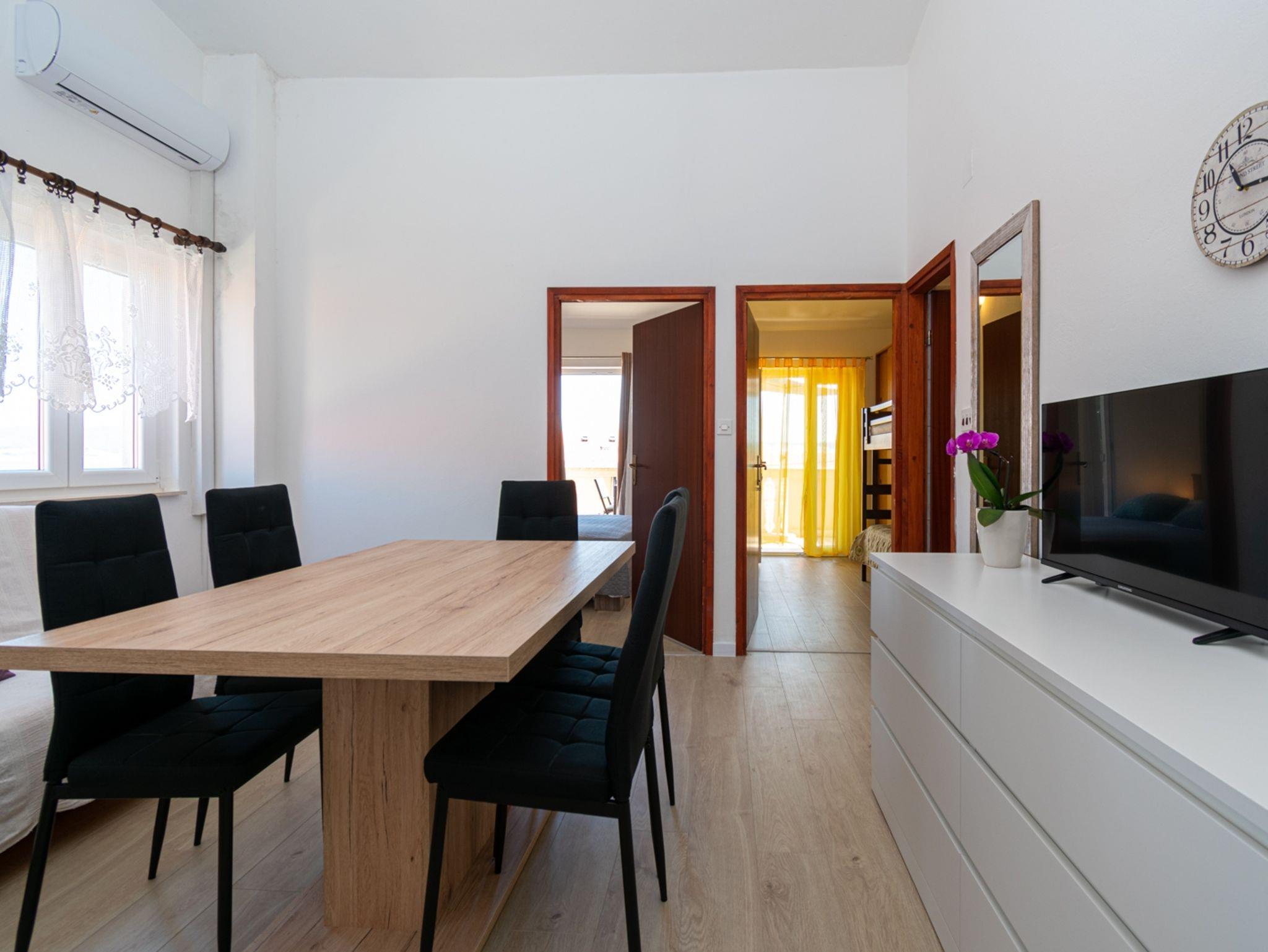 Ferienwohnung bietet Platz für 4 Gäste. Die Betten sind in Schlafzimmern, die es 2 gibt, innerhalb einer Gesamtfläche von 38m2, angeordnet. Die Gäste haben eine eigene Terrasse zur Verfügung, auf der sie in warmen Sommernächten genießen können. Das Apartment bietet Meerblick. Es ist erlaubt, Speisen auf dem Gemeinschafts-Grill vorzubereiten. IM PREIS INBEGRIFFEN: Kurtaxe, Endreinigung, Klimatisierung, Parkplatz, Internet, Bootsanlegeplatz. VERBINDLICHE ZUSÄTZLICHE KOSTEN: Aufzahlung für Kurzaufenthalte (prozentualer Zuschlag pro Nächtigungsanzahl: 30% - 1, 20% - 2, 10% - 3). UNVERBINDLICHE ZUSÄTZLICHE KOSTEN: Wäschewaschen (5,00 € Waschen). Die Verfügbarkeit zusätzlicher Dienstleistungen in Ihrem reservierten Termin und die Preise derselben (falls nicht aufgeführt) müssen im Voraus überprüft werden. Zusätzliche Dienstleistungen die in der Zahlungsaufforderung nicht aufgeführt sind werden direkt beim Vermieter bezahlt, angenommen der Gast nutzt auch diese.