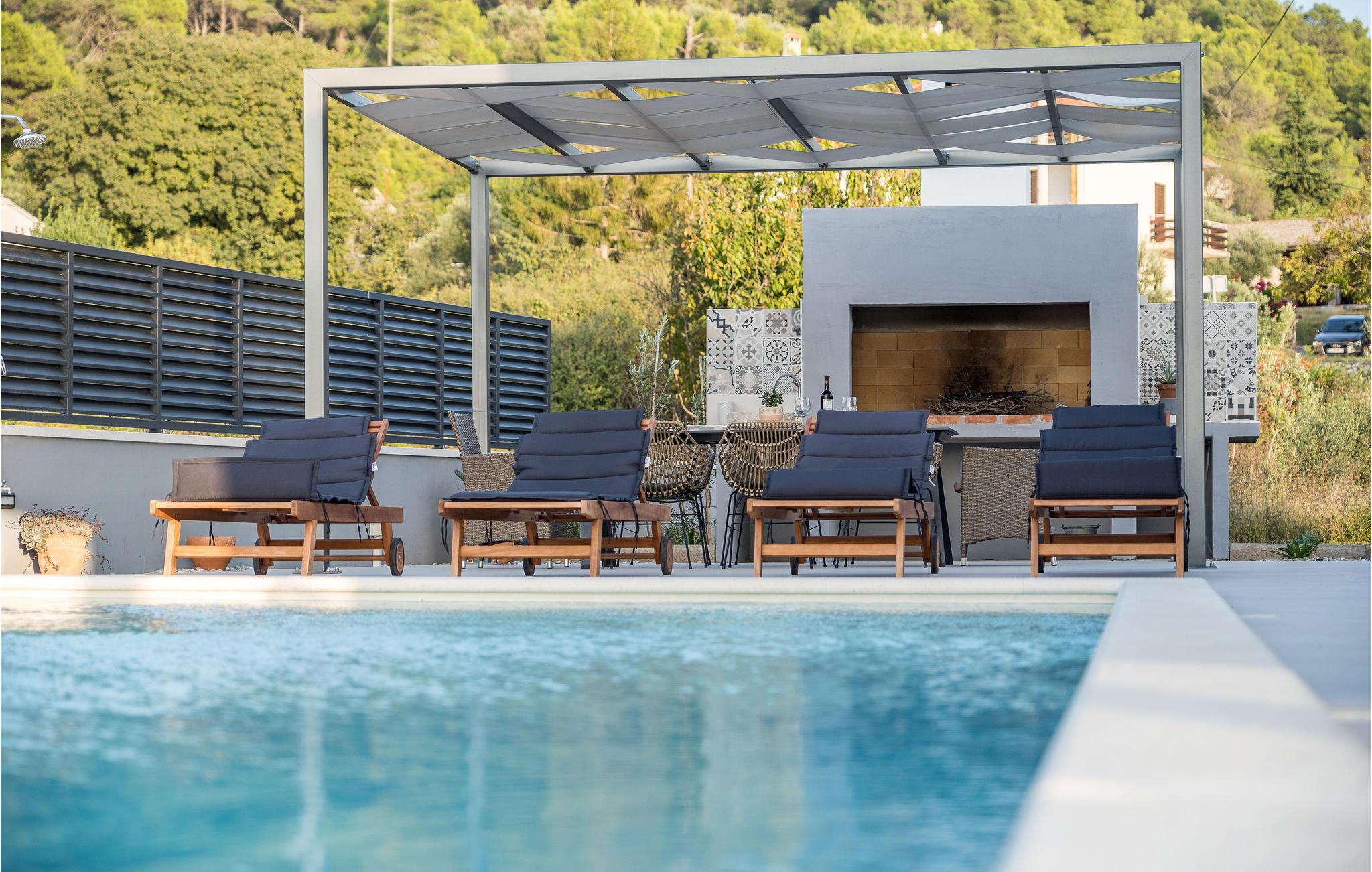 Nyd forfriskende timer i poolen, mens I kigger ud over det glitrende hav og de omkringliggende bakker. Gør det behageligt på liggestolene og slap af i det varme aftenlys, der bader terrassen i et særligt atmosfærisk skær. Tilbring behagelige øjeblikke udendørs, uanset om I nyder en drink, snakker med venner eller læner jer tilbage med en god bog.